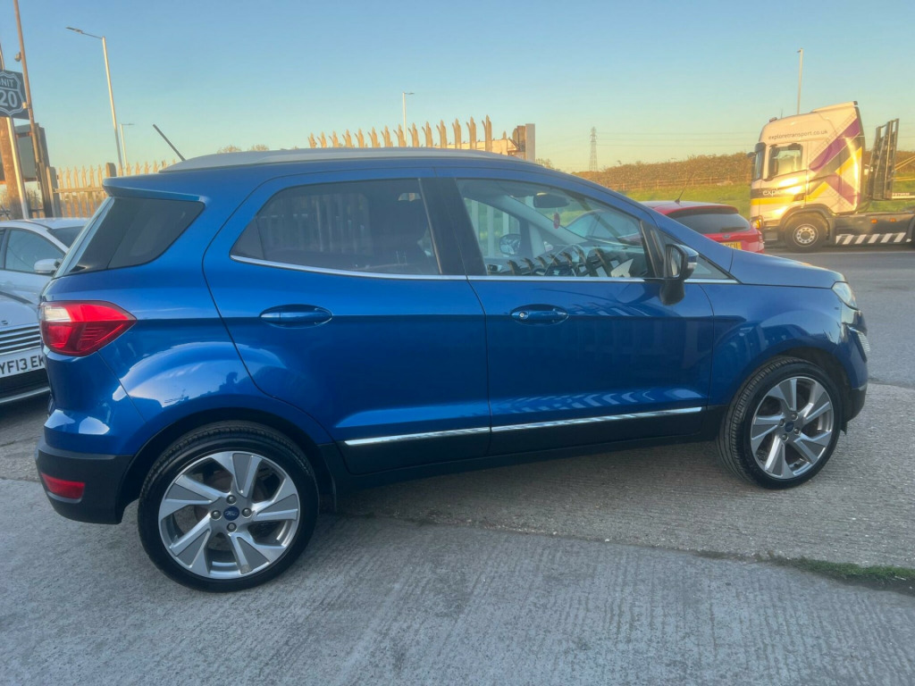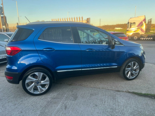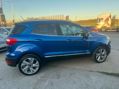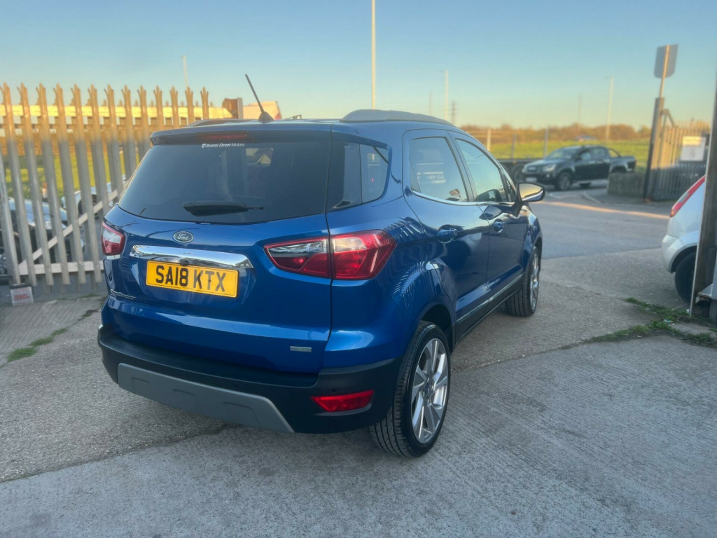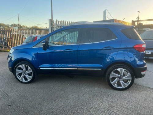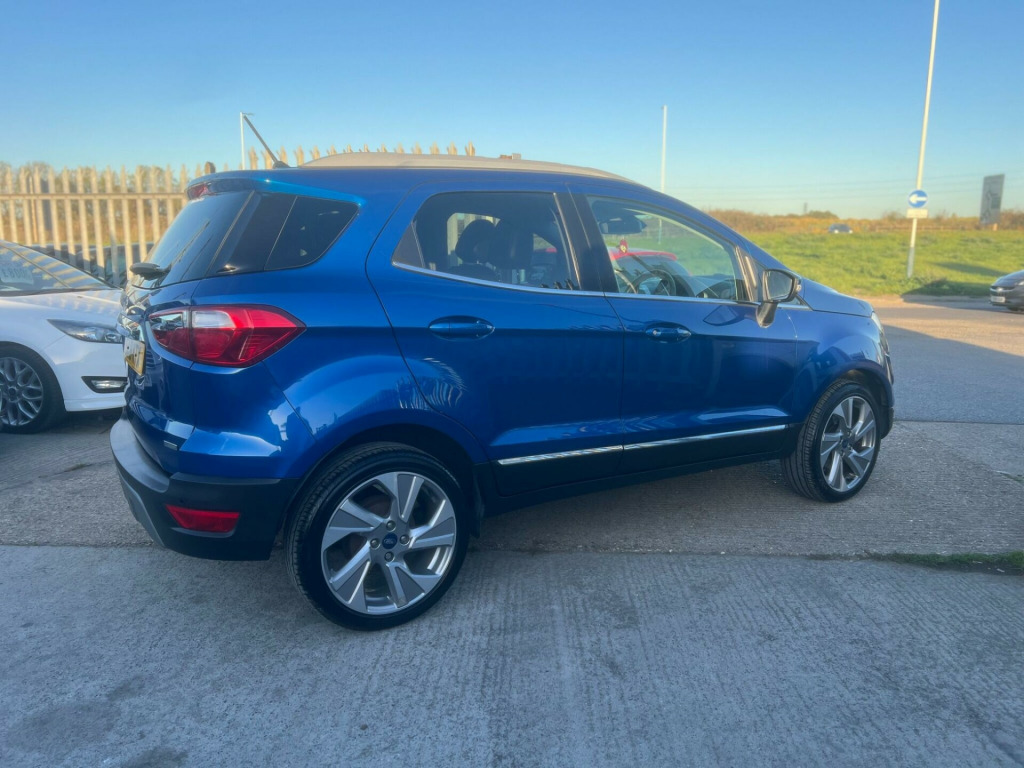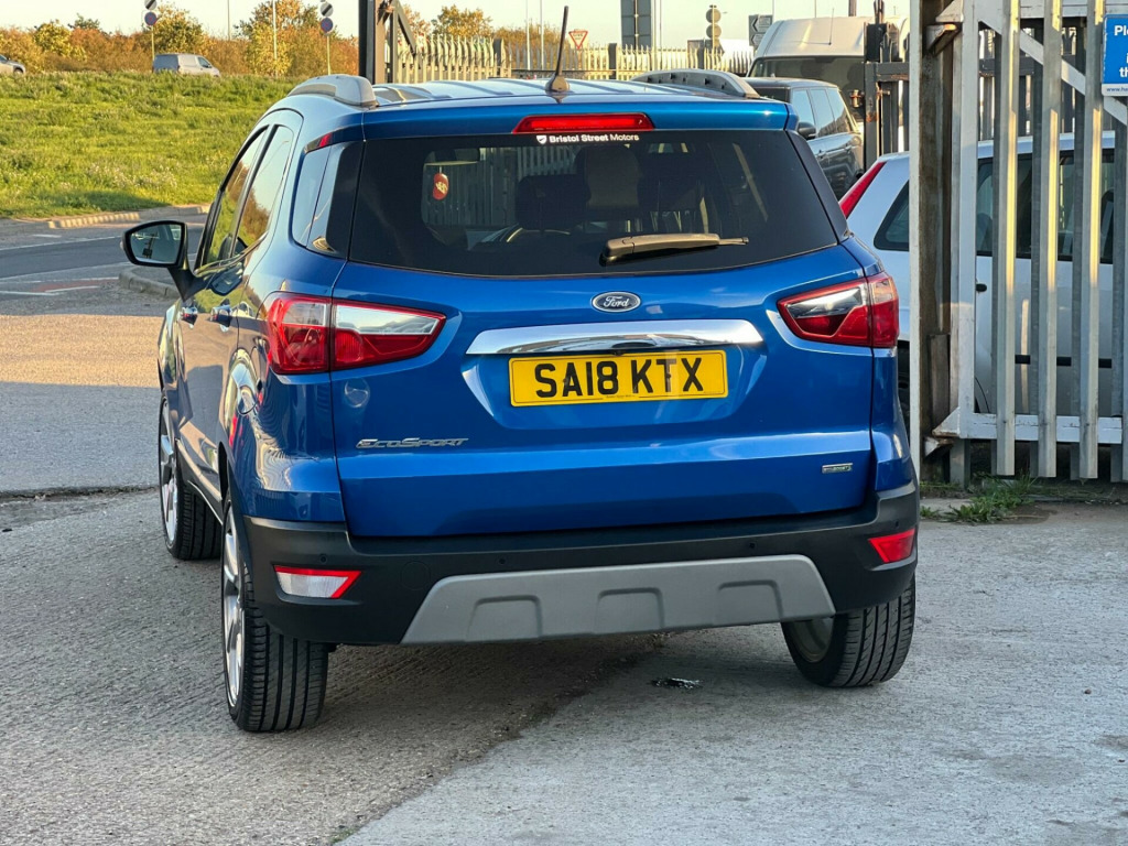 This 2018 Ford EcoSport T Titanium is presented with a clear vehicle history check, offering you peace of mind. This stylish SUV is equipped with a responsive 1.0L petrol engine and meets Euro 6 emissions standards. Inside, you'll find the Ford DAB Navigation System with Ford SYNC3, which conveniently includes Android Auto and Apple CarPlay, alongside Bluetooth connectivity. Comfort is assured with Electronic Automatic Temperature Control, providing climate control, while automatic headlights and a rear view camera with rear parking sensors enhance convenience and safety.The Ford EcoSport T Titanium stands out with its impressive fuel economy, achieving a highlight of 53 miles per gallon. This efficiency, combined with its low CO2 emissions, indicates that this vehicle offers a more economical and environmentally conscious driving experience compared to many others in its class. This well appointed EcoSport is ready for your next adventure. in alloy wheels - 10 spoke flash grey machined, adjustable boot load floor, airbags - curtain, airbags - driver and front passenger, airbags - drivers knee, airbags - front passenger de-activation switch, alarm - thatcham category 1 with volume sensing and perimeter, ambient lighting - instrument panel and footwell, analogue instrument cluster, anti-lock braking system - abs with electronic stability control - esc, automatic dimming rear view mirror, automatic headlights, centre console cup holder with chrome accent, centre console with sliding armrest, child locks, chrome headlight bezel, courtesy light - front with two map lights, courtesy light - rear, cruise control, door frame beltline - chrome, door handles - body colour, door mirrors - power-foldable heated with integrated side indicator and puddle lights, driver seat manual height- fore/aft and seatback angle adjustment and recliner, driver seat manual rotary knob lumbar support adjustment, driver and passengers sun visor with covered vanity mirror and ticket strip on drivers side, drivers stowage glovebox, epas - electric power assisted steering, electronic automatic temperature control - eatc, emergency assistance, engine immobiliser, ford dab navigation system with ford sync3, ford easy fuel - capless refuelling system, front 2-way head restraints, front fog lights, front grille - chrome, front seat - passenger manual - fore-aft and recline adjustment, front seats - 3 point seat belts with load limiter and seatbelt height adjust, front seats - seat-back map pockets, front suspension - independent with macpherson struts and anti-roll bar, front and rear bumper - body colour with dark insert, front and rear floor mats, front and rear folding grab handles, front and rear power points - 12v, full length overhead console with sunglasses holder, gear shift indicator, gearshift knob - black insert and chrome-finish ring, glovebox with cool bin - lid and illumination, halogen headlamps with led day running lights, halogen rear lights, handbrake grip - leather-trimmed, headlights - courtesy delay, headlights - levelling control, high mounted brake light, ips - intelligent protection system, keyless start with ford power start button, load compartment - lights, load compartment carpet, load compartment side trim incorporating shopping hooks, lower body side - door claddings - black with chrome insert, manual parking brake, mykey, power front and rear windows with global opening-closing, quickclear heated front windscreen with heated washer jets, rain sensing wipers, rear seat - fold and tumble 60-40 split - split back, rear seats - centre head restraint - up-down, rear seats - retractable rear seat belt - 3-point all positions, rear suspension - semi-independent twist beam with twin gas and oil-filled shock absorbers, rear view camera with rear parking sensors, remote central locking, rocker panel and side cladding - black, seat belt reminder system - drivers and front passengers, seats - isofix mounting provision for child seats - outer seats only, side impact door beams, silver roof rails, soft instrument panel cover, steering column - rake and reach adjustment, steering wheel - leather-trimmed with chrome inserts, storage - front passenger underseat area, suspension - front stabiliser bar, tailgate handle - chrome, threshold plates - front - stainless steel with ecosport logo, tie-down hooks, trip computer, tyre pressure monitoring system, tyre repair kit, wiper - intermittent rear wash-wipe