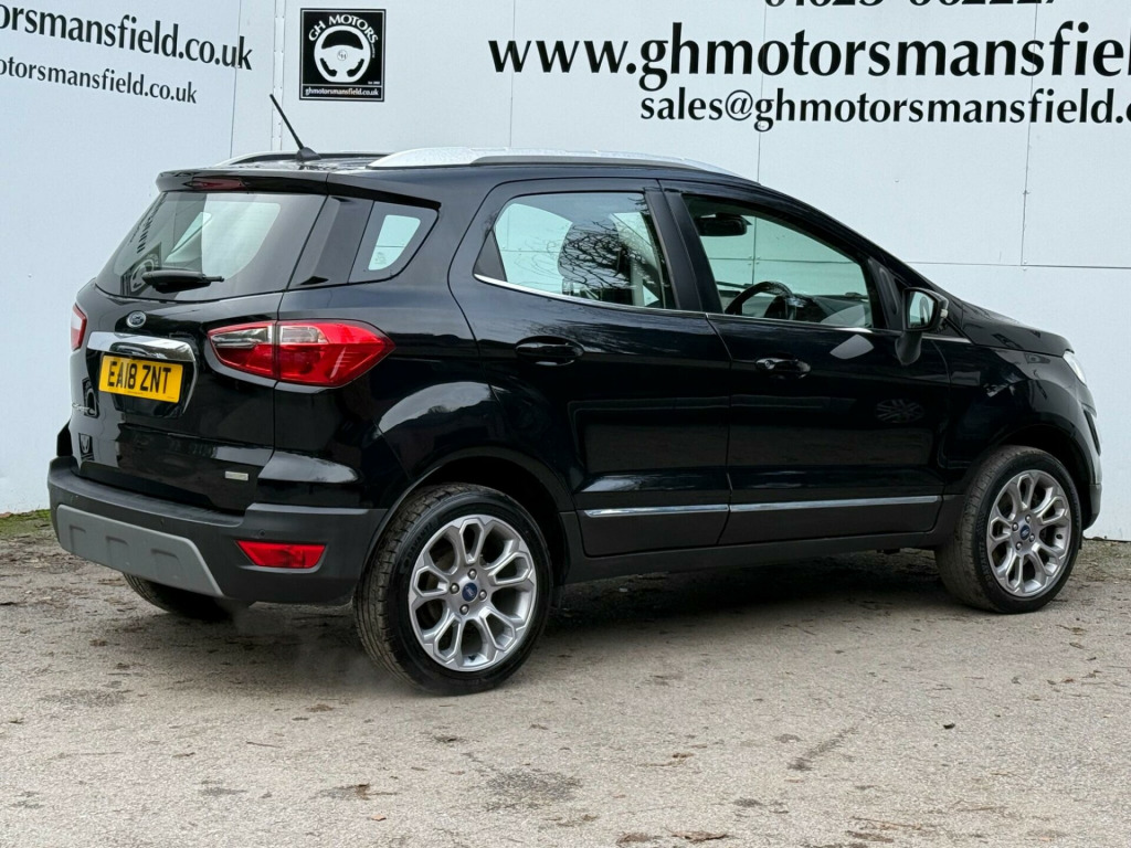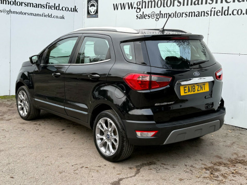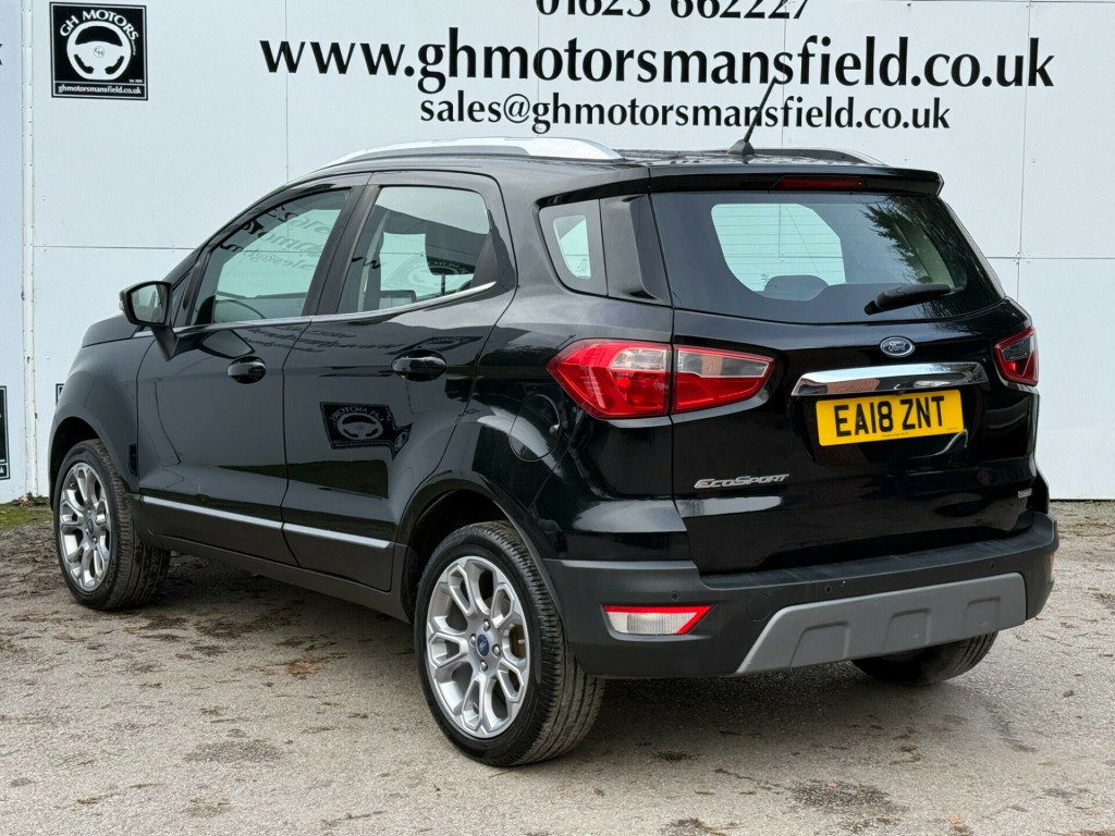This 2018 Ford EcoSport T Titanium is a well maintained example of this popular compact SUV. Powered by an efficient 1.0L petrol engine, this Euro 6 compliant model offers a compelling blend of practicality and modern technology. Inside, you'll find the comfort of Electronic Automatic Temperature Control, ensuring a pleasant cabin environment whatever the weather. Navigating and staying connected is effortless thanks to the Ford DAB Navigation System with Ford SYNC3, which seamlessly integrates with both Android Auto and Apple CarPlay, and also features Bluetooth connectivity for hands free calls and audio streaming. For added convenience and safety, this EcoSport is equipped with automatic headlights and a rear view camera complemented by rear parking sensors, making parking in tighter spaces much simpler.12 MONTHS WARRANTY £299The Ford EcoSport T Titanium stands out with its impressive fuel economy, achieving a highlight of 53 miles per gallon, which indicates its efficiency compared to similar vehicles. Furthermore, its low CO2 emissions are another key advantage, suggesting a more environmentally conscious choice. This combination of economical running costs and useful features makes the 2018 Ford EcoSport T Titanium a sensible and well equipped option for everyday driving.OVER 100 CARS IN SKOCK PLEASE VIEW WEBSITE. 17in Alloy Wheels - 10 Spoke Flash Grey Machined, Adjustable Boot Load Floor, Airbags - Curtain, Airbags - Driver and Front Passenger, Airbags - Drivers Knee, Airbags - Front Passenger De-Activation Switch, Alarm - Thatcham Category 1 with Volume Sensing and Perimeter, Ambient Lighting - Instrument Panel and Footwell, Analogue Instrument Cluster, Anti-Lock Braking System - ABS with Electronic Stability Control - ESC, Automatic Dimming Rear View Mirror, Automatic Headlights, Centre Console Cup Holder with Chrome Accent, Centre Console with Sliding Armrest, Child Locks, Chrome Headlight Bezel, Courtesy Light - Front with Two Map Lights, Courtesy Light - Rear, Cruise Control, Door Frame Beltline - Chrome, Door Handles - Body Colour, Door Mirrors - Power-Foldable Heated with Integrated Side Indicator and Puddle Lights, Driver Seat Manual Height- Fore/Aft and Seatback Angle Adjustment and Recliner, Driver Seat Manual Rotary Knob Lumbar Support Adjustment, Driver and Passengers Sun Visor with Covered Vanity Mirror and Ticket Strip on Drivers Side, Drivers Stowage Glovebox, EPAS - Electric Power Assisted Steering, Electronic Automatic Temperature Control - EATC, Emergency Assistance, Engine Immobiliser, Ford DAB Navigation System with Ford SYNC3, Ford Easy Fuel - Capless Refuelling System, Front 2-Way Head Restraints, Front Fog Lights, Front Grille - Chrome, Front Seat - Passenger Manual - Fore-Aft and Recline Adjustment, Front Seats - 3 Point Seat Belts with Load Limiter and Seatbelt Height Adjust, Front Seats - Seat-Back Map Pockets, Front Suspension - Independent with MacPherson Struts and Anti-Roll Bar, Front and Rear Bumper - Body Colour with Dark Insert, Front and Rear Floor Mats, Front and Rear Folding Grab Handles, Front and Rear Power Points - 12V, Full Length Overhead Console with Sunglasses Holder, Gear Shift Indicator, Gearshift Knob - Black Insert and Chrome-Finish Ring, Glovebox with Cool Bin - Lid and Illumination, Halogen Headlamps with LED Day Running Lights, Halogen Rear Lights, Handbrake Grip - Leather-Trimmed, Headlights - Courtesy Delay, Headlights - Levelling Control, High Mounted Brake Light, IPS - Intelligent Protection System, Keyless Start with Ford Power Start Button, Load Compartment - Lights, Load Compartment Carpet, Load Compartment Side Trim Incorporating Shopping Hooks, Lower Body Side - Door Claddings - Black with Chrome Insert, Manual Parking Brake, MyKey, Power Front and Rear Windows with Global Opening-Closing, Quickclear Heated Front Windscreen with Heated Washer Jets, Rain Sensing Wipers, Rear Seat - Fold and Tumble 60-40 Split - Split Back, Rear Seats - Centre Head Restraint - Up-Down, Rear Seats - Retractable Rear Seat Belt - 3-Point All Positions, Rear Suspension - Semi-Independent Twist Beam with Twin Gas and Oil-Filled Shock Absorbers, Rear View Camera with Rear Parking Sensors, Remote Central Locking, Rocker Panel and Side Cladding - Black, Seat Belt Reminder System - Drivers and Front Passengers, Seats - ISOFIX Mounting Provision for Child Seats - Outer Seats Only, Side Impact Door Beams, Silver Roof Rails, Soft Instrument Panel Cover, Steering Column - Rake and Reach Adjustment, Steering Wheel - Leather-Trimmed with Chrome Inserts, Storage - Front Passenger Underseat Area, Suspension - Front Stabiliser Bar, Tailgate Handle - Chrome, Threshold Plates - Front - Stainless Steel with EcoSport Logo, Tie-Down Hooks, Trip Computer, Tyre Pressure Monitoring System, Tyre Repair Kit, Wiper - Intermittent Rear Wash-Wipe.