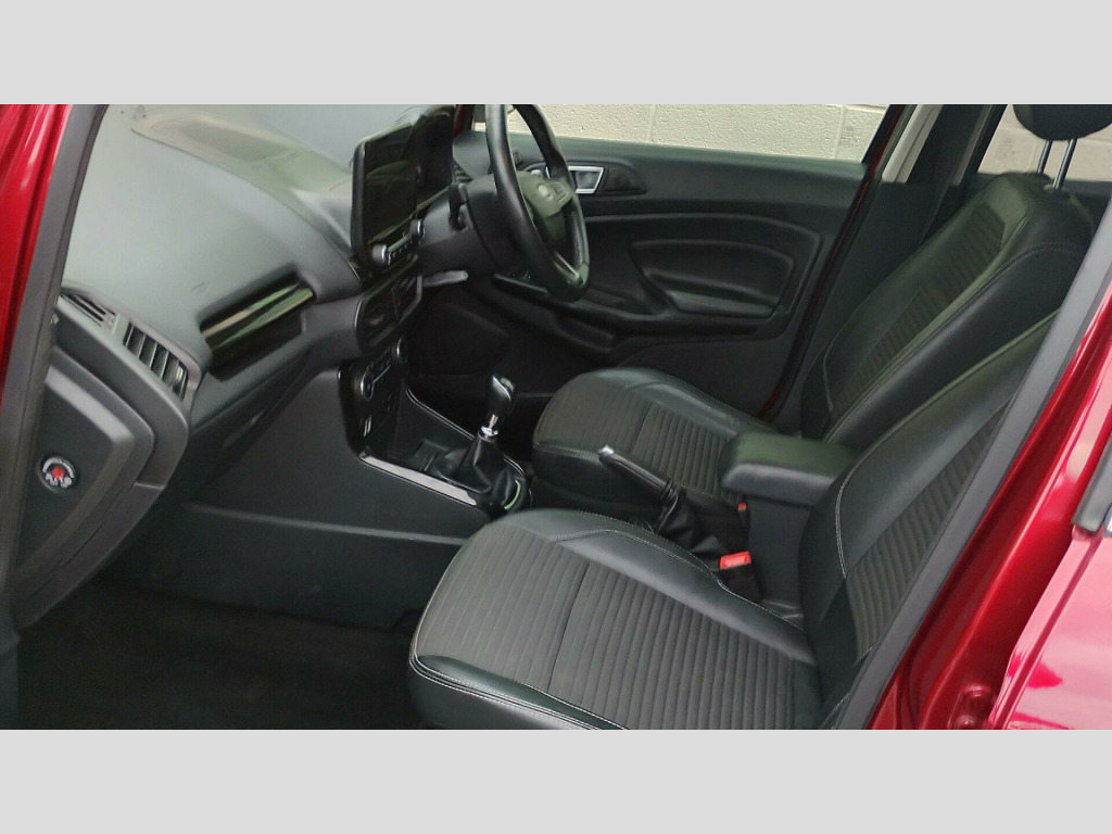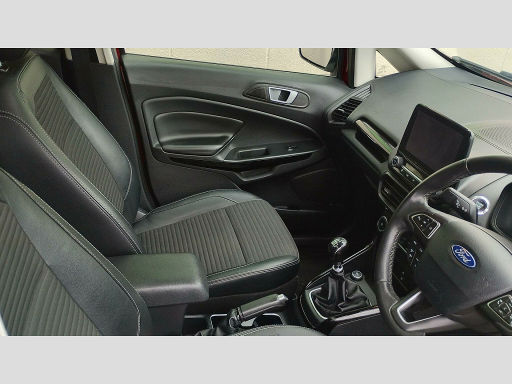 We are delighted to offer for sale and new in to stock this fantastic, Ford EcoSport 1.0T EcoBoost Titanium Euro 6 (s/s) 5dr, for sale, finished in the lovely Red Metallic, with Contrasting Black 1/2 Leather Interior. These really are fantastic cars to drive and very popular, as well as being really modern in terms of its interior and equipment It delivers superb economy, which is complimented superbly by the smooth engine and gearbox, excellent road holding, an all round, very well balanced little car. As you can see from the pictures it is a great looking car in lovely condition both inside and out. It come with a 12 month MOT (with no outstanding advisories) and it will be serviced before it goes. It has an excellent service history and it has four good tyres and it drives faultlessly. Engine, gearbox, brakes and exhaust are all working perfectly, leaving the new owner needing to spend nothing on it for the foreseeable future. The car comes with an excellent specification to include; it has the following; Air Conditioning, Alloy Wheels, Cruise Control, Bluetooth Phone, Privacy Glass, Electric Sunroof, Parking Sensors & Rear Camera, plus much more. The car comes with a 3 month ''Simple Protect'' warranty which can be extended up to 12 months, should you wish. Part exchanges are welcome and we offer an excellent range or finance options. We can also arrange delivery directly to your door. In summary this car is beautifully specified and represents superb value fo r money and offers a great saving from its new price and it will make a great first car or run around. If you would like further information feel free to get in touch. HPI Clear!. 17in Alloy Wheels - 10 Spoke Flash Grey Machined, Adjustable Boot Load Floor, Airbags - Curtain, Airbags - Driver and Front Passenger, Airbags - Drivers Knee, Airbags - Front Passenger De-Activation Switch, Alarm - Thatcham Category 1 with Volume Sensing and Perimeter, Ambient Lighting - Instrument Panel and Footwell, Analogue Instrument Cluster, Anti-Lock Braking System - ABS with Electronic Stability Control - ESC, Automatic Dimming Rear View Mirror, Automatic Headlights, Centre Console Cup Holder with Chrome Accent, Centre Console with Sliding Armrest, Child Locks, Chrome Headlight Bezel, Courtesy Light - Front with Two Map Lights, Courtesy Light - Rear, Cruise Control, Door Frame Beltline - Chrome, Door Handles - Body Colour, Door Mirrors - Power-Foldable Heated with Integrated Side Indicator and Puddle Lights, Driver Seat Manual Height- Fore/Aft and Seatback Angle Adjustment and Recliner, Driver Seat Manual Rotary Knob Lumbar Support Adjustment, Driver and Passengers Sun Visor with Covered Vanity Mirror and Ticket Strip on Drivers Side, Drivers Stowage Glovebox, EPAS - Electric Power Assisted Steering, Electronic Automatic Temperature Control - EATC, Emergency Assistance, Engine Immobiliser, Ford DAB Navigation System with Ford SYNC3, Ford Easy Fuel - Capless Refuelling System, Front 2-Way Head Restraints, Front Fog Lights, Front Grille - Chrome, Front Seat - Passenger Manual - Fore-Aft and Recline Adjustment, Front Seats - 3 Point Seat Belts with Load Limiter and Seatbelt Height Adjust, Front Seats - Seat-Back Map Pockets, Front Suspension - Independent with MacPherson Struts and Anti-Roll Bar, Front and Rear Bumper - Body Colour with Dark Insert, Front and Rear Floor Mats, Front and Rear Folding Grab Handles, Front and Rear Power Points - 12V, Full Length Overhead Console with Sunglasses Holder, Gear Shift Indicator, Gearshift Knob - Black Insert and Chrome-Finish Ring, Glovebox with Cool Bin - Lid and Illumination, Halogen Headlamps with LED Day Running Lights, Halogen Rear Lights, Handbrake Grip - Leather-Trimmed, Headlights - Courtesy Delay, Headlights - Levelling Control, High Mounted Brake Light, IPS - Intelligent Protection System, Keyless Start with Ford Power Start Button, Load Compartment - Lights, Load Compartment Carpet, Load Compartment Side Trim Incorporating Shopping Hooks, Lower Body Side - Door Claddings - Black with Chrome Insert, Manual Parking Brake, MyKey, Power Front and Rear Windows with Global Opening-Closing, Quickclear Heated Front Windscreen with Heated Washer Jets, Rain Sensing Wipers, Rear Seat - Fold and Tumble 60-40 Split - Split Back, Rear Seats - Centre Head Restraint - Up-Down, Rear Seats - Retractable Rear Seat Belt - 3-Point All Positions, Rear Suspension - Semi-Independent Twist Beam with Twin Gas and Oil-Filled Shock Absorbers, Rear View Camera with Rear Parking Sensors, Remote Central Locking, Rocker Panel and Side Cladding - Black, Seat Belt Reminder System - Drivers and Front Passengers, Seats - ISOFIX Mounting Provision for Child Seats - Outer Seats Only, Side Impact Door Beams, Silver Roof Rails, Soft Instrument Panel Cover, Steering Column - Rake and Reach Adjustment, Steering Wheel - Leather-Trimmed with Chrome Inserts, Storage - Front Passenger Underseat Area, Suspension - Front Stabiliser Bar, Tailgate Handle - Chrome, Threshold Plates - Front - Stainless Steel with EcoSport Logo, Tie-Down Hooks, Trip Computer, Tyre Pressure Monitoring System, Tyre Repair Kit, Wiper - Intermittent Rear Wash-Wipe, 18in Alloy Wheels - Flash Grey Machined Finish, Rear Privacy Glass, Groove Fabric and Leather Bolster - Ebony, Salerno Leather - Ebony, Extended Warranty 4 Years - 80000 Miles, Ford Keyless Entry and Keyless Start, Power Opening Sunroof.