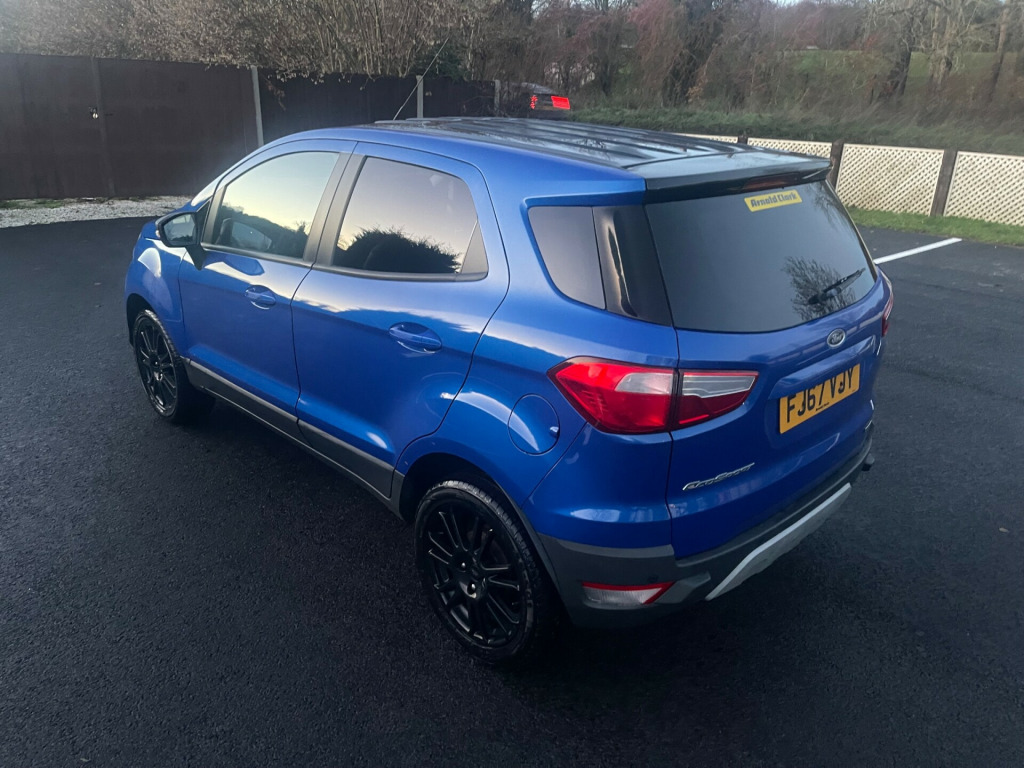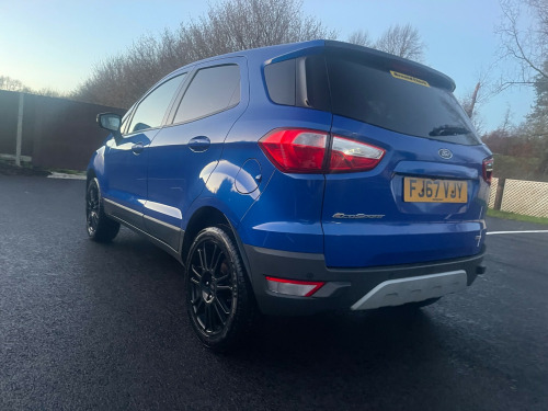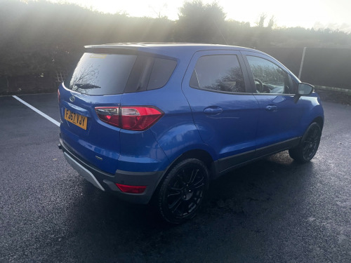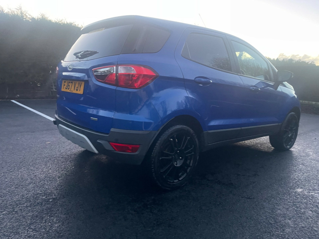 SATNAV REVERSE CAMERA JUST HAD NEW CAMBELT AND WET BELT AND WATER PUMP INCLUDING SERVICES AND NEW MOT This 2017 Ford Ecosport 1.0T EcoBoost Titanium S SUV 5dr has a petrol engine with 56000 miles and is ULEZ compliant, making it ideal for city driving. With a manual transmission and 2WD, this spacious SUV comfortably seats 5 with 5 doors for easy access. It boasts a powerful 140 ps engine and is Euro 6 (s/s) compliant, ensuring great performance and lower emissions. The MOT is valid until 01/12/2026, providing peace of mind for the future. A reliable and stylish choice for those in need of a versatile and efficient vehicle.
