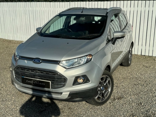This 2015/64 Ford Ecosport has covered ONLY 24822 Miles. Here we have a reliable hatchback from Ford with a 1.0L petrol engine producing 125BHP. The vehicle comes with the following features - Leather seats, Ford SYNC Bluetooth connection with voice control, Multifunction steering wheel, Cruise control and easy fuel cap less refuelling system. This vehicle comes with MOT, Service, Warranty, Vehicle Security Check & Road test completed. PX Welcome. Finance available through our website www.castlecarsonline.co.uk 16in Alloy Wheels - 6 Spoke, ABS - Anti-lock Braking System, AUX Connection, Airbag - Front Passenger, Airbags - Curtain, Airbags - Passenger Deactivation, Airbags - Side Impact, Card Holder, Central Locking - Keyless Entry, Chrome Grille - Large, DDS - Deflation Detection System, Daytime Running Lamps, Door Handle Integrated in Rear Light, Drivers Airbag, EATC - Electronic Automatic Temperature , Electric Windows - Front and Rear, Floor Mats - Carpet - Front and Rear, Ford Power Starter Button, Front Fog Lights, Front Skid Plates, Glovebox - Cooled, Handbrake Cover - Leather, Power Assisted Steering, Radio CD Player MP3 Compatible, Rake Adjustable Rear Seat, Rake and Reach Steering Adjustab