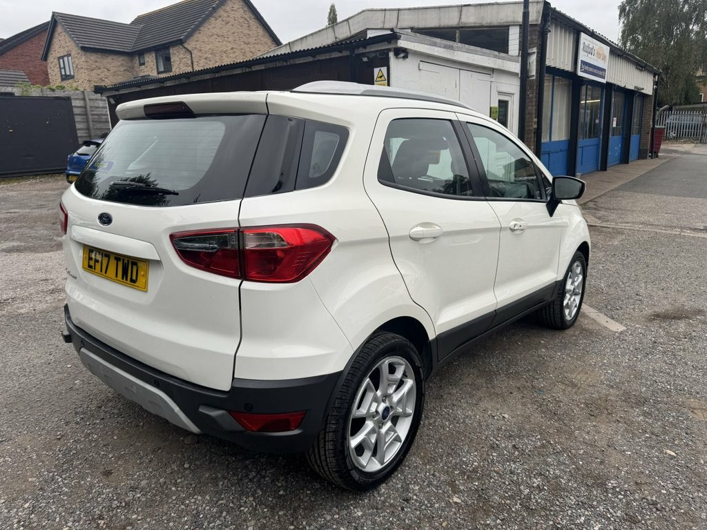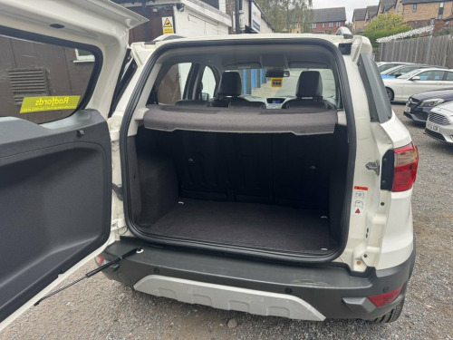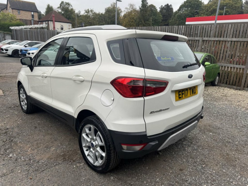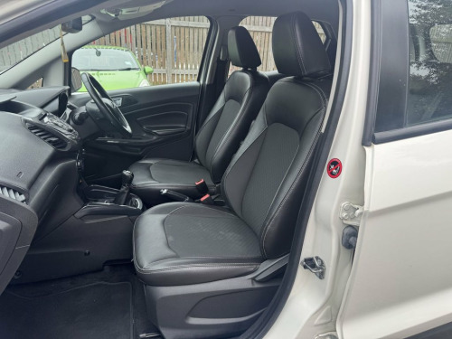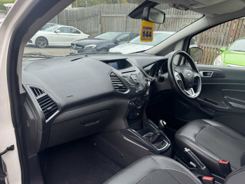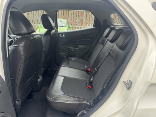 ALL OF OUR CARS ARE HPI CLEAR UNLESS STATED CLEARLY IN OUR ADVERT. WE CAN GET A FINANCE DECISION IN 10 MINUTES AND A FULL DEAL DONE IN JUST 20 MINUTES IN MOST CASES! WE OFFER CLICK AND DELIVER PURCHASING AND GIVE FREE DELIVERY WITHIN 50 MILES! VIDEOS ARE AVAILABLE TOO ON ALL RETAIL CARS. CALL FOR MORE DETAILS. PLEASE NOTE WE ONLY TAKE VIEWINGS BY APPOINTMENT. We are delighted to offer this very clean and tidy Ford Ecosport that we purchased straight from the previous owner. She is in great condition, has sensible mileage, a great spec and will come to you fully serviced, have an advisory free MOT and of course our own in house warranty. She hasa. great spec that includes heated seats, climate control, cruise control, auto lights, Bluetooth for making calls and streaming music, heated windscreen for those frosty mornings, electric front and rear wondows, half leather interior, electric door mirrors, keyless entry and start and alloy wheels. She has sensible mileage, she drives great, has had a recent new clutch fitted by ourselves and for those who want a smaller car, but with a higher ride height and plenty of space, then this is for you. Finance her from just £93.13 a month and get a decision in ten minutes! No deposit options available and we specialise in finance for all credit scores. We have amazing reviews across the internet which shows that we look after our customers! Deal with a trusted family owned business with over 40 years experience. 16in Alloy Wheels - 6 Spoke, ABS - Anti-lock Braking System, AUX Connection, Airbag - Front Passenger, Airbags - Curtain, Airbags - Passenger Deactivation, Airbags - Side Impact, Card Holder, Central Locking - Keyless Entry, Chrome Grille - Large, DDS - Deflation Detection System, Daytime Running Lamps, Door Handle Integrated in Rear Light, Drivers Airbag, EATC - Electronic Automatic Temperature , Electric Windows - Front and Rear, Floor Mats - Carpet - Front and Rear, Ford Power Starter Button, Front Fog Lights, Front Skid Plates, Glovebox - Cooled, Handbrake Cover - Leather, Power Assisted Steering, Radio CD Player MP3 Compatible, Rake Adjustable Rear Seat, Rake and Reach Steering Adjustab
