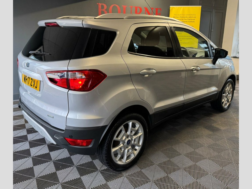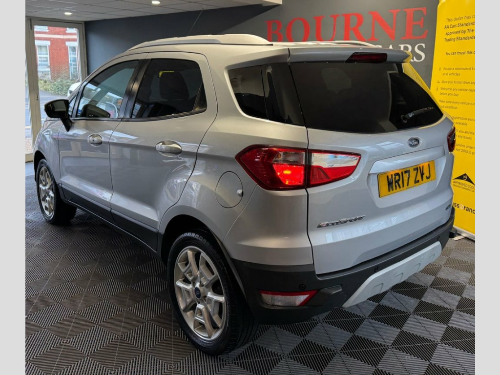 Ford Ecosport Titanium with full service records and new MOT. Services were carried out at: 5326mls, 10986mls, 14100mls, 15624mls, 17702mls, 25332mls, 36223mls, 44198mls in January 2025. MOT 10th of December 2026. 2 Former Keepers. Road Tax: £195/year, Average Fuel Consumption: 53.3MPG, Insurance Group: 11. 2 Keys, This vehicle is fitted with Parking Sensors, Heated Leather Seats, Heated Windscreen, DAB Radio, Cruise Control, Air Conditioning, Bluetooth Phone Connection, USB&AUX Port. Moondust Silver, 16in Alloy Wheels - 6 Spoke, ABS - Anti-lock Braking System, AUX Connection, Airbag - Front Passenger, Airbags - Curtain, Airbags - Passenger Deactivation, Airbags - Side Impact, Card Holder, Central Locking - Keyless Entry, Chrome Grille - Large, DDS - Deflation Detection System, Daytime Running Lamps, Door Handle Integrated in Rear Light, Drivers Airbag, EATC - Electronic Automatic Temperature , Electric Windows - Front and Rear, Floor Mats - Carpet - Front and Rear, Ford Power Starter Button, Front Fog Lights, Front Skid Plates, Glovebox - Cooled, Handbrake Cover - Leather, Power Assisted Steering, Radio CD Player MP3 Compatible, Rake Adjustable Rear Seat, Rake and Reach