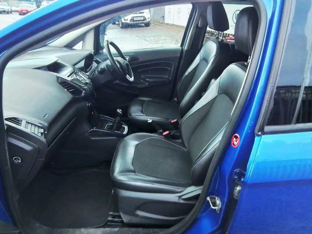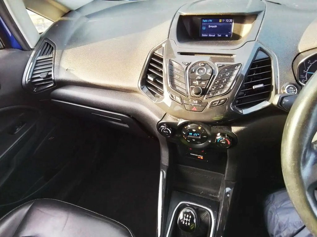 2016 FORD ECOSPORT 1.0 T TITANIUM — AVAILABLE IN KIRKHAM EURO 6 PETROL | LOW RUNNING COSTS | HIGH SPECIFICATION This 2016 Ford EcoSport Titanium is a smart and well-equipped compact SUV, offering elevated driving position, modern technology and excellent fuel efficiency. Supplied with a clear vehicle history check and an MOT valid until October 2026, it provides genuine peace of mind for its next owner. Powered by Ford's award-winning 1.0-litre EcoBoost petrol engine, this Euro 6 compliant model delivers smooth performance while remaining economical, making it ideal for everyday driving, commuting or longer journeys. It is fully ULEZ and Clean Air Zone compliant, keeping future ownership costs predictable. The Titanium trim level adds a strong level of comfort and convenience, creating a refined and user-friendly cabin. The Ford KeyFree system allows keyless entry and push-button start, while Electronic Automatic Temperature Control air conditioning maintains a comfortable interior in all weather conditions. Visibility is enhanced by automatic halogen headlights with LED signature lighting, and security is covered by a Thatcham-approved alarm system. Refuelling is made simple thanks to Ford's Easy Fuel capless refuelling system, eliminating the need for a traditional fuel cap and reducing the risk of misfuelling. Running costs are a real highlight of this EcoSport. With fuel economy of up to 52 mpg, low CO? emissions and a low insurance group, it is sign 17in Alloy Wheels - 5x2 Spoke in Silver , Air Conditioning - Electronic Automatic , Airbags - Driver and Front Passenger, Airbags - Drivers Knee, Airbags - Front Passenger De-Activation , Airbags - Front Side, Airbags - Front and Rear Side Curtain, Anti-Lock Braking System - ABS with Elec, Armrest - Drivers, Auto Dimming Rear View Mirror, Child Locks, Courtesy Lights - Front and Rear Centre , Cruise Control, Door Mirrors - Body Colour Housing, EPAS - Electric Power Assisted Steering, Floor Mats - Carpet - Front and Rear, Ford Easy-Fuel Capless Refuelling System, Ford Keyfree System - Keyless Entry with, Front Bumper - Body Colour with Dark Val, Front Fog Lights with Integrated Daytime, Front