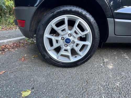 This 2017 Ford Ecosport 1.0T EcoBoost Titanium SUV in British Racing Green with 66792 miles on the clock is a sleek and stylish family car that's perfect for city driving and long road trips. Powered by a reliable petrol engine, this 5-door, 5-seater SUV is ULEZ compliant and comes with a MOT that expires on 21/03/2026. With its Euro 5 standard, this manual 2WD vehicle is both economical and environmentally friendly. Some of its impressive features include 16in Alloy Wheels, Chrome Grille, Integrated Door Handle in Rear Light, Electric Windows, and Silver Roof Rails, making it a practical and attractive choice for any driver. Whether you're navigating urban streets or cruising down the motorway, this Ford Ecosport is a versatile and comfortable ride that's sure to meet all your driving needs. in alloy wheels - 6 spoke, chrome grille - large, door handle integrated in rear light, electric windows - front and rear, silver roof rails, spare wheel with cover - alloy, abs - anti-lock braking system, airbag - front passenger, airbags - curtain, airbags - passenger deactivation, airbags - side impact, central locking - keyless entry, drivers airbag, front skid plates, rear skid plates, thatcham category 1 alarm, aux connection, radio cd player mp3 compatible, usb connection, card holder, eatc - electronic automatic temperature control - climate control, floor mats - carpet - front and rear, ford power starter button, glovebox - cooled, handbrake cover - leather, rake adjustable rear seat, rake and reach steering adjustable, seats - drivers lumbar support, seats - drivers manual height and tilt adjustment, slide out drawer under the front seat, steering wheel - audio controls, steering wheel - leather, stowage pockets - front seatback, sunglasses holder, dds - deflation detection system, power assisted steering, trip computer, tyre pressure monitoring system, daytime running lamps, front fog lights