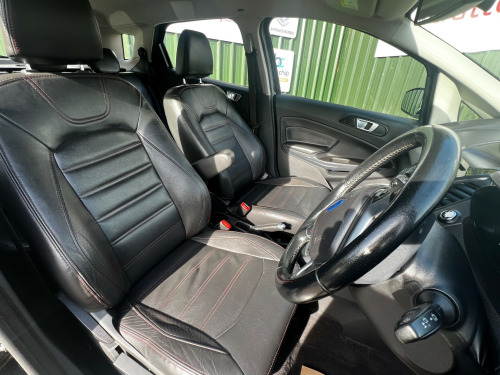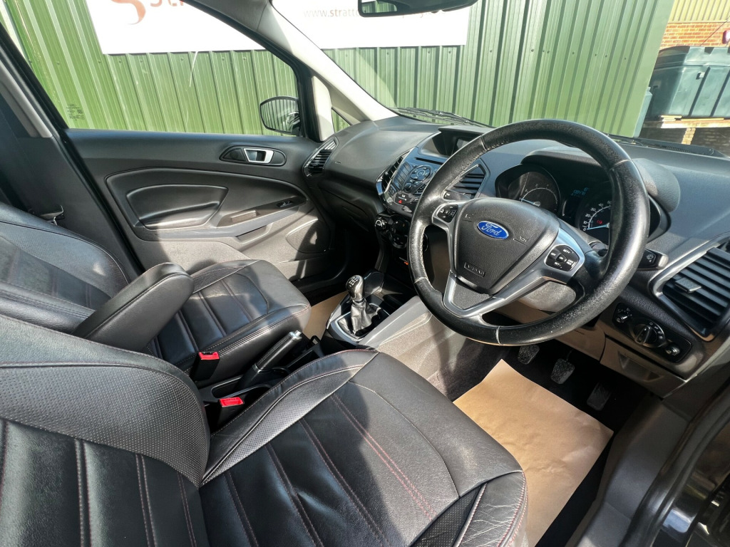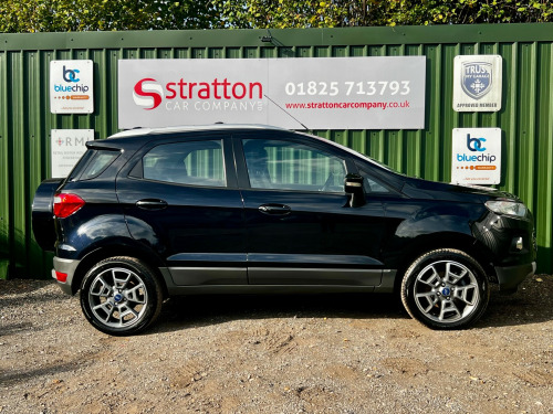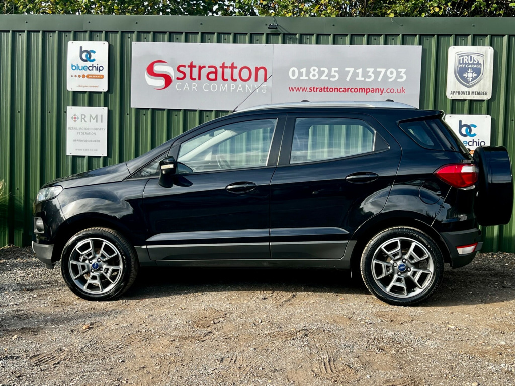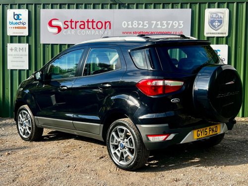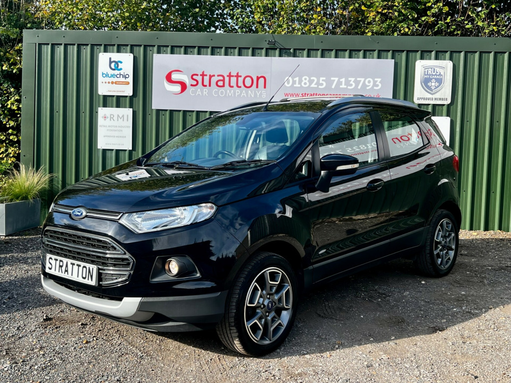 This 2015 Ford Ecosport 1.0 Titanium SUV with 67404 miles is a reliable and efficient choice for those in need of a practical vehicle. This 5-door, 5-seater runs on petrol and is ULEZ compliant, making it an environmentally-friendly option. With an impresive service history comprising of 8 stamps in the service book and Cambelt replacement May2024, this vehicle will also be serviced by ourselves in our own workshop where it will undergo a complete and meticulous mechanical inspection which has the backing of a 3 month BLUECHIP extendable warranty. We must add at this juncture that the majority of our customers tend to extend to the 12 month all mechanical all electrical warranty at the extremely competitive price of just £399+ VAT. Full details can be viewed at www.strattoncarcompany.co.uk This SUV will be ready to hit the road with confidence. Its 1.0T EcoBoost engine delivers 125 ps, providing ample power for any journey. The manual transmission and 2WD capability ensure a smooth and controlled driving experience. This Ecosport also comes with 16in Alloy Wheels, Full Leather Interior, Chrome Grille, Electric Windows, Silver Roof Rails, and Door Handle Integrated in Rear Light, adding both style and functionality to the vehicle. Whether for city commuting or outdoor adventures, this Ford Ecosport offers a comfortable and versatile driving experience for all. Offered for sale by Stratton car Company of Sussex A Family Run Business. in alloy wheels - 6 spoke, chrome grille - large, door handle integrated in rear light, electric windows - front and rear, silver roof rails, spare wheel with cover - alloy, abs - anti-lock braking system, airbag - front passenger, airbags - curtain, airbags - passenger deactivation, airbags - side impact, central locking - keyless entry, drivers airbag, front skid plates, rear skid plates, thatcham category 1 alarm, aux connection, radio cd player mp3 compatible, usb connection, card holder, eatc - electronic automatic temperature control - climate control, ford power starter button, glovebox - cooled, handbrake cover - leather, rake adjustable rear seat, rake and reach steering adjustable, seats - drivers lumbar support, seats - drivers manual height and tilt adjustment, slide out drawer under the front seat, steering wheel - audio controls, steering wheel - leather, stowage pockets - front seatback, sunglasses holder, dds - deflation detection system, power assisted steering, trip computer, tyre pressure monitoring system, daytime running lamps, front fog lights