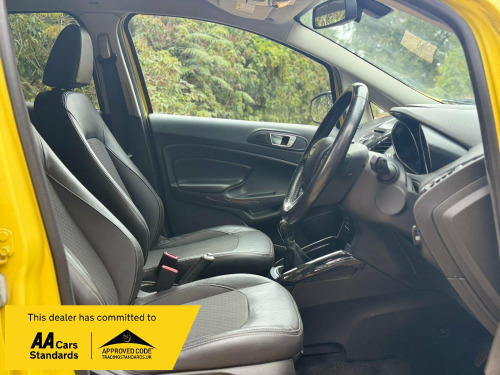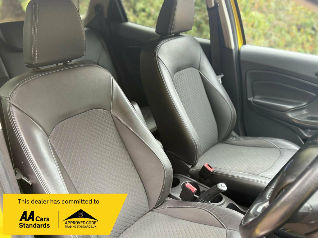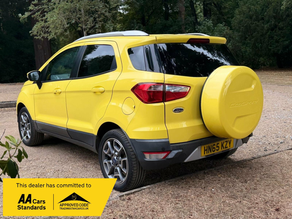 JUST ARRIVED THIS 2015/65 TOP OF THE RANGE FANTASTIC LOOKING BRIGHT YELLOW LOW MILEAGE FORD ECO SPORT 1.0 TURBO TITANIUM WITH ONLY 70,000 MILES , THIS EXAMPLE IS IN EXCELLENT CONDITION THROUGHOUT AND LOOKS AND DRIVES SUPERB , ABSOLUTELY A GREAT LITTLE FAMILY CAR OR FANTASTIC RUNAROUND AND GREAT TO BE HIGHER UP IN THESE AS A GREAT DRIVING POSITION INDEED , BEING A TITANIUM MODEL IT HAS A LOVELY SPEC AND THEN THERES THE COLOUR YOUR EITHER LOVE IT OR HATE IT BUT ONE THING IS YOUR DEFINITELY BE SEEN IN IT AS IT STANDS OUT ALOT !! GREAT IN A CAR PARK THO !FANTASTIC VALUE ALL ROUND EXAMPLE AND WILL COME WITH A 12 MONTH WARRANTY AND A NEW MOT.SO GET THIS UNIQUE BRIGHT EXAMPLE RESERVED ASAP AT RAN CARS AND COMMERCIALS LIMITED in alloy wheels - 6 spoke, chrome grille - large, door handle integrated in rear light, electric windows - front and rear, silver roof rails, spare wheel with cover - alloy, abs - anti-lock braking system, airbag - front passenger, airbags - curtain, airbags - passenger deactivation, airbags - side impact, central locking - keyless entry, drivers airbag, front skid plates, rear skid plates, thatcham category 1 alarm, aux connection, radio cd player mp3 compatible, usb connection, card holder, eatc - electronic automatic temperature control - climate control, floor mats - carpet - front and rear, ford power starter button, glovebox - cooled, handbrake cover - leather, rake adjustable rear seat, rake and reach steering adjustable, seats - drivers lumbar support, seats - drivers manual height and tilt adjustment, slide out drawer under the front seat, steering wheel - audio controls, steering wheel - leather, stowage pockets - front seatback, sunglasses holder, dds - deflation detection system, power assisted steering, trip computer, tyre pressure monitoring system, daytime running lamps, front fog lights
