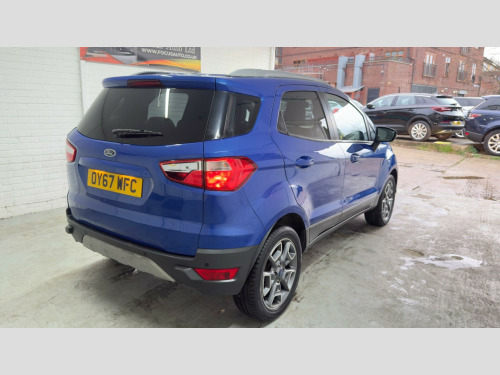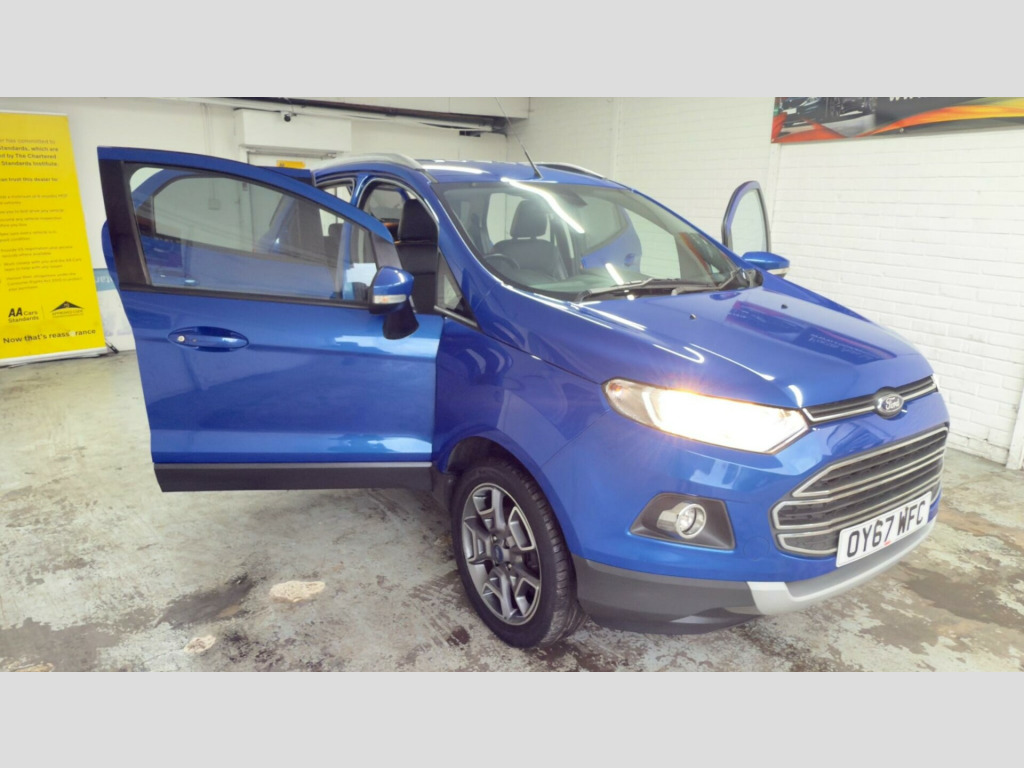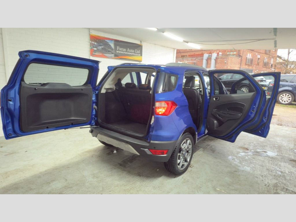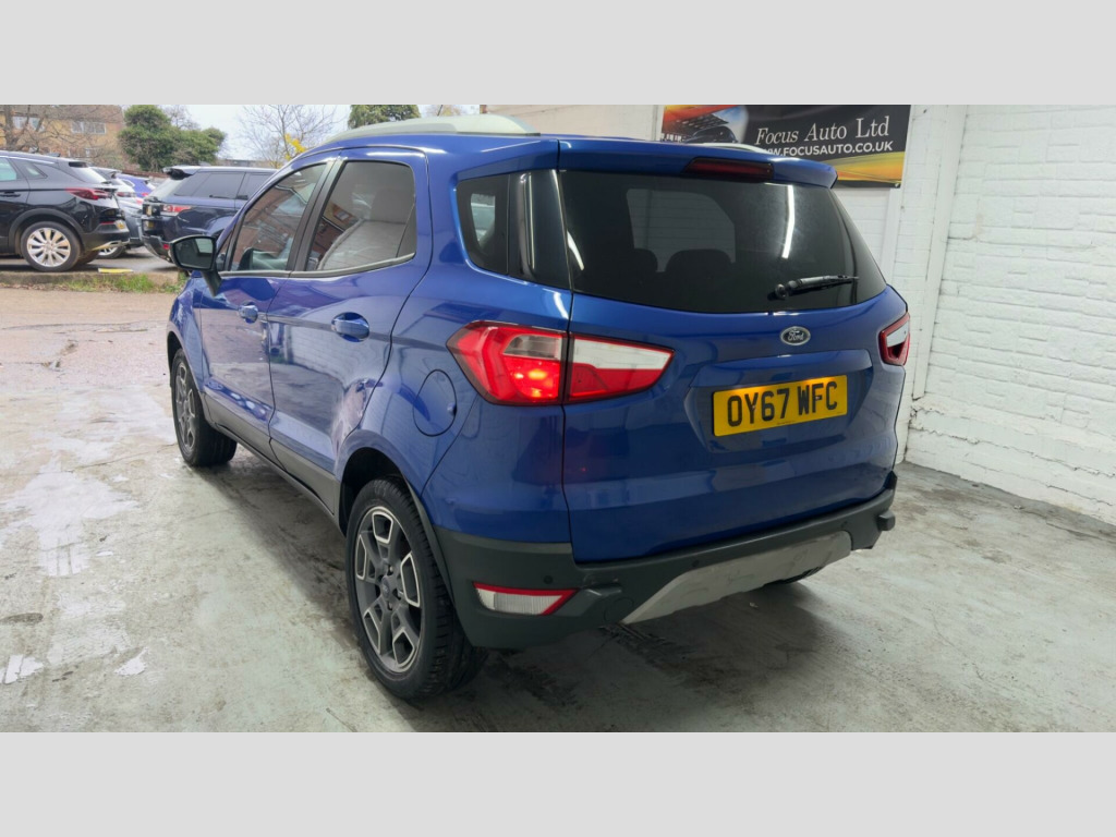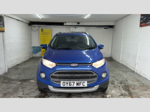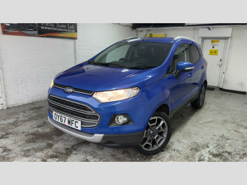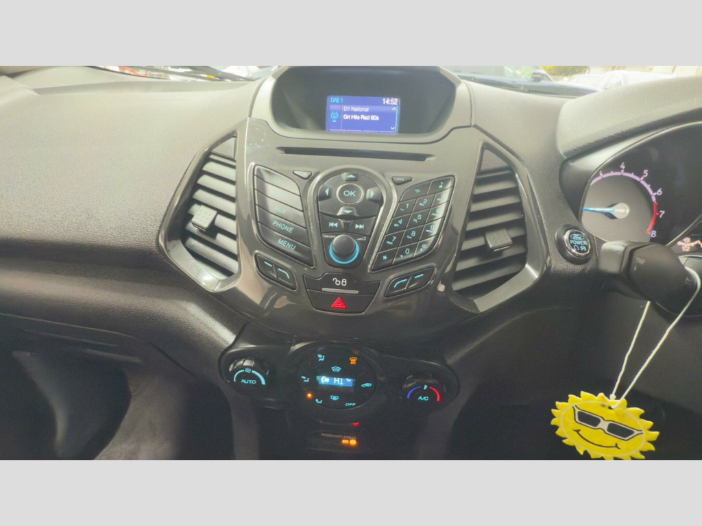 This 2017 Ford EcoSport T Titanium boasts a clear vehicle history check, offering you peace of mind. This stylish SUV is powered by an efficient 1.0L petrol engine, meeting Euro 6 emissions standards. It features automatic halogen headlights with LED signature lights, a Ford Keyfree system for keyless entry and starting, and electronic automatic temperature control for your comfort. The EcoSport also includes the convenient Ford Easy Fuel capless refuelling system and independent front suspension with MacPherson struts for a smooth ride.With an impressive fuel economy of 52 miles per gallon, this EcoSport is designed to be economical. Its low CO2 emissions and low insurance group further highlight its cost effectiveness compared to similar vehicles. This particular model comes with a 3 month warranty and its MOT is valid until November 2026, ensuring it is roadworthy and ready for your adventures.All vehicles are inspected by trained technicians and are history checked. Test drives and part-exchange are available, and you can choose, buy and drive away the same day. Three months mechanical parts and labour warranty included. Third party extended Warranty (up to 36 months) options are available. Free 12 months AA roadside breakdown Assistance. 5 days drive away Insurance available from £44.99 (term & conditions apply) Our cars are HPI cleared. Competitive finance options are available. NO Admin Fee- NO ADMIN fee on finance application made with us. Admin fee may apply on finance application made from third party( please ask for details). All Major cards are accepted. Look our website www.focusauto.co.uk for further information. in alloy wheels - 5x2 spoke in silver finish, air conditioning - electronic automatic temperature control - eatc, airbags - driver and front passenger, airbags - drivers knee, airbags - front passenger de-activation switch, airbags - front side, airbags - front and rear side curtain, anti-lock braking system - abs with electronic stability control - esc, armrest - drivers, auto dimming rear view mirror, child locks, courtesy lights - front and rear centre with theatre-style dimming, cruise control, door mirrors - body colour housing, epas - electric power assisted steering, floor mats - carpet - front and rear, ford easy-fuel capless refuelling system, ford keyfree system - keyless entry with ford power starter button, front bumper - body colour with dark valance, front fog lights with integrated daytime running lights and chrome surrounds, front lower grille - chrome, front seat - drivers manual height and fore-aft adjustment, front seat - drivers manual lumbar support adjustment, front seat - passengers fore-aft adjustment, front seat - under passenger seat stowage, front seats - 2-way head restraint up-down, front seats - seat-back map pockets, front suspension - independent with macpherson struts and anti-roll bar, front upper grille - chrome, front and rear power points - 12v, gear shift indicator, gearshift knob - leather-trimmed with black insert and aluminium-finish ring, headlights - automatic - halogen with led signature lights, hill start assist, ips - intelligent protection system, interior door lever - chrome finish, locking wheel nuts, package tray, radio-cd, rake adjustable rear seat, rear bumper - body colour with dark valance, rear seat - 60-40 split folding seat back and cushion with multi-step recline function, rear suspension - semi-independent twist beam with twin gas and oil-filled shock absorbers, scuff plates - silver, seats - isofix mounting provision for child seats - outer seats only, silver lower-bumper lip - front and rear, silver roof rails, steering column - rake and reach adjustment, steering wheel - 3-spoke - leather-trimmed - remote audio controls, thatcham alarm, threshold plates - front - stainless steel with ecosport logo, tie-down hooks, trip computer, tyre pressure monitoring system, windows - front power with one-touch opening-closing on drivers side, windows - rear power, wipers - front - automatic with rain sensor, wipers - rear wash-wipe - intermittent