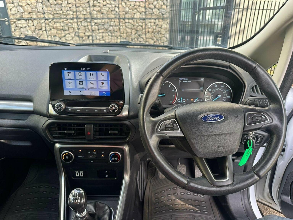 The Ford EcoSport is a compact SUV thats perfect for navigating the UKs busy roads. This 2018 model is a Zetec variant, powered by a 1.0L Petrol Engine, which meets the stringent Euro 6 emission standards. With a manual transmission and air conditioning to keep you cool, youll be comfortable on even the longest journeys. The Ford EcoSport also features a state-of-the-art infotainment system, complete with a DAB radio, Ford SYNC3, Apple CarPlay, and Android Auto, ensuring seamless connectivity and entertainment on the go. Bluetooth connectivity is also standard, making it easy to stay connected with friends and family. One of the standout features of this Ford EcoSport is its impressive fuel economy, with a top-notch 53 mpg. This indicates that the EcoSport is a more fuel-efficient option compared to other similar vehicles in its class. Additionally, its low CO2 emissions make it a more environmentally friendly choice, perfect for those looking to reduce their carbon footprint. Whether youre commuting to work or embarking on a road trip, the Ford EcoSport is a reliable and practical companion thats sure to meet your needs.