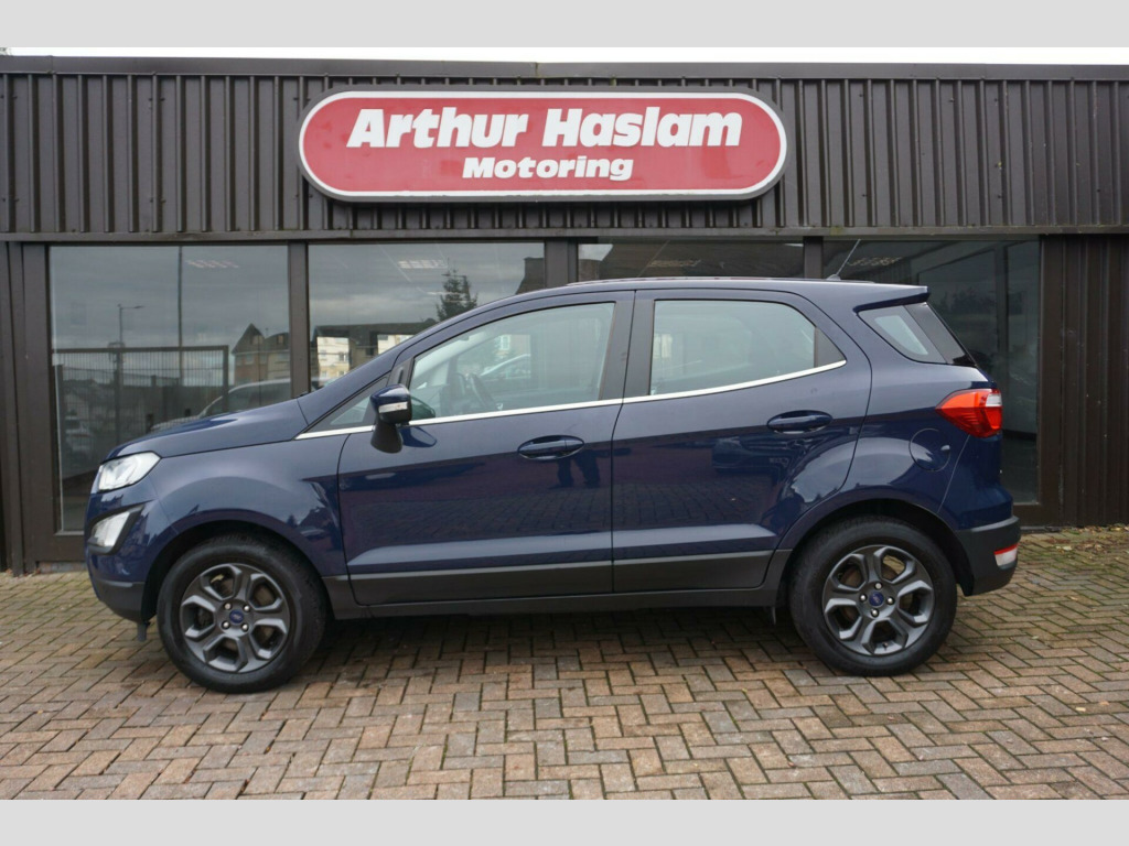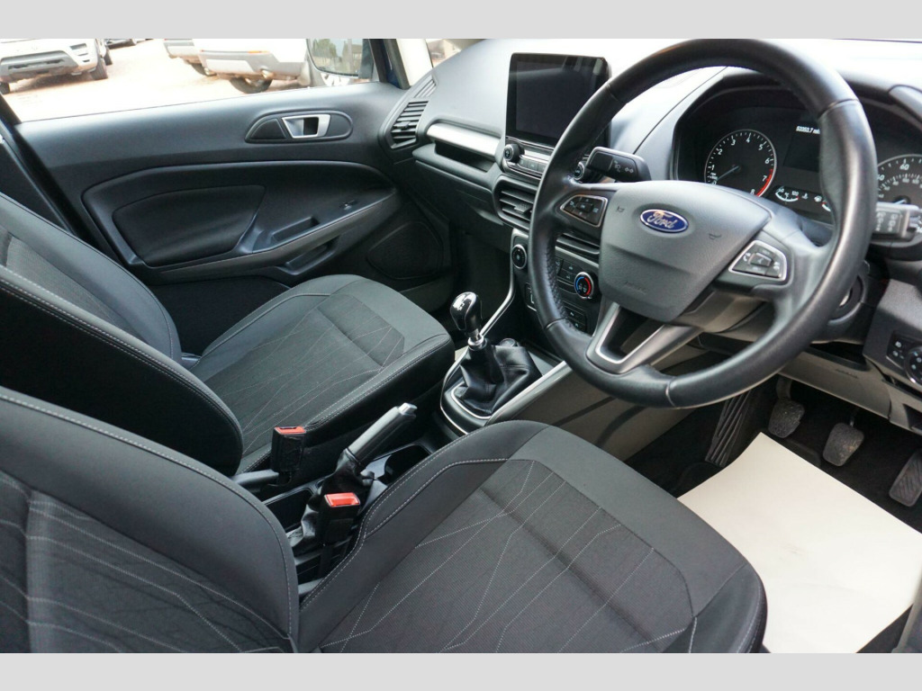 This 2018 Ford EcoSport Zetec is presented with a full service history, offering peace of mind for its next owner. This T Zetec model is equipped with a 1.0 litre petrol engine and meets Euro 6 emissions standards. Inside, you'll find manual air conditioning for your comfort, alongside a Ford DAB radio featuring Ford SYNC 3, which seamlessly integrates with both Apple CarPlay and Android Auto, allowing for easy access to your smartphone's features.The EcoSport Zetec stands out with its impressive fuel economy, achieving up to 53 miles per gallon, which indicates it is more economical than many other vehicles in its class. Furthermore, its low CO2 emissions highlight its efficiency and environmental consideration, making it a sensible choice for those seeking a practical and cost effective vehicle.. 16in Alloy Wheels - 5 Spoke Magnetic Low Gloss Paint, Adjustable Boot Load Floor, Airbags - Curtain, Airbags - Driver and Front Passenger, Airbags - Drivers Knee, Airbags - Front Passenger De-Activation Switch, Alarm - Thatcham Category 1 with Volume Sensing and Perimeter, Analogue Instrument Cluster, Anti-Lock Braking System - ABS with Electronic Stability Control - ESC, Centre Console with Cup Holder, Child Locks, Chrome Headlight Bezel, Courtesy Light - Front with Two Map Lights, Courtesy Light - Rear, Door Frame Beltline - Black, Door Handles - Body Colour, Door Mirrors - Electrically Operated and Heated, Driver Seat Manual Height- Fore/Aft and Seatback Angle Adjustment and Recliner, Driver Seat Manual Rotary Knob Lumbar Support Adjustment, Driver and Passengers Sun Visor with Covered Vanity Mirror and Ticket Strip on Drivers Side, Drivers Stowage Glovebox, EPAS - Electric Power Assisted Steering, Electric Windows - Front and Rear with One Touch Drivers, Emergency Assistance, Engine Immobiliser, Ford DAB Radio with Ford SYNC3 - Apple Car Play and Android Auto, Ford Easy Fuel - Capless Refuelling System, Front 2-Way Head Restraints, Front Fog Lights, Front Grille - Chrome, Front Seat - Passenger Manual - Fore-Aft and Recline Adjustment, Front Seats - 3 Point Seat Belts with Load Limiter and Seatbelt Height Adjust, Front Seats - Seat-Back Map Pockets, Front Suspension - Independent with MacPherson Struts and Anti-Roll Bar, Front and Rear Bumper - Body Colour with Dark Insert, Front and Rear Floor Mats, Front and Rear Folding Grab Handles, Front and Rear Power Points - 12V, Full Length Overhead Console with Sunglasses Holder, Gear Shift Indicator, Gearshift Knob - Black Insert and Chrome-Finish Ring, Glovebox with Cool Bin - Lid and Illumination, Halogen Headlamps with LED Day Running Lights, Halogen Rear Lights, Handbrake Grip - Leather-Trimmed, Headlights - Courtesy Delay, Headlights - Levelling Control, High Mounted Brake Light, IPS - Intelligent Protection System, Load Compartment - Lights, Load Compartment Carpet, Load Compartment Side Trim Incorporating Shopping Hooks, Low Level Centre Console, Lower Body Side - Door Claddings - Black, Manual Air Conditioning, Manual Dimming Rear-View Mirror, Manual Parking Brake, MyKey, Quickclear Heated Front Windscreen with Heated Washer Jets, Rear Seat - Fold and Tumble 60-40 Split - Split Back, Rear Seats - Centre Head Restraint - Up-Down, Rear Seats - Retractable Rear Seat Belt - 3-Point All Positions, Rear Suspension - Semi-Independent Twist Beam with Twin Gas and Oil-Filled Shock Absorbers, Remote Central Locking, Rocker Panel and Side Cladding - Black, Seat Belt Reminder System - Drivers and Front Passengers, Seats - ISOFIX Mounting Provision for Child Seats - Outer Seats Only, Side Impact Door Beams, Soft Instrument Panel Cover, Steering Column - Rake and Reach Adjustment, Steering Wheel - Leather-Trimmed with Chrome Inserts, Storage - Front Passenger Underseat Area, Suspension - Front Stabiliser Bar, Tie-Down Hooks, Trip Computer, Tyre Pressure Monitoring System, Tyre Repair Kit, Wiper - Intermittent Rear Wash-Wipe, Wipers - Front Variable Intermittent. Full service history