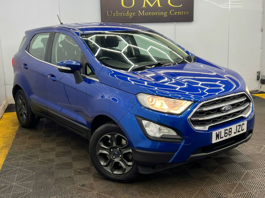 Discover this 2019 Ford EcoSport Zetec, a stylish and practical choice for your next vehicle. This particular model boasts a 1.0 litre petrol engine and meets Euro 6 emissions standards, making it a conscientious option. Inside, you'll find the user friendly Ford SYNC 2.5 system, complete with an 8 inch touchscreen that seamlessly integrates with Android Auto and Apple CarPlay, alongside Bluetooth connectivity for all your devices. Comfort is also assured with manual air conditioning, ensuring a pleasant cabin temperature whatever the weather.This Ford EcoSport offers an impressive highlight of 49 miles per gallon, demonstrating its efficiency and cost effectiveness for everyday driving. Furthermore, its low CO2 emissions indicate a more environmentally friendly performance compared to many other vehicles in its class. These highlights, combined with its well equipped Zetec trim, make this 2019 EcoSport a compelling proposition for those seeking a reliable and economical compact SUV.To add to your peace of mind, we offer a 3-month warranty, 12 months of AA Breakdown Cover, and a minimum 6 months of both MOT and service. Your satisfaction and the longevity of your investment are our top priorities.Explore financing options by contacting us at 07405357469. The financing package includes a 12-month AA Breakdown Cover, and while a minimum 6 months MOT is provided (though not applicable to all vehicles), please be aware that an admin charge may apply.Our commitment to customer satisfaction extends to flexible viewing hours until late, allowing you ample time to inspect and appreciate this vehicle. Additionally, we provide warranty and delivery options to cater to your preferences. If you have a vehicle for exchange, we are open to considering it.To ensure transparency and clarity, we encourage customers to verify the car's specifications, advert description, and mileage with our salesperson before finalizing the purchase. This ensures that your experience exceeds expectations, making it a truly enjoyable and worry-free journey. in alloy wheels - 5 spoke magnetic, adjustable boot load floor, airbags - curtain, airbags - driver and front passenger, airbags - drivers knee, airbags - front passenger de-activation switch, alarm - thatcham category 1 with volume sensing and perimeter, analogue instrument cluster, anti-lock braking system - abs with electronic stability control - esc, centre console with cup holder, child locks, chrome headlight bezel, courtesy light - front with two map lights, courtesy light - rear, door handles - body colour, door mirrors - body colour housing, door mirrors - electrically operated and heated, driver seat manual height- fore/aft and seatback angle adjustment and recliner, driver seat manual rotary knob lumbar support adjustment, driver and passengers sun visor with covered vanity mirror and ticket strip on drivers side, drivers stowage glovebox, epas - electric power assisted steering, esp - electronic stability programme with hill launch assist, emergency assistance, engine immobiliser, ford easy fuel - capless refuelling system, ford sync 2.5 with 8in touchscreen, front fog lights and turn indication light bezel - black, front fog lights with combined turn indication light, front grille - chrome, front seat - passenger manual - fore-aft and recline adjustment, front seat - under passenger seat stowage, front seats - 2-way head restraint up-down, front seats - 3 point seat belts with load limiter and seatbelt height adjust, front seats - seat-back map pockets, front suspension - independent with macpherson struts and anti-roll bar, front and rear bumper - body colour with dark insert, front and rear floor mats, front and rear folding grab handles, front and rear power points - 12v, full length overhead console with sunglasses holder, gear shift indicator, gearshift knob - black insert and chrome-finish ring, glovebox with cool bin - lid and illumination, halogen rear lights, handbrake grip - leather-trimmed, headlights - courtesy delay, headlights - levelling control, headlights - projector beam headlight with led daytime running lights, height lumbar adjustment on drivers seat, high mounted brake light, ips - intelligent protection system, leather handbrake and gearknob, load compartment - lights, load compartment carpet, load compartment side trim incorporating shopping hooks, low level centre console, lower body side - door claddings - black, manual air conditioning, manual dimming rear-view mirror, manual parking brake, mykey, power front and rear windows, quickclear heated front windscreen with heated washer jets, rake adjustable rear seat, rear seat - 60-40 split folding seats, rear seats - 2-way head restraint up-down, rear seats - centre head restraint - up-down, rear seats - retractable rear seat belt - 3-point all positions, rear suspension - semi-independent twist beam with twin gas and oil-filled shock absorbers, remote central locking, rocker panel and side cladding - black, seat belt reminder system - drivers and front passengers, seats - isofix mounting provision for child seats - outer seats only, side impact door beams, soft instrument panel cover, steering column - rake and reach adjustment, steering wheel - leather-trimmed with chrome inserts, suspension - front stabiliser bar, tie-down hooks, trip computer, tyre inflator kit, tyre pressure monitoring system, tyre repair kit, wipers - front variable intermittent, wipers - rear wash-wipe - intermittent