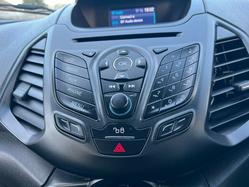 HPI CLEAR, ULEZ COMPLIANT here we have got this hot seller 2017 Ford EcoSport Zetec, a 1.0L petrol model has just arrived in our Stock! Kitted out with tonnes of features, including 2 keys, Air Con and much more.Discover that offers an impressive 52 miles per gallon. This Euro 6 compliant vehicle is presented in the T Zetec variant and comes equipped with manual air conditioning for your comfort.This Ford EcoSport stands out with its low insurance group and low CO2 emissions, indicating it is more economical to run and insure than many comparable vehicles. Its efficient 1.0L engine and excellent fuel economy make it a sensible choice for everyday driving. The car is a great example of BEAUTY, IDEALLY FULL SERVICE HISTORY, ONE FORMER KEEPER only. Mechanically and Electrically all Good. Shifts Nicely in all the Gears with Smooth Drive, A tidy family car for the perfect blend of performance & fuel efficiency Whether you're navigating city streets or cruising on the motorway, with no rips and tears to the Interior, cheap to insure and Tax, Car has got Good service history and Long MOT. Body work is good as per the Age car offers, the spacious and comfortable cabin of the car, you'll find a host of features designed to enhance your driving experience like...This car also comes with free 12 months AA-Breakdown cover, AA-approved dealer, all major Debit/Credit Cards accepted, finance options available, FCA registered and work with all major Finance companies. We have a wide selection of cars, all our stock is carefully picked, so you can buy from us with confidence. Each vehicle undergoes a thorough inspection by a highly qualified specialist, all our vehicles are HPI checked. Looking to part exchange we guaranty the best prices paid for your trade in vehicle, you can reserve any of our cars with a refundable £99 deposit. Nationwide Delivery Available, 5 days drive away insurance and extended warranty packages are also available at extra reasonable price. Please don't hesitate to call us if you need any more info about this car. Visit www.mabauto.co.uk in alloy wheels - 6x2 spoke, airbags - driver and front passenger, airbags - drivers knee, airbags - front passenger de-activation switch, airbags - front side, airbags - front and rear side curtain, anti-lock braking system - abs with electronic stability control - esc, armrest - drivers, child locks, courtesy lights - front and rear centre with theatre-style dimming, door mirrors - body colour housing, epas - electric power assisted steering, floor mats - carpet - front and rear, ford easy-fuel capless refuelling system, front bumper - body colour with dark valance, front fog lights with integrated daytime running lights, front lower grille - silver finish, front seat - drivers manual height and fore-aft adjustment, front seat - drivers manual lumbar support adjustment, front seat - passengers fore-aft adjustment, front seat - under passenger seat stowage, front seats - 2-way head restraint up-down, front seats - seat-back map pockets, front suspension - independent with macpherson struts and anti-roll bar, front upper grille - silver finish, front and rear power points - 12v, gear shift indicator, gearshift knob - leather-trimmed with black insert and aluminium-finish ring, headlights - halogen with led signature lights, hill start assist, ips - intelligent protection system, interior door lever - chrome finish, locking wheel nuts, manual air conditioning, package tray, radio-cd, rake adjustable rear seat, rear bumper - body colour with dark valance, rear seat - 60-40 split folding seat back and cushion with multi-step recline function, rear suspension - semi-independent twist beam with twin gas and oil-filled shock absorbers, remote central locking, seats - isofix mounting provision for child seats - outer seats only, steering column - rake and reach adjustment, steering wheel - 3-spoke - leather-trimmed - remote audio controls, thatcham alarm, tie-down hooks, trip computer, tyre pressure monitoring system, windows - front power with one-touch opening-closing on drivers side, windows - rear power, wipers - front variable intermittent, wipers - rear wash-wipe - intermittent, ford dab digital radio, rear parking sensors, silver roof rails, patna fabric - dark shadow and charcoal black, winter pack