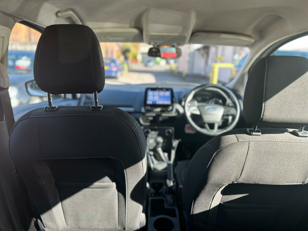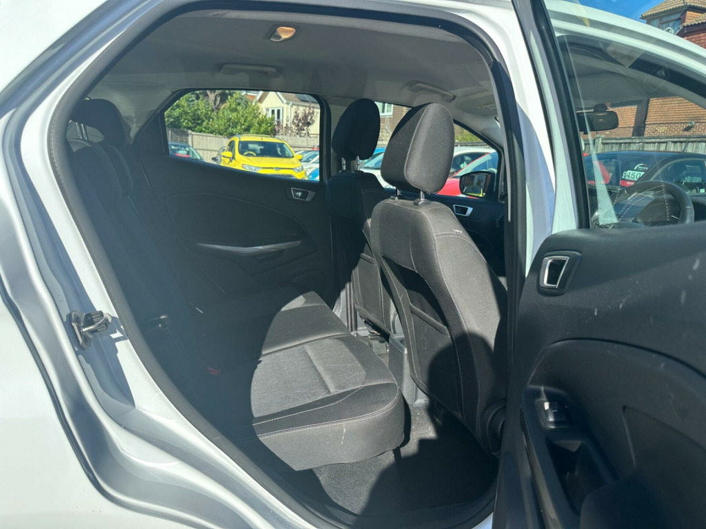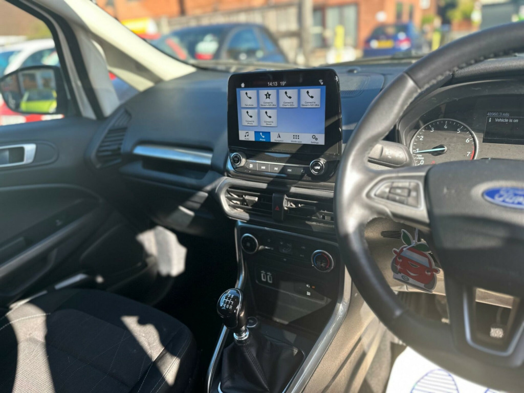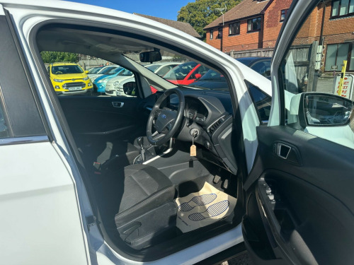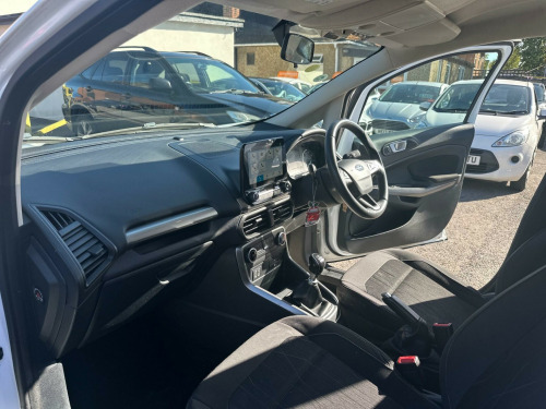 Discover this 2018 Ford EcoSport T Zetec, a well presented vehicle ready for its next owner. This model boasts a 1.0 litre petrol engine and is Euro 6 compliant, ensuring it meets current emission standards. Notable features include practical black roof rails, a CD player for your favourite music, and manual air conditioning to keep you comfortable. Stay connected and entertained with the Ford DAB Radio featuring Ford SYNC3, which offers seamless integration with Apple CarPlay and Android Auto, along with Bluetooth connectivity.This Ford EcoSport stands out with its impressive fuel economy, achieving up to 53 miles per gallon, which indicates it is more economical than many similar vehicles. Furthermore, its low CO2 emissions highlight its efficiency and environmental consideration. This combination of cost effective running and modern technology makes the 2018 EcoSport T Zetec a sensible choice for everyday driving. ARE YOU READY FOR FIRST SET OF WHEELS?, WHY CHOOSE US? WE OFFER A DIVERSE RANGE OF QUALITY USED CARS, PERFECT FOR BOTH FIRST-TIME AND SECOND TIME BUYERS. YOU WILL FIND THE RIGHT CAR FOR YOUR NEEDS. OUR SERVICES ARE: FIRST TIME BUYER SPECIALIST. FINANCING OPTIONS, VEHICLE INSPECTION, TRADE-INS WELCOME, FREE WARRANTY, EXTENDED NATIONWIDE WARRANTY 6 AND 12 MONTHS AVAILABLE WITH COMPETITIVE PRICE. EXCELLENT CONDITION, IT WILL COME WITH NEW ENGINE SERVICE, ALL CARS IN DOOR SHOW ROOM, PART EXCHANGE WELCOME , NATIONWIDE DELIVERY AVAILABLE. FIRST TO SEE YOU WILL BUY. ALL OF OUR CARS ARE HPI CHECKED, LOW RATE FINANCE AVAILABLE WITH ZERO DEPOSIT OPTION. WE NEED YOUR CAR AS PART EXCHANGE, WORRIED ABOUT MAINTENANCE? RELAX, OUR ON -SITE SERVICE CENTER ENSURE THAT YOUR CAR STAYS IN TOP SHAPE. ASK OUR SALES MAN SPECIALIST ABOUT WATER PUMP AND CAMBELT INCLUSIVE OFFER FOR YOUR VEHICLE.. 16in Alloy Wheels - 5 Spoke Magnetic Low Gloss Paint, Adjustable Boot Load Floor, Airbags - Curtain, Airbags - Driver and Front Passenger, Airbags - Drivers Knee, Airbags - Front Passenger De-Activation Switch, Alarm - Thatcham Category 1 with Volume Sensing and Perimeter, Analogue Instrument Cluster, Anti-Lock Braking System - ABS with Electronic Stability Control - ESC, Centre Console with Cup Holder, Child Locks, Chrome Headlight Bezel, Courtesy Light - Front with Two Map Lights, Courtesy Light - Rear, Door Frame Beltline - Black, Door Handles - Body Colour, Door Mirrors - Electrically Operated and Heated, Driver Seat Manual Height- Fore/Aft and Seatback Angle Adjustment and Recliner, Driver Seat Manual Rotary Knob Lumbar Support Adjustment, Driver and Passengers Sun Visor with Covered Vanity Mirror and Ticket Strip on Drivers Side, Drivers Stowage Glovebox, EPAS - Electric Power Assisted Steering, Electric Windows - Front and Rear with One Touch Drivers, Emergency Assistance, Engine Immobiliser, Ford DAB Radio with Ford SYNC3 - Apple Car Play and Android Auto, Ford Easy Fuel - Capless Refuelling System, Front 2-Way Head Restraints, Front Fog Lights, Front Grille - Chrome, Front Seat - Passenger Manual - Fore-Aft and Recline Adjustment, Front Seats - 3 Point Seat Belts with Load Limiter and Seatbelt Height Adjust, Front Seats - Seat-Back Map Pockets, Front Suspension - Independent with MacPherson Struts and Anti-Roll Bar, Front and Rear Bumper - Body Colour with Dark Insert, Front and Rear Floor Mats, Front and Rear Folding Grab Handles, Front and Rear Power Points - 12V, Full Length Overhead Console with Sunglasses Holder, Gear Shift Indicator, Gearshift Knob - Black Insert and Chrome-Finish Ring, Glovebox with Cool Bin - Lid and Illumination, Halogen Headlamps with LED Day Running Lights, Halogen Rear Lights, Handbrake Grip - Leather-Trimmed, Headlights - Courtesy Delay, Headlights - Levelling Control, High Mounted Brake Light, IPS - Intelligent Protection System, Load Compartment - Lights, Load Compartment Carpet, Load Compartment Side Trim Incorporating Shopping Hooks, Low Level Centre Console, Lower Body Side - Door Claddings - Black, Manual Air Conditioning, Manual Dimming Rear-View Mirror, Manual Parking Brake, MyKey, Quickclear Heated Front Windscreen with Heated Washer Jets, Rear Seat - Fold and Tumble 60-40 Split - Split Back, Rear Seats - Centre Head Restraint - Up-Down, Rear Seats - Retractable Rear Seat Belt - 3-Point All Positions, Rear Suspension - Semi-Independent Twist Beam with Twin Gas and Oil-Filled Shock Absorbers, Remote Central Locking, Rocker Panel and Side Cladding - Black, Seat Belt Reminder System - Drivers and Front Passengers, Seats - ISOFIX Mounting Provision for Child Seats - Outer Seats Only, Side Impact Door Beams, Soft Instrument Panel Cover, Steering Column - Rake and Reach Adjustment, Steering Wheel - Leather-Trimmed with Chrome Inserts, Storage - Front Passenger Underseat Area, Suspension - Front Stabiliser Bar, Tie-Down Hooks, Trip Computer, Tyre Pressure Monitoring System, Tyre Repair Kit, Wiper - Intermittent Rear Wash-Wipe, Wipers - Front Variable Intermittent, 16in Alloy Wheels - 5 Spoke Magnetic, Door Mirrors - Body Colour Housing, ESP - Electronic Stability Programme with Hill Launch Assist, Front Fog Lights and Turn Indication Light Bezel - Black, Front Fog Lights with Combined Turn Indication Light, Front Seat - Under Passenger Seat Stowage, Front Seats - 2-Way Head Restraint Up-Down, Headlights - Projector Beam Headlight with LED Daytime Running Lights, Height Lumbar Adjustment on Drivers Seat, Leather Handbrake and Gearknob, Rake Adjustable Rear Seat, Rear Seats - 2-Way Head Restraint Up-Down, Windows - Front and Rear Power Windows with Global Lowering - Closing on Drivers Window, Wipers - Rear Wash-Wipe - Intermittent, CD Player, Black Roof Rails, Dwell Fabric - Ebony.