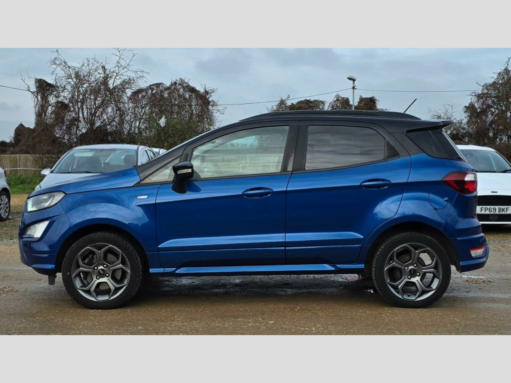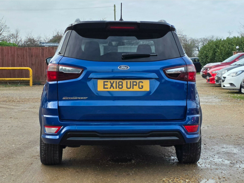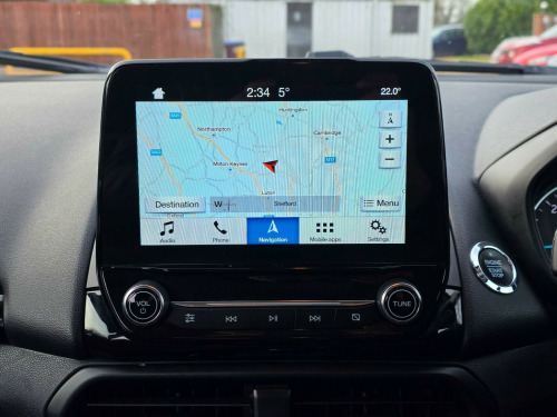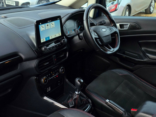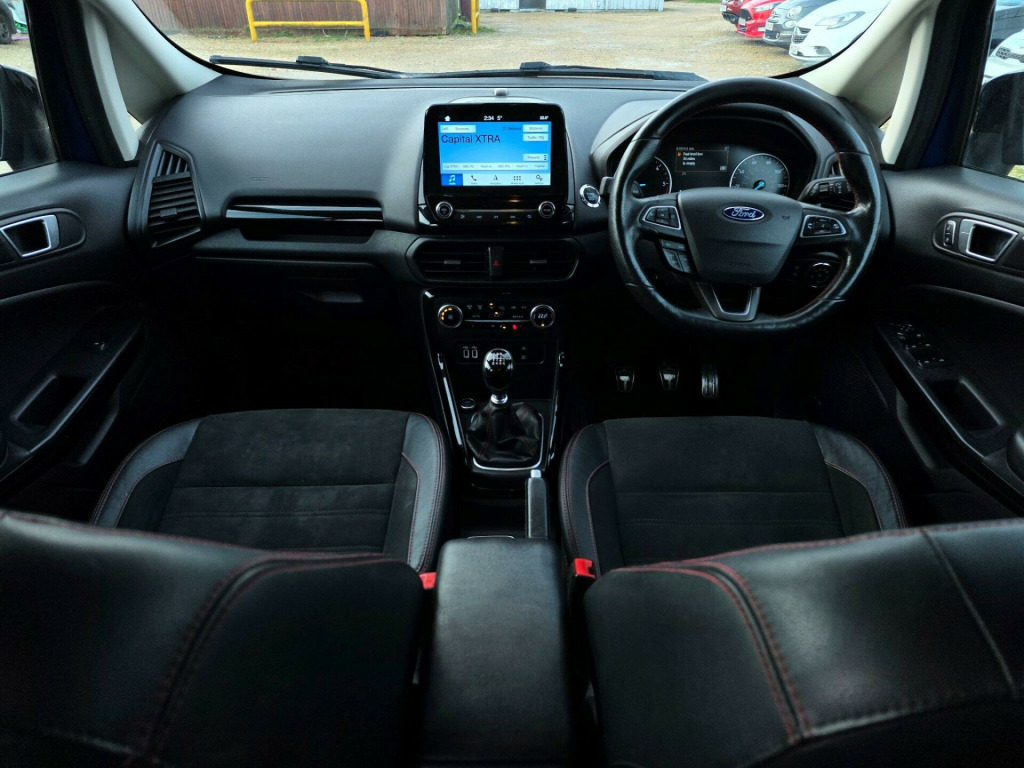 This 2018 Ford EcoSport TDCi ST-Line offers excellent peace of mind with its MOT valid until January 2027 and a full service history, all confirmed by a clear vehicle history check. This stylish ST-Line model is powered by an efficient 1.5L Diesel engine, meeting Euro 6 emissions standards. Inside, you'll find the Comfort Pack, which includes heated seats and a heated steering wheel for those colder journeys, alongside Electronic Automatic Temperature Control for perfect cabin climate.The EcoSport TDCi ST-Line also boasts a Ford DAB Navigation System with Ford SYNC3, offering seamless integration with Android Auto and Apple CarPlay, plus Bluetooth connectivity. For added convenience and safety, it features a rear view camera with rear parking sensors and rear privacy glass. This vehicle stands out with an impressive fuel economy of 69 mpg, a low insurance group, and low CO2 emissions, demonstrating its cost effective and environmentally conscious design compared to other vehicles in its class. in alloy wheels - 5 spoke dark tarnish, adjustable boot load floor, airbags - curtain, airbags - driver and front passenger, airbags - drivers knee, airbags - front passenger de-activation switch, alarm - thatcham category 1 with volume sensing and perimeter, ambient lighting - instrument panel and footwell, analogue instrument cluster, anti-lock braking system - abs with electronic stability control - esc, automatic dimming rear view mirror, automatic headlights, black headlight bezel, black roof rails, centre console cup holder with chrome accent, centre console with sliding armrest, child locks, courtesy light - front with two map lights, courtesy light - rear, cruise control, door frame beltline - black, door handles - body colour, door mirrors - power-foldable heated with integrated side indicator and puddle lights, driver seat manual height- fore/aft and seatback angle adjustment and recliner, driver seat manual rotary knob lumbar support adjustment, driver and passengers sun visor with covered vanity mirror and ticket strip on drivers side, drivers stowage glovebox, epas - electric power assisted steering, electronic automatic temperature control - eatc, emergency assistance, engine immobiliser, ford dab navigation system with ford sync3, ford easy fuel - capless refuelling system, front 2-way head restraints, front fog lights, front seat - passenger manual - fore-aft and recline adjustment, front seats - 3 point seat belts with load limiter and seatbelt height adjust, front seats - seat-back map pockets, front suspension - independent with macpherson struts and anti-roll bar, front and rear bumper - body colour with dark sport insert, front and rear floor mats with red stitching, front and rear folding grab handles, front and rear power points - 12v, full length overhead console with sunglasses holder, gear shift indicator, gearshift knob - leather-trimmed with black insert and aluminium-finish ring and red stitching, glovebox with cool bin - lid and illumination, halogen headlamps with led day running lights, halogen rear lights, handbrake grip - leather-trimmed with red stitching, headlights - courtesy delay, headlights - levelling control, high mounted brake light, ips - intelligent protection system, keyless start with ford power start button, large rear spoiler, load compartment - lights, load compartment carpet, load compartment side trim incorporating shopping hooks, lower body side - door claddings - body colour, manual parking brake, mykey, power front and rear windows with global opening-closing, quickclear heated front windscreen with heated washer jets, rain sensing wipers, rear seat - fold and tumble 60-40 split - split back, rear seats - centre head restraint - up-down, rear seats - retractable rear seat belt - 3-point all positions, rear suspension - semi-independent twist beam with twin gas and oil-filled shock absorbers, rear view camera with rear parking sensors, remote central locking, rocker panel and side cladding - body colour st-line design, st-line bumpers and side skirts, st-line front grille, seat belt reminder system - drivers and front passengers, seats - isofix mounting provision for child seats - outer seats only, side impact door beams, soft instrument panel cover, sports pedals with stainless steel inserts, sports suspension, steering column - rake and reach adjustment, steering wheel - perforated leather-trimmed with chrome inserts and red stitching, storage - front passenger underseat area, suspension - front stabiliser bar, threshold plates - front stainless steel with st logo, tie-down hooks, trip computer, tyre pressure monitoring system, tyre repair kit, wiper - intermittent rear wash-wipe, rear privacy glass, shadow black contrast roof and mirrors, miko dinamica fabric and leather bolster - ebony black with race red stitching, comfort pack