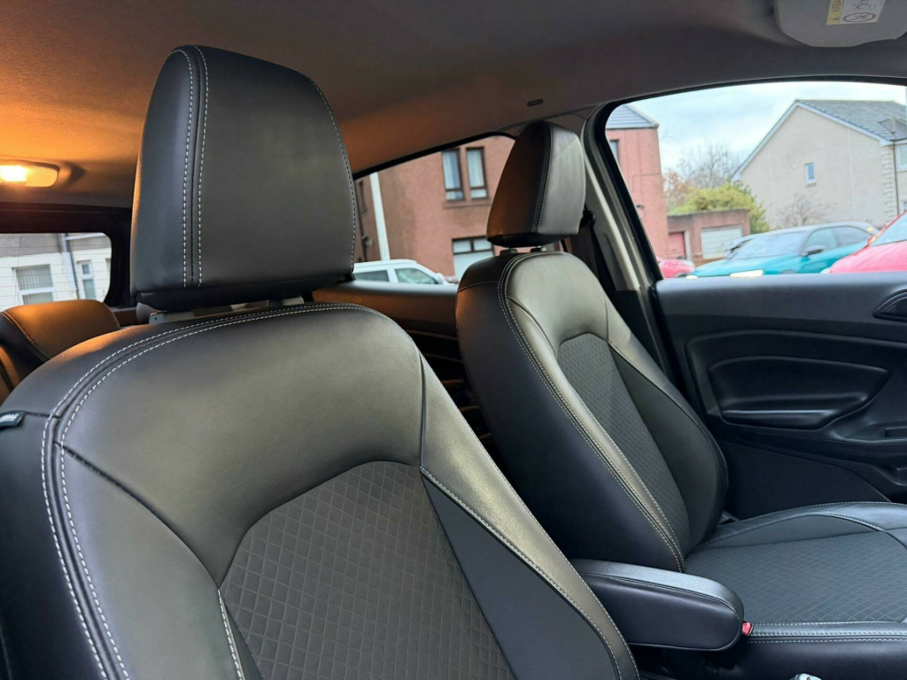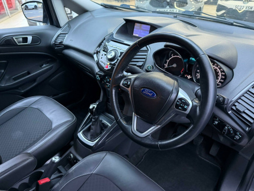 This 2016 Ford EcoSport TDCi Titanium is presented with a clear vehicle history check and will be supplied with a full 12 months MOT for your peace of mind. This stylish SUV features a 1.5L diesel engine and is a Euro 6 compliant model. The Titanium trim level offers a host of desirable features, including the convenient KeyFree System for keyless entry and starting, Electronic Automatic Temperature Control for effortless climate control, and automatic headlights that adjust to lighting conditions.You can expect excellent running costs with this EcoSport, boasting an impressive fuel economy of 64 miles per gallon. Its low CO2 emissions and low insurance group rating further highlight its efficiency and affordability compared to similar vehicles. This makes it a sensible choice for those seeking an economical and practical compact SUV.. 12V Power Socket - Front, 17in Alloy Wheels - 5x2 Spoke, ABS - Anti-lock Braking System, Airbag - Front Passenger, Airbags - Curtain, Airbags - Passenger Deactivation, Airbags - Side Impact, Automatic Dimming Rear View Mirror, Automatic Rain Sensing Wipers, Cruise Control, Door Handle Integrated in Rear Light, Door Mirrors - Electrically Operated, Drivers Airbag, EATC - Electronic Automatic Temperature Control - Climate Control, EBA - Emergency Brake Assist, EBD - Electronic Brakeforce Distribution, ESP - Electronic Stability Programme, Electric Windows - Front and Rear, Floor Mats - Carpet - Front and Rear, Ford Easy-Fuel Capless Refuelling System, Front Fog Lights with Integrated Daytime Running Lights and Chrome Surrounds, Front Grille - Chrome Finish, Front Seatback Map Pockets - Driver and Passenger, Glovebox - Cooled, HLA - Hill Launch Assist, Headlights - Automatic, KeyFree System, LED Signature Lights, Leather Steering Wheel with Remote Audio Controls, Pollen Filter, Power Assisted Steering, Radio CD with USB Connector - Aux Input and Ford SYNC, Rake Adjustable Rear Seat, Rake and Reach Steering Adjustable, Scuff Plates - Silver, Seats - 60-40 Rear Split Back, Seats - Drivers Lumbar Support, Seats - Drivers Manual Height and Tilt Adjustment, Silver Lower-Bumper Lip - Front and Rear, Silver Roof Rails, Stowage Pockets - Front Seatback, Thatcham Category 1 Alarm, Traction Control - TC, Trip Computer, Tyre Pressure Monitoring System, Ford DAB Audio System, Style Pack.