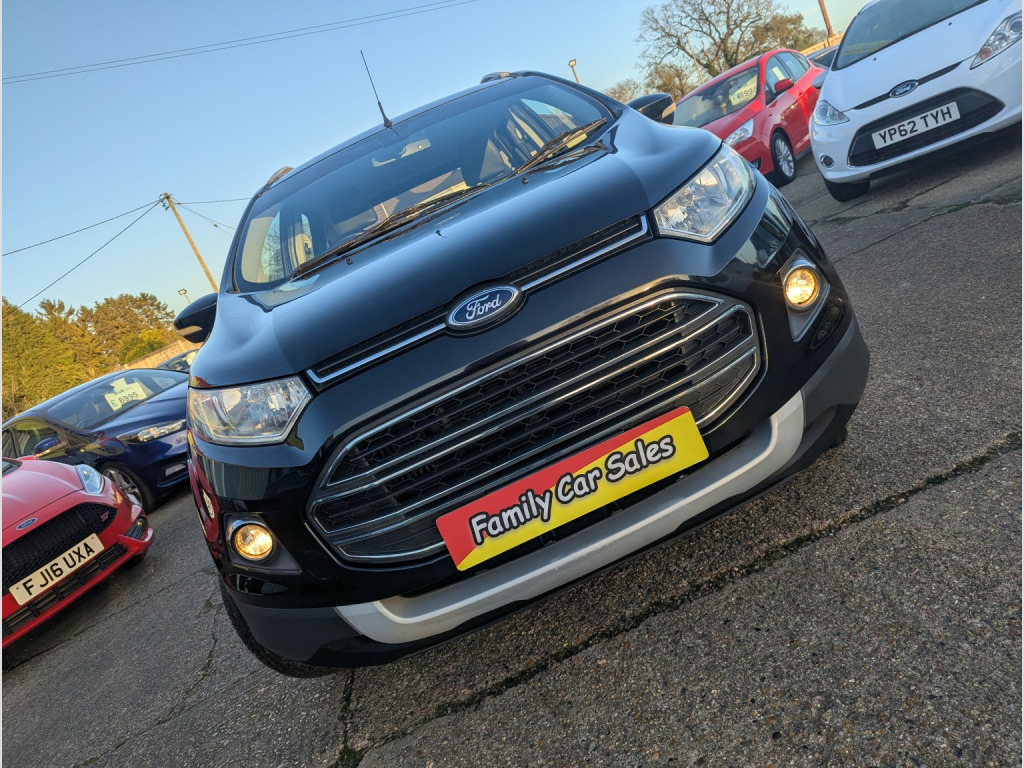 FORD ECOSPORT 1.5 TITANIUM X DIESEL. VERY GOOD CONDITION INSIDE AND OUT, 1 OWNER FROM NEW AND A FULL SERVICE HISTORY. PERFECT SMALLER FAMILY CAR WITH A HIGHER SEATING POSITION. RELIABLE DIESEL ENGINE WITH LOW RUNNING COSTS. WILL BE SOLD WITH A NEW CAMBELT KIT, MAJOR SERVICE AND A FULL MOT. , All of our retail cars come with 12 months MOT and 3 months IN-HOUSE warranty, Our warranty covers all mechanical and electrical failure that makes the car not fit for purpose. We cover everything from a blown bulb to a complete engine!, , When this car is prepared in our workshops, we will make 100% sure it is safe and reliable for you. If tyres / brakes / suspension looks worn out or will cause problems in the future, we will replace whatever is needed!, , Our comprehensive warranty is with Steve, Scott or Paul, in our workshop, any problems you bring it straight back to us!, Free courtesy car for all Warranty customers!, , READ ANY OF OUR Happy Customer REVIEWS, EITHER ON FACEBOOK OR GOOGLE! PEACE OF MIND COMES AS STANDARD. , Were an independent family-run car sales business, with fully-trained technicians preparing all vehicles to a very high standard. Steve, one half of the owners, is a Ford trained mechanic, with over 15 years experience in the motor trade – so youre in safe hands :), , We are located between Hethersett and Wymondham on the main road. (The old a11). , Viewings available Monday to Friday, 8am to 5pm and Saturday 9am to 4pm, please call ahead on 01953 789504 to book your test drive. , We are proud to be able to offer finance, through our reputable third-party finance providers. The team at Cator Family Car Sales are proud to announce that we can usually offer finance for people who may have previously had credit problems. (All finance is subject to status). , Deposits are a part payment and are only refunded if we have not carried out any preparation work. , CREDIT / DEBIT CARDS, MONEY AND BANK TRANSFER ALL ACCEPTED, , TRADE IN / PART EXCHANGE WELCOME , , IF YOU HAVE ANY QUESTIONS AT ALL, DO PLEASE CALL US ON 01953 789504 OR Message us on Facebook