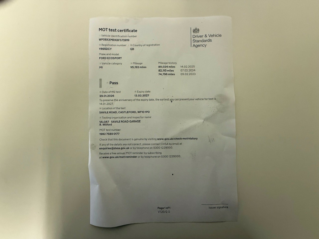 2015 FORD ECOSPORT 1.5 DIESEL 5 DOOR GREY, 12 MONTHS MOT (NO ADVISORIES), OIL & FILTER SERVICE - FULL SERVICE HISTORY, £35 ROAD TAX, EXCELLENT CONDITION THROUGHOUT, 12 MONTHS FREE RAC ROADSIDE COVER, RAC PLATINUM WARRANTY, PROFESSIONALLY VALETED, CLEAR ON EXPERIAN, £100 DEPOSIT SECURES THIS VEHICLE, DRIVEAWAY TODAY! Driveaway Motors is centrally located in the village of Ackworth, West Yorkshire, WF7 7HY, close to Doncaster, Barnsley, Wakefield, Pontefract and Castleford, Excellent reviews, Established 2011, Over 20 vehicles in stock, Finance available with no deposit, Extended warranty available, Part exchange considered, New vehicles arriving daily please visit driveawaymotors.co.uk, If you require any further information then please do not hesitate to contact us, Next MOT due 13/02/2027, Last serviced on 28/01/2026 at 95,193 miles, Full service history, 5 seats, Grey, Any inspection, viewing or test drive welcome, £4,750. , This car comes with:, 12V Power Socket - Front, 17in Alloy Wheels - 5x2 Spoke, ABS - Anti-lock Braking System, Airbags - Passenger Deactivation, Automatic Dimming Rear View Mirror, Automatic Rain Sensing Wipers, Cruise Control, Door Handle Integrated in Rear Light, Door Mirrors - Electrically Operated, Drivers Airbag, EATC - Electronic Automatic Temperature Control - Climate Control, EBA - Emergency Brake Assist, EBD - Electronic Brakeforce Distribution, ESP - Electronic Stability Programme, Electric Windows - Front and Rear, Ford Easy-Fuel Capless Refuelling System, Front Fog Lights with Integrated Daytime Running Lights and Chrome Surrounds, Front Grille - Chrome Finish, Front Seatback Map Pockets - Driver and Passenger, HLA - Hill Launch Assist, Headlights - Automatic, KeyFree System, LED Signature Lights, Leather Steering Wheel with Remote Audio Controls, Pollen Filter, Power Assisted Steering, Radio CD with USB Connector - Aux Input and Ford SYNC, Rake Adjustable Rear Seat, Rake and Reach Steering Adjustable, Scuff Plates - Silver, Seats - 60-40 Rear Split Back, Seats - Drivers Lumbar Support, Seats - Drivers Manual Height and Tilt Adjustment, Silver Lower-Bumper Lip - Front and Rear, Silver Roof Rails, Stowage Pockets - Front Seatback, Thatcham Category 1 Alarm, Traction Control - TC, Trip Computer, Tyre Pressure Monitoring System.