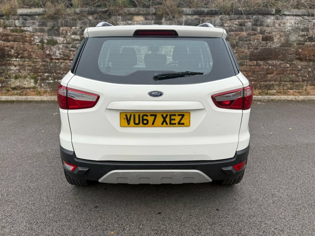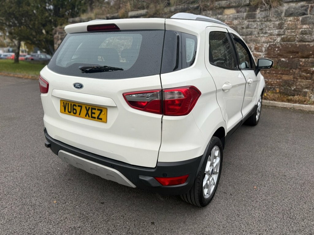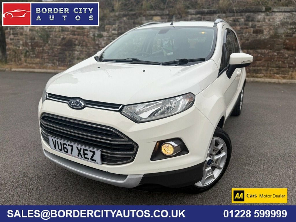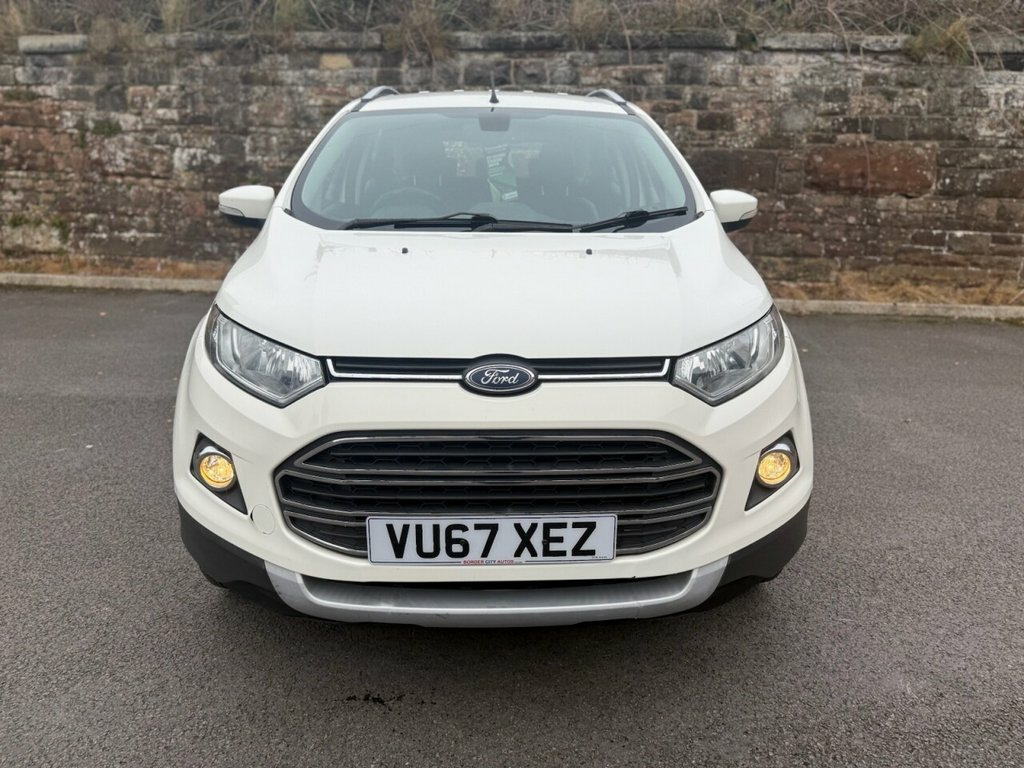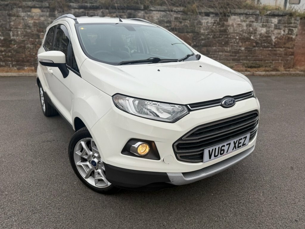 This 2017 Ford EcoSport TDCi Titanium offers an exceptional blend of efficiency and advanced features, making it a smart choice for any driver. Powered by a 1.5L Diesel Engine, this Euro 6 compliant model boasts impressive fuel economy, achieving up to 64 mpg. The Titanium trim level ensures a premium experience, featuring automatic halogen headlights with distinctive LED signature lights for enhanced visibility. Inside, you'll find electronic automatic temperature control for effortless climate management and the convenient Ford Keyfree System, allowing for keyless entry and a push button start. Beyond its impressive specifications, this EcoSport stands out with its low insurance group rating, contributing to lower running costs. Its low CO2 emissions also highlight its environmental consideration. These factors combined indicate that this vehicle offers a more economical and potentially more affordable ownership experience compared to many other vehicles in its class. Diamond White, 17in Alloy Wheels - 5x2 Spoke in Silver , Air Conditioning - Electronic Automatic , Airbags - Driver and Front Passenger, Airbags - Drivers Knee, Airbags - Front Passenger De-Activation , Airbags - Front Side, Airbags - Front and Rear Side Curtain, Anti-Lock Braking System - ABS with Elec, Armrest - Drivers, Auto Dimming Rear View Mirror, Child Locks, Courtesy Lights - Front and Rear Centre , Cruise Control, Door Mirrors - Body Colour Housing, EPAS - Electric Power Assisted Steering, Floor Mats - Carpet - Front and Rear, Ford Easy-Fuel Capless Refuelling System, Ford Keyfree System - Keyless Entry with, Front Bumper - Body Colour with Dark Val, Front Fog Lights with Integrated