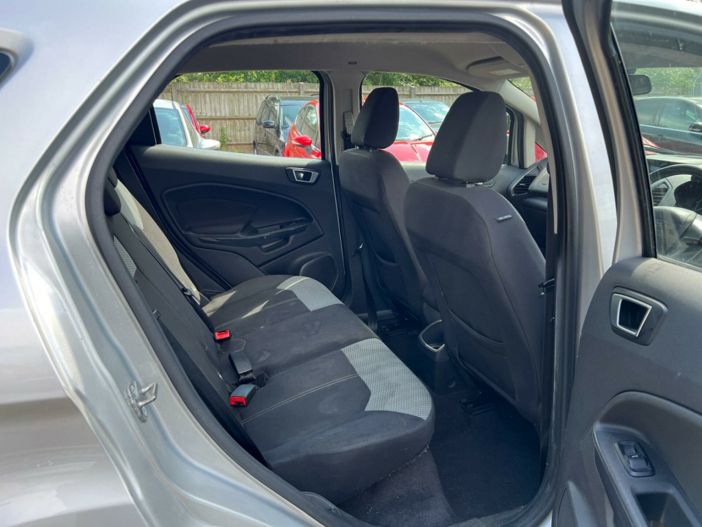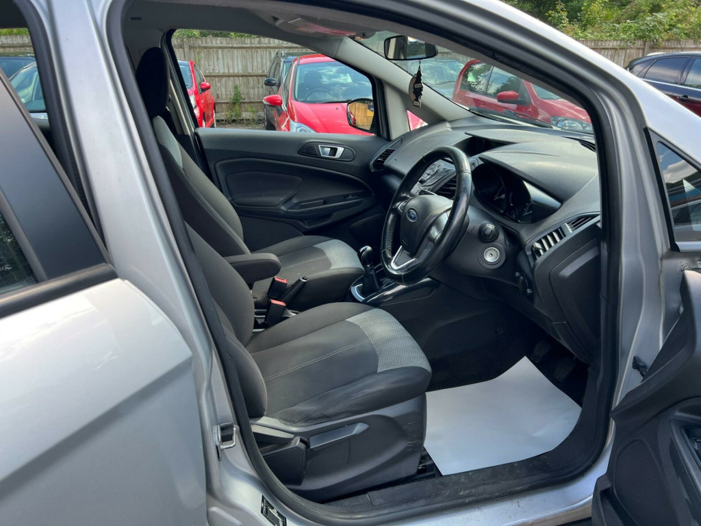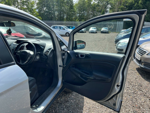 HPI clear smooth engine, smooth drive clean and nice interior. This 2015 Ford EcoSport TDCi Zetec is a practical and economical choice. As a Zetec trim, this Ford EcoSport comes with a 1.5L diesel engine and manual air conditioning.This EcoSport stands out with its impressive fuel economy of 61 mpg, meaning fewer trips to the petrol station and more money in your pocket. It also falls into a low insurance group, offering peace of mind and potentially lower premiums. Furthermore, its low CO2 emissions mean you'll be contributing to a cleaner environment while enjoying all the benefits this Ford EcoSport has to offer. v power socket - front, 16in alloy wheels, abs - anti-lock braking system, aux connection, air conditioning - manual, airbag - front passenger, airbags - curtain, airbags - passenger deactivation, airbags - side impact, armrest - drivers, card holder, cup holder, dds - deflation detection system, daytime running lamps, door handle integrated in rear light, door mirrors - electrically operated and heated, drivers airbag, eba - emergency brake assist, ebd - electronic brakeforce distribution, esp - electronic stability programme, electric windows - front and rear, floor mats - carpet - front and rear, front fog lights, front grille - silver, front skid plates, glovebox - cooled, handbrake cover - leather, pollen filter, power assisted steering, radio cd player mp3 compatible, rake adjustable rear seat, rake and reach steering adjustable, rear skid plates, remote central locking, seats - 60-40 rear split back, seats - drivers lumbar support, seats - drivers manual height and tilt adjustment, slide out drawer under the front seat, spare wheel with cover - alloy, steering wheel - audio controls, steering wheel - leather, stowage pockets - front seatback, sunglasses holder, thatcham category 1 alarm, traction control - tc, trip computer, tyre pressure monitoring system, usb connection