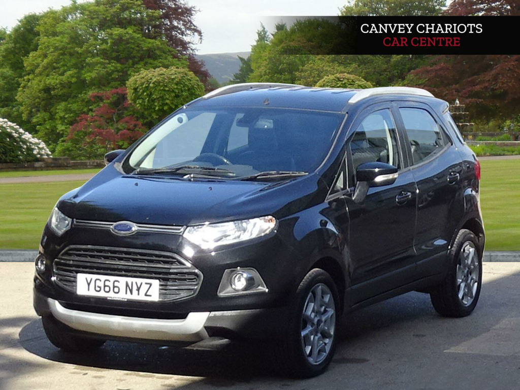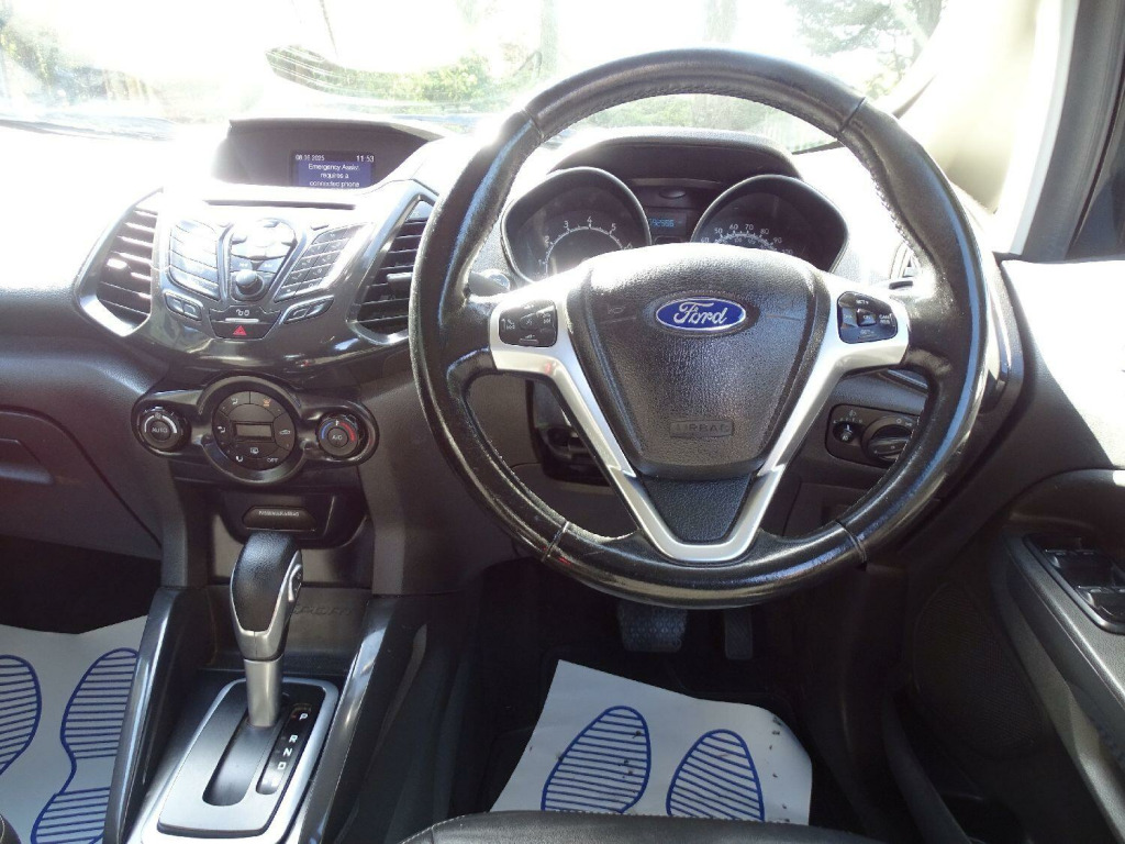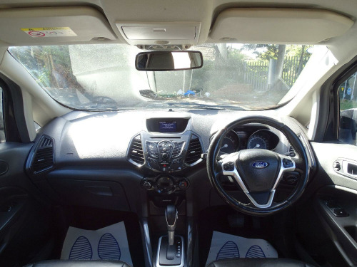 Discover this 2016 Ford EcoSport Titanium, a well presented example of this popular compact SUV. Powered by a responsive 1.5 litre petrol engine, this Titanium trim model offers a comfortable and convenient driving experience. Key features include Electronic Automatic Temperature Control for effortless climate management, automatic headlights that adjust to changing light conditions, and keyless entry for seamless access.The Ford EcoSport Titanium is designed to make your journeys more enjoyable. The inclusion of EATC climate control ensures a pleasant cabin temperature regardless of the weather outside, while the automatic headlights provide added safety and convenience by illuminating the road when needed. Keyless entry further enhances the ease of use, allowing you to unlock and start the vehicle without fumbling for keys. These features collectively highlight the thoughtful design and practical enhancements that set this EcoSport apart.. 12V Power Socket - Front, 17in Alloy Wheels - 5x2 Spoke - Premium, ABS - Anti-lock Braking System, AUX Connection, Airbag - Front Passenger, Airbags - Curtain, Airbags - Passenger Deactivation, Airbags - Side Impact, Armrest - Drivers, Automatic Dimming Rear View Mirror, Automatic Rain Sensing Wipers, Card Holder, Central Locking - Keyless Entry, Chrome Grille - Large, Cruise Control, Cup Holder, DDS - Deflation Detection System, Daytime Running Lamps, Door Handle Integrated in Rear Light, Door Mirrors - Electrically Operated and Heated, Drivers Airbag, EATC - Electronic Automatic Temperature Control - Climate Control, EBA - Emergency Brake Assist, EBD - Electronic Brakeforce Distribution, ESP - Electronic Stability Programme, Electric Windows - Front and Rear, Floor Mats - Carpet - Front and Rear, Ford Power Starter Button, Front Fog Lights, Front Skid Plates, Glovebox - Cooled, Handbrake Cover - Leather, Headlights - Automatic, Pollen Filter, Power Assisted Steering, Radio CD Player MP3 Compatible, Rake Adjustable Rear Seat, Rake and Reach Steering Adjustable, Rear Skid Plates, Scuff Plates - Silver, Seats - 60-40 Rear Split Back, Seats - Drivers Lumbar Support, Seats - Drivers Manual Height and Tilt Adjustment, Silver Roof Rails, Slide Out Drawer Under the Front Seat, Spare Wheel with Cover - Alloy, Steering Wheel - Audio Controls, Steering Wheel - Leather, Stowage Pockets - Front Seatback, Sunglasses Holder, Thatcham Category 1 Alarm, Traction Control - TC, Trip Computer, Tyre Pressure Monitoring System, USB Connection.