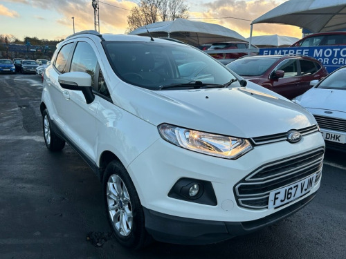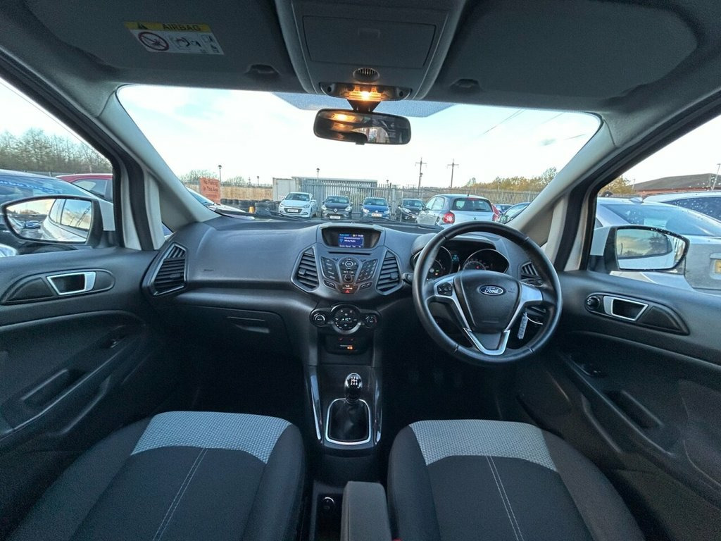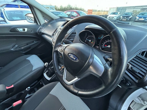 Here we have a lovely Ford Ecosport Zetec - which comes with the full Zetec spec which includes alloy wheels, leather steering wheel, spare wheel on boot with colour matching wheel cover AUX port, Hill start assist, Quickclear heated windscreen, Steering wheel mounted controls, Tinted glass, a Free 3 Month Warranty & a Full 12 Month MOT with NO Advisories. We do a FREE Experian HPI Check on every vehicle. Poor credit finance is also available on this car.javascript:; We have a huge selection of over 250 cars to choose from & are open 7 days a week. WARRANTY Every car comes with a 3 month parts & labour warranty that can be extended upon request. MOT We complete a full 12 month MOT that will be carried out at the point of sale. You don't have to worry about the previous MOT as we will do a fresh one for you & complete any previous or current advisories. HPI All of our cars have a full HPI check. If any of our cars are showing on finance or any mileage discrepancies then just give us a call as usually Experian just forget to update their system which can always be rectified. VOSA All of our cars have an up to date VOSA history check. PART EXCHANGE We can take your old car in as part exchange no matter what the condition. LOCATION We are situated just opposite the entrance to the old Federation Brewery in Dunston, just off the A1 Motorway, just to the rear of the Metrocentre in Gateshead. PHOTOGRAPHY Please visit our website more photos & 16in Alloy Wheels - 6x2 Spoke, Airbags - Driver and Front Passenger, Airbags - Drivers Knee, Airbags - Front and Rear Side Curtain, Airbags - Front Passenger De-Activation , Airbags - Front Side, Anti-Lock Braking System - ABS with Elec, Armrest - Drivers, Child Locks, Courtesy Lights - Front and Rear Centre , Door Mirrors - Body Colour Housing, EPAS - Electric Power Assisted Steering, Floor Mats - Carpet - Front and Rear, Ford Easy-Fuel Capless Refuelling System, Front and Rear Power Points - 12V, Front Bumper - Body Colour with Dark Val, Front Fog Lights with Integrated Daytime, Front Lower Grille - Silver Finish, Front Seat - Drivers Manual Height and F, Front Seat - Drivers Manual Lumbar