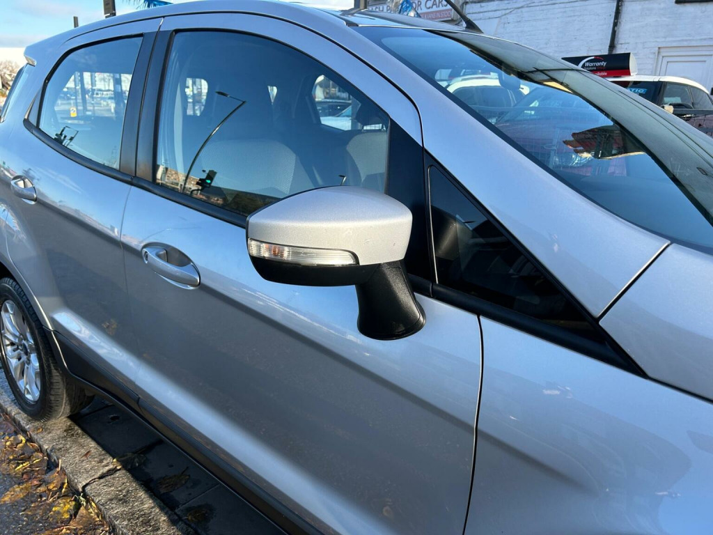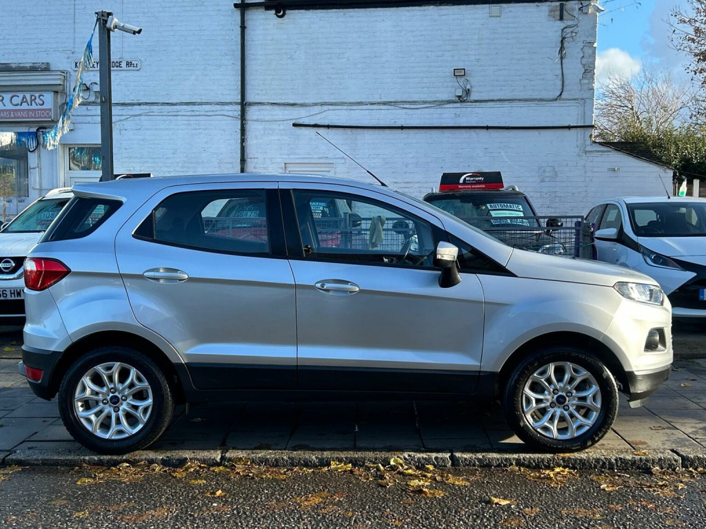6 MONTHS WARRANTY + 12 MONTHS AA BREAKDOWN COVER + 90 AND 180 DAYS FREE CHECK UPS - ALL COME WITH THIS CLEAN FORD ECOSPORT. This 2015 Ford EcoSport offers the perfect balance of practicality, comfort, and economy. A beautiful example, thats been well looked after and well maintained over the years, with very clean bodywork and fresh and tidy interior is the great choice for the family or just cruising the city streets. This vehicle comes with Bluetooth, AUX/USB ports, Climate control, Electric windows, Rear parking sensors and much more. Its comfortable elevated driving position, delivers a composed and comfortable ride and offers excellent visibility, making it a great option for families, commuters, or anyone looking for a compact SUV with a confident presence on the road. MOT 12 Months, HPI Clear, Warranted 30k miles with Service History (9 Services, Last Serviced at 26k miles). P/X welcome, Warranty available, Finance available, Debit/Credit Cards accepted. Please read Terms and Conditions on our website.