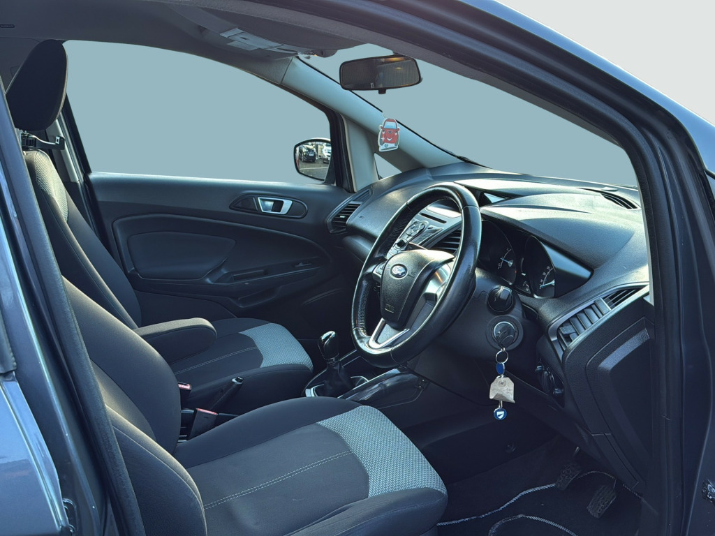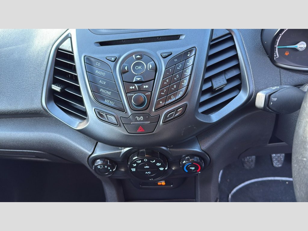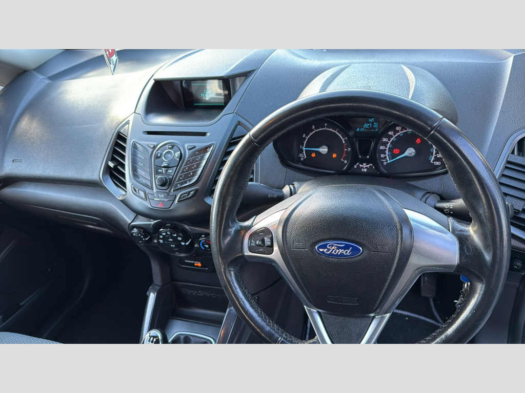 This 2015 Ford Ecosport 1.5 Zetec SUV, with 83,263 miles on the clock, is a reliable and fuel-efficient 5-door vehicle that runs on petrol and is ULEZ compliant. With an MOT that expires on 15/12/2025, this SUV features 5 comfortable seats, making it ideal for families or groups of friends. Equipped with a manual transmission and Euro 5 engine producing 112 ps, this SUV offers a smooth and powerful drive while maintaining a low environmental impact. The 16in Alloy Wheels provide excellent stability and traction, making it suitable for all terrains. The interior includes modern features such as a Radio CD Player, USB and AUX connections, as well as a 12V Power Socket, allowing for a convenient and enjoyable driving experience. Whether for daily commutes or weekend getaways, this Ford Ecosport is a versatile and practical car that combines comfort, safety, and efficiency. v power socket - front, aux connection, radio cd player mp3 compatible, usb connection, 16in alloy wheels, door handle integrated in rear light, door mirrors - electrically operated and heated, electric windows - front and rear, front grille - silver, spare wheel with cover - alloy, abs - anti-lock braking system, airbag - front passenger, airbags - curtain, airbags - passenger deactivation, airbags - side impact, drivers airbag, eba - emergency brake assist, ebd - electronic brakeforce distribution, esp - electronic stability programme, front skid plates, rear skid plates, remote central locking, thatcham category 1 alarm, traction control - tc, air conditioning - manual, armrest - drivers, card holder, cup holder, floor mats - carpet - front and rear, glovebox - cooled, handbrake cover - leather, pollen filter, rake adjustable rear seat, rake and reach steering adjustable, seats - 60-40 rear split back, seats - drivers lumbar support, seats - drivers manual height and tilt adjustment, slide out drawer under the front seat, steering wheel - audio controls, steering wheel - leather, stowage pockets - front seatback, sunglasses holder, dds - deflation detection system, power assisted steering, trip computer, tyre pressure monitoring system, daytime running lamps, front fog lights