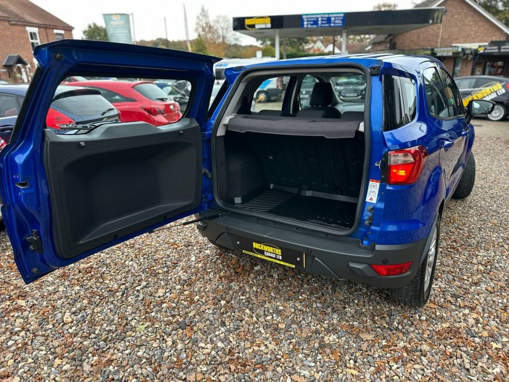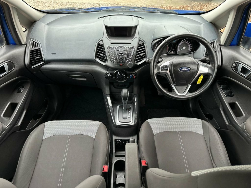 AUTOMATIC - AUTOMATIC YES ITS A AUTOMATIC, Check this stunning Ford Ecosport again Automatic in a real eye catching blue, These are perfect little family cars with its big boot and storage compartments, This car has fantastic miles @ 45000, On purchase we will fully service the car and also replace the Cam-belt so you don't have any worry's or expenses. Unfortunately this is a category N write off which is NON structural damage, In this case it was slight scratch on the passenger front bumper and dented front wing which has been repaired to a high standard, With all our category N cars we welcome any third party inspection and we will provide a picture of the previous damage so don't let this put you off, We will also included 6 Months comprehensive warranty to give you that piece of mind. 12V Power Socket - Front, 16in Alloy Wheels, ABS - Anti-lock Braking System, AUX Connection, Air Conditioning - Manual, Airbag - Front Passenger, Airbags - Curtain, Airbags - Passenger Deactivation, Airbags - Side Impact, Armrest - Drivers, Card Holder, Cup Holder, DDS - Deflation Detection System, Daytime Running Lamps, Door Handle Integrated in Rear Light, Door Mirrors - Electrically Operated and, Drivers Airbag, EBA - Emergency Brake Assist, EBD - Electronic Brakeforce Distribution, ESP - Electronic Stability Programme, Electric Windows - Front and Rear, Floor Mats - Carpet - Front and Rear, Front Fog Lights, Front Grille - Silver, Front Skid Plates, Glovebox - Cooled, Handbrake Cover - L