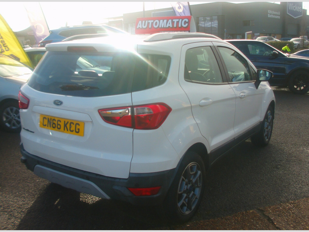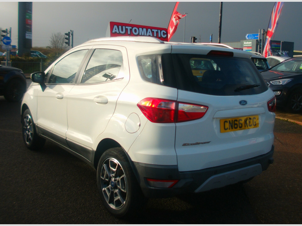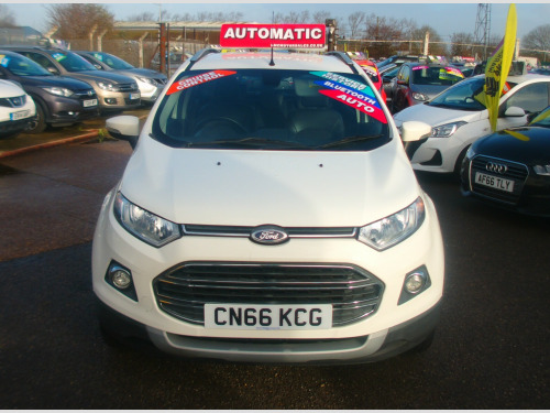 2016 FORD ECOSPORT 1.5 AUTOMATIC TITANIUM POWERSHIFT 5 DOOR, WHITE, 2 PREVIOUS OWNERS, 83.881 MILES, 7 STAMP HISTORY, ULEZ COMPLIANT, HALF LEATHER, AIR CON, CRUISE CONTROL, REAR PARK SENSORS, AUX, USB, BLUETOOTH, E/WINDOWS, E/MIRRORS, C/LOCKS, ABS, MULTI AIR BAGS, ISOFIX, R/W/WIPE, FRONT FOGS, 17'' ALLOY WHEELS, SUSSEX, EAST SUSSEX, EASTBOURNE, BN236PJ, 01323 643326, r conditioning, bluetooth connection, half leather, cruise control, multi-function steering wheel, power steering, rear parking sensor, abs, isofix child seat anchor points, multiple airbags, central locking, electric mirrors, electric windows, auxiliary input socket, cd player, alloy wheels, colour coded body, front fog lights, rear wash/wipe, roof rails, ulez compliant, usb, zero admin charge