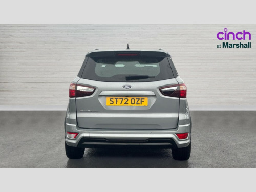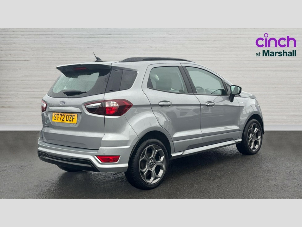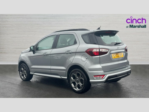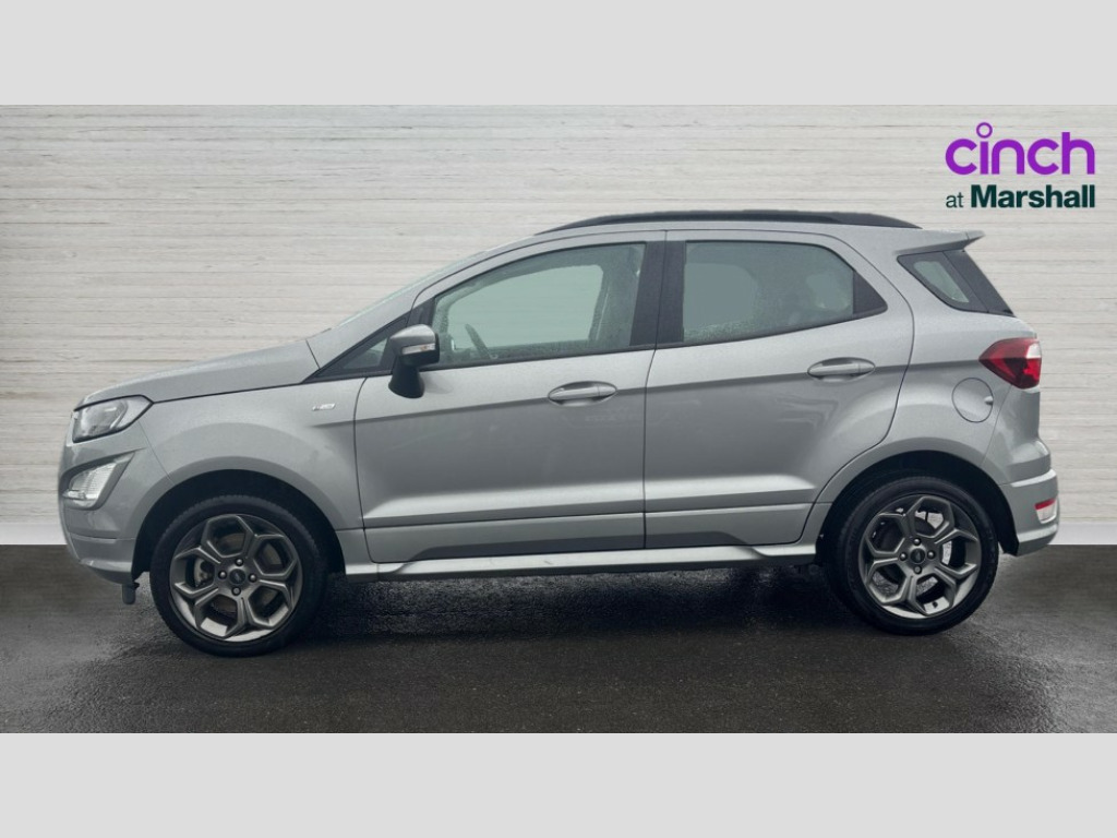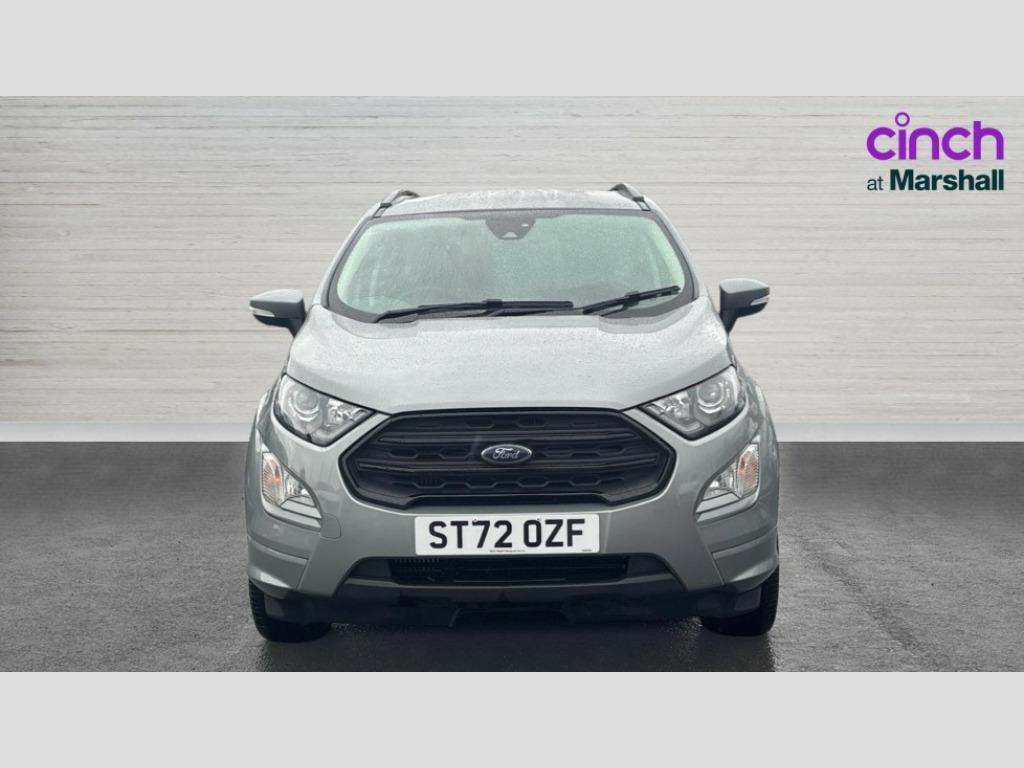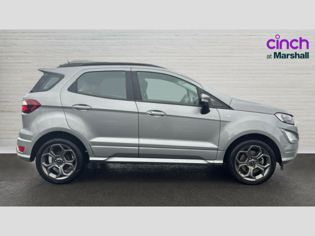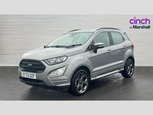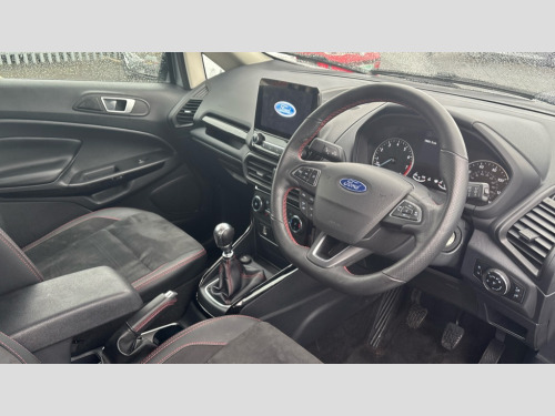 Ford Ecosport 1.0 EcoBoost 125 ST-Line 5dr Cruise control, e-Call (emergency call), Easy fuel capless refuelling system, Ford SYNC 3 nav system with DAB radio,8" screen, emergency assistance,Apple car play/Android auto, 2x USB, 6 speakers, Ford pass connect, Intelligent speed limiter, PAS, Rear parking sensors, Rear view camera, Traffic sign recognition, Trip computer, Sports suspension, Steering wheel mounted audio controls, Auto dimming rear view mirror, Automatic front wipers, Automatic headlights, Black roof rails, Body colour door handles, Body coloured bumpers, Chrome lower window surround, Electrically adjustable and heated door mirrors, Front fog lights, Front grille bars and surround in black, Headlight levelling control, Large rear roof spoiler, LED day running lights, LED third brake light, Power front and rear windows, Puddle lights, Quick-clear heated windscreen, Rear side wing doors, Rear wiper, ST Line body styling kit - Black headlamp bezel, front and rear sport bumpers, body colour lower door claddings, 12V socket in front and rear, 3 seat bench in 2nd row, 60/40 split rear seats, Ambient lighting, Centre console with sliding front armrest, Cooled glovebox, Courtesy lights with map reading light, Driver seat height/lumbar adjust, Driver's side glovebox, Driver/passenger sunvisors and lidded vanity mirrors, EATC - Electronic Auto Temperature control, Folding grab handles, Front head restraints, Front seat back map pockets, Illuminated glovebox, Illuminated luggage compartment, Isofix system on outer rear seats, Luggage compartment carpet, Neosuede/Partial sensico leather upholstery, Overhead console with sunglasses holder, Rake adjustable rear seats, Reach + rake adjustable steering column, Rear headrests, Sensico trimmed steering wheel, handbrake and gearshift gaiter with red stitching, Single front passenger seat, ST-Line Front floor mats with red stitching, Stainless steel sports pedals, Storage drawers under front seats, Tie down hooks, Variable boot floor, 3x3 point rear seatbelts, ABS, Autonomous emergency braking, Child locks on rear doors, Curtain airbags, Driver airbag, Drivers knee airbag, Electronic Stability Programme with hill launch assist, Front passenger airbag deactivation, Front side airbags, Passenger airbag, Pre collision assist system with AEB, Seatbelt reminder for driver and front passenger, Traction control, Tyre pressure monitoring system, Immobiliser, MyKey system, Remote central locking, Thatcham 1 volume sensing alarm, Low rolling resistance tyres, Tyre inflation kit
