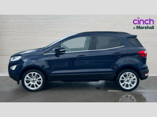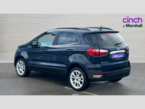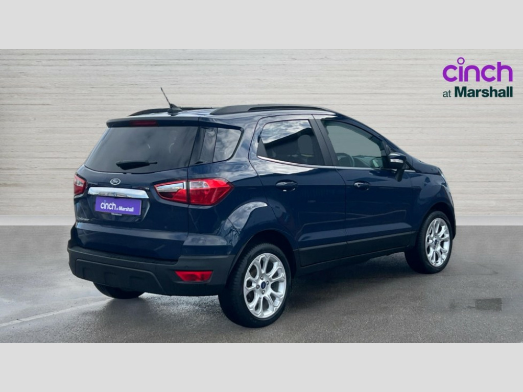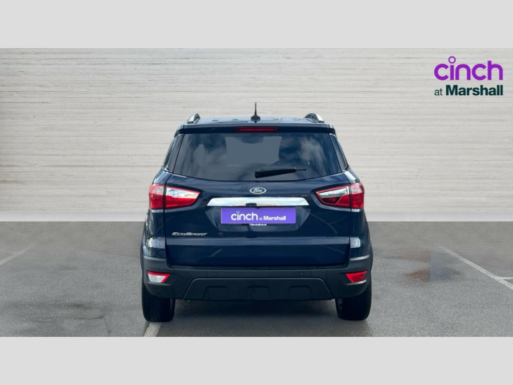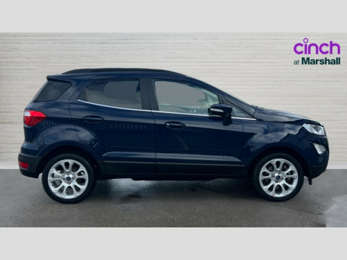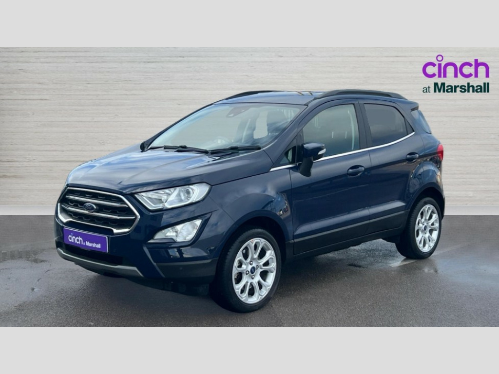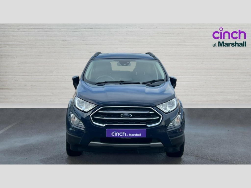 Ford Ecosport 1.0 EcoBoost 125 Titanium 5dr Cruise control, e-Call (emergency call), Easy fuel capless refuelling system, Ford SYNC 3 nav system with DAB radio,8" screen, emergency assistance,Apple car play/Android auto, 2x USB, 6 speakers, Ford pass connect, Intelligent speed limiter, PAS, Rear parking sensors, Rear view camera, Traffic sign recognition, Trip computer, Auto dimming rear view mirror, Automatic front wipers, Automatic headlights, Black roof rails, Body colour door handles, Body colour roof, Body coloured bumpers, Body coloured door mirrors, Chrome front grille, Chrome lower window surround, Electrically adjustable and heated door mirrors, Front fog lights, Headlight levelling control, LED day running lights, LED third brake light, Power front and rear windows, Puddle lights, Quick-clear heated windscreen, Rear side wing doors, Rear wiper, 12V socket in front and rear, 3 seat bench in 2nd row, 60/40 split rear seats, Ambient lighting, Centre console with sliding front armrest, Cooled glovebox, Courtesy lights with map reading light, Driver seat height/lumbar adjust, Driver's side glovebox, Driver/passenger sunvisors and lidded vanity mirrors, EATC - Electronic Auto Temperature control, Folding grab handles, Front floor mats, Front head restraints, Front seat back map pockets, Groove cloth/partial sensico upholstery, Illuminated glovebox, Illuminated luggage compartment, Isofix system on outer rear seats, Leather trimmed steering wheel with remote audio control, Luggage compartment carpet, Overhead console with sunglasses holder, Rake adjustable rear seats, Reach + rake adjustable steering column, Rear headrests, Sensico gear shift gaiter, Sensico handbrake, Single front passenger seat, Storage drawers under front seats, Tie down hooks, Variable boot floor, 3x3 point rear seatbelts, ABS, Autonomous emergency braking, Child locks on rear doors, Curtain airbags, Driver airbag, Drivers knee airbag, Electronic Stability Programme with hill launch assist, Front passenger airbag deactivation, Front side airbags, Passenger airbag, Pre collision assist system with AEB, Seatbelt reminder for driver and front passenger, Traction control, Tyre pressure monitoring system, Immobiliser, MyKey system, Remote central locking, Thatcham 1 volume sensing alarm, 17" shadow silver finished alloy wheels, Low rolling resistance tyres, Tyre inflation kit