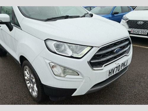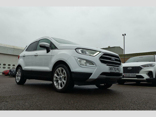 This 2020 Ford EcoSport T Titanium boasts exceptionally low mileage for its age, having covered just 21,843 miles, and benefits from a recent service in September 2025 at 20,119 miles, with its MOT valid until September 2026. This Euro 6 compliant 1.0L petrol model comes with a 3 month warranty for your peace of mind. Inside, you'll find a wealth of technology including Ford SYNC 3 Navigation with an 8 inch touchscreen, compatible with Android Auto and Apple CarPlay, alongside automatic headlights and electronic automatic temperature control for effortless driving comfort.