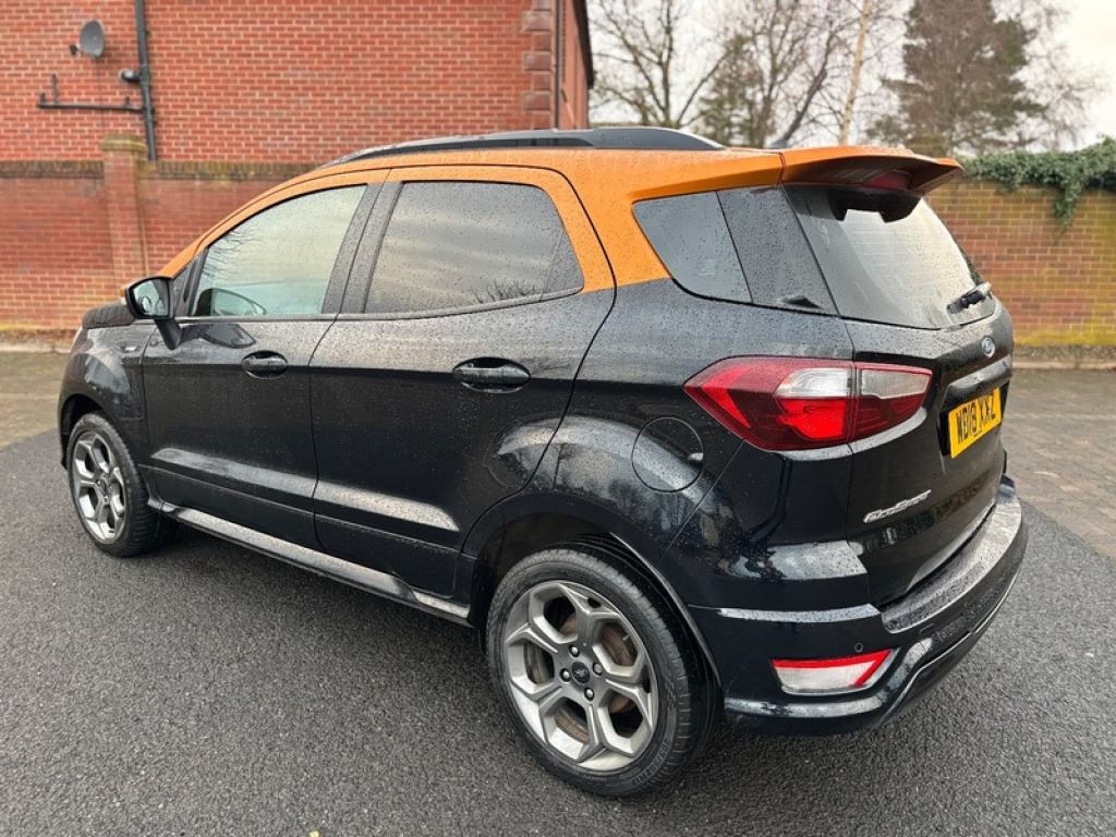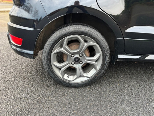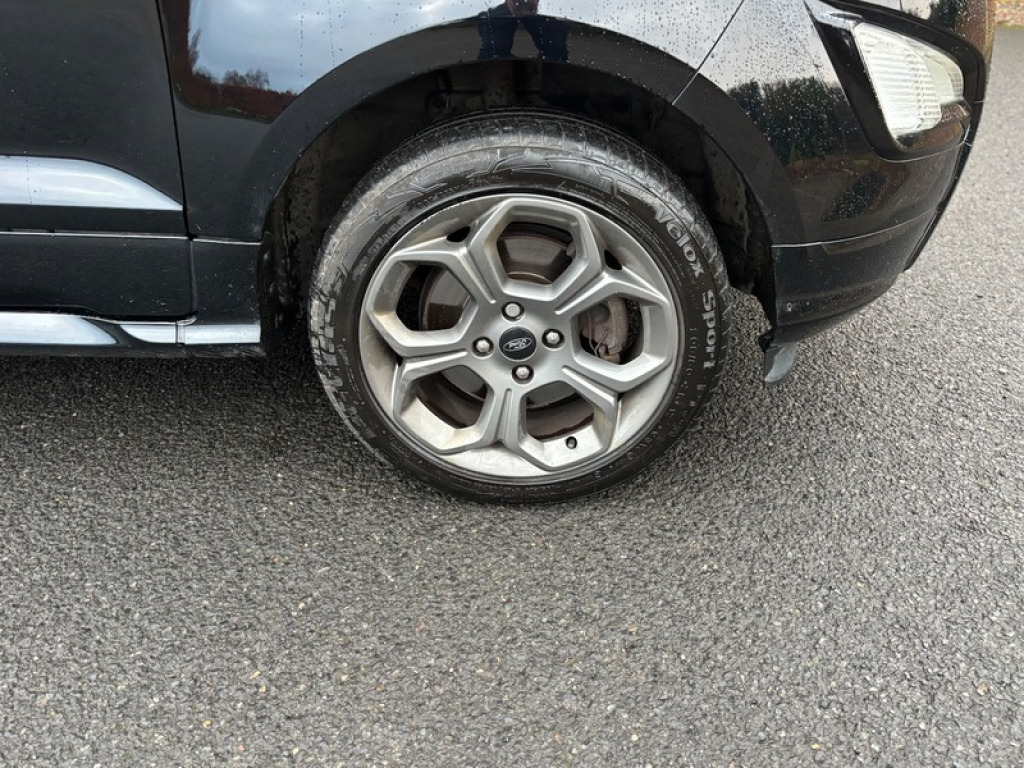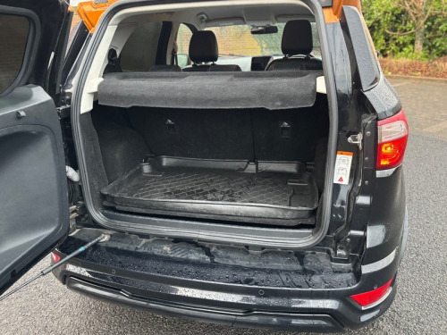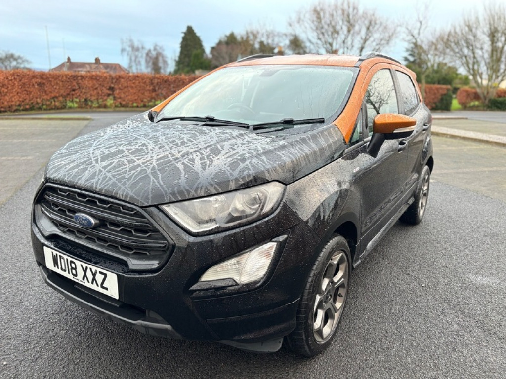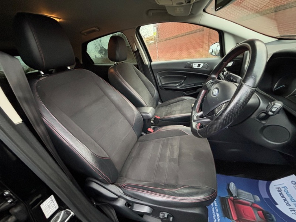 This is a stunner. What an eye catching automobile we have on display here. Not just smart looks, mechanically tip top aswell, engine recall done at Ford last year, she comes to you with a 12 month MOT and a 12 month warranty. So, Panther black with a unique bronze contrasting swathe across the top half, very tidy 17 inch graphite alloys, inside she has half leather heated upholstery, integrated big screen media player with sat nav, climate control,and heated front screen, usb and aux, Bluetooth with connectivity for media on your phone. Privacy glass, a super smooth 6 speed manual gearbox, this car really drives superb, We supply with a fresh 12 month MOT and 12 months comprehensive warranty. The Ecosport is a car that sits a bit higher up, like a mini MPV or people carrier, easier to get in and out yet not too big and cumbersome that you cant get parked anywhere, just a good useful size. Yes we take part exchange and yes we arrange finance. This Ford is £190 annual tax and ULEZ 6. A real eye catching car, and a perfect drive. Also with the confidence of a full service record and recall done at Ford so the engine is literally brand new in this one. 17in Alloy Wheels, ABS, Adjustable Steering, Air Conditioning, Alarm, Alloy Wheels, Automatic Rearview Mirror Dimming, Bluetooth, Body Coloured Bumpers, Catalytic Converter, Central Locking, Cruise Control, Cup Holders, Day/night Rearview Mirror, Daytime Running Lights, ESP, Electric Mirrors, Electric Windows, Engine Immobiliser, Folding Rear Seats, Front Airbags, Front Fog Lights, Full Service History, Heated Door Mirrors, Heated Rear Windshield, Heated Windscreen, Hill-Start Assist, ISOFix Anchor Point, LED Lights, MOT, Metallic Paint, Parking Sensors, Power Assisted Steering, Privacy/Tinted Glass, Radio, Rain Sensor, Reading Lights, Rear Air Vents, Safety Belts, Safety Belts Rear, Satellite Navigation, Service History, Speakers, Sports Suspension, Start Stop System, Steering Wheel Controls, Traction Control, V5 Registration Document