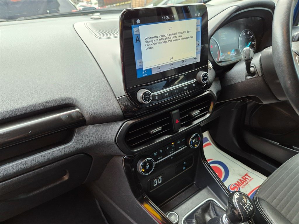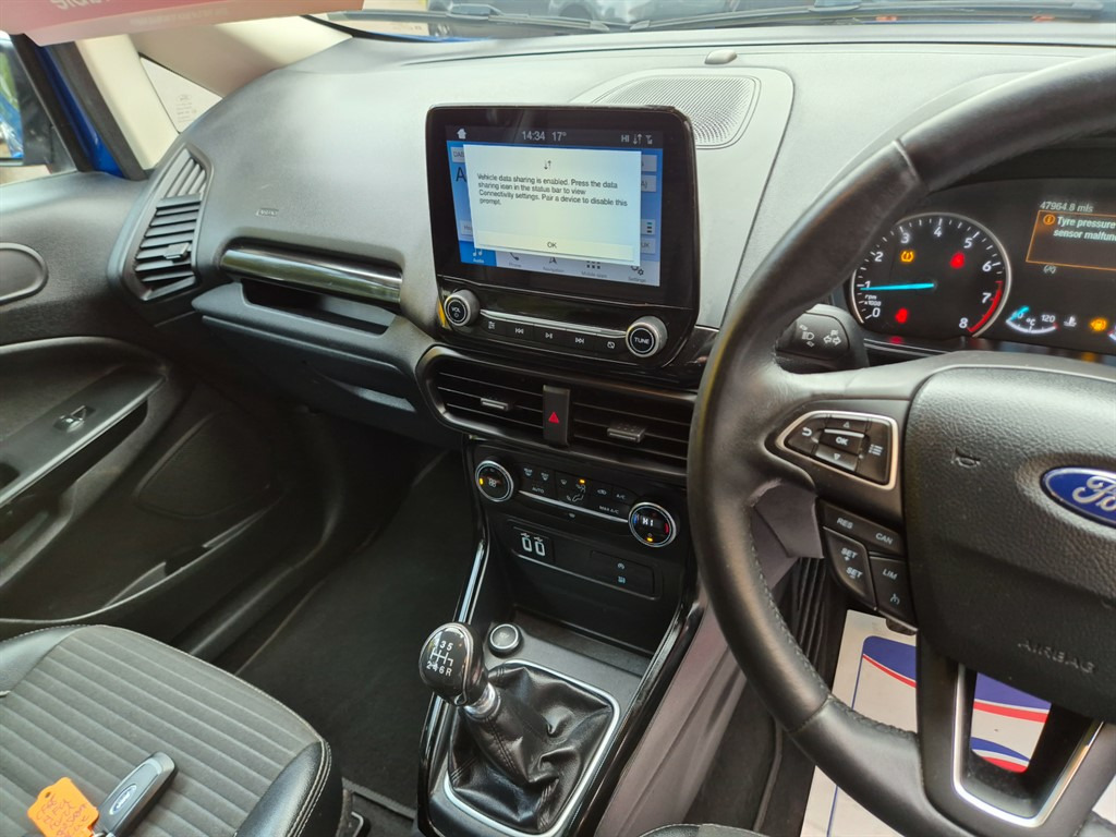 This 2019 Ford EcoSport TITANIUM Hatchback is currently available for £8,495 with Petrol engine and Manual gearbox. For more information or to arrange a viewing, click here to send us an email using form below.