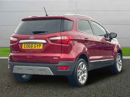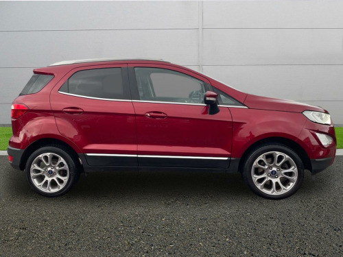 Driver Convenience,Cruise Control,Gear Shift Indicator,Rear View Camera with Rear Parking Sensors,Trip Computer,Tyre Pressure Monitoring SystemEntertainment,Emergency Assistance,Ford Navigation System with Ford SYNC 3 - Apple CarPlay and Android Auto,Front and Rear Power Points - 12VExterior,17in Alloy Wheels - 10 Spoke Flash Grey Machined,Chrome Headlight Bezel,Door Handles - Body Colour,Door Mirrors - Body Colour Housing,Door Mirrors - Power-Foldable Heated with Integrated Side Indicator and Puddle Lights,Front and Rear Bumper - Body Colour with Dark Insert,Front Fog Lights and Turn Indication Light Bezel - Body Colour,Front Grille - Chrome,Lower Body Side - Door Claddings - Black with Chrome Insert,Power Front and Rear Windows with Global Opening-Closing,Quickclear Heated Front Windscreen with Heated Washer Jets,Rocker Panel and Side Cladding - Black,Silver Roof Rails,Tailgate Handle - Chrome,Tyre Repair KitInterior,Adjustable Boot Load Floor,Air Conditioning - Electronic Automatic Temperature Control - EATC,Ambient Lighting - Instrument Panel and Footwell,Analogue Instrument Cluster,Auto-Dimming Electrochromic Rear-View Mirror,Centre Console Cup Holder with Chrome Accent,Centre Console with Covered Bin and Sliding Armrest,Courtesy Light - Front with Two Map Lights,Courtesy Light - Rear,Door Frame Beltline - Chrome,Driver and Passengers Sun Visor with Covered Vanity Mirror and Ticket Strip on Drivers Side,Driver Seat Manual Height- Fore/Aft and Seatback Angle Adjustment and Recliner,Driver Seat Manual Rotary Knob Lumbar Support Adjustment,Drivers Stowage Glovebox,Front and Rear Floor Mats,Front and Rear Folding Grab Handles,Front Seat - Passenger Manual - Fore-Aft and Recline Adjustment,Front Seat - Under Passenger Seat Stowage,Front Seats - 2-Way Head Restraint Up-Down,Front Seats - Seat-Back Map Pockets,Full Length Overhead Console with Sunglasses Holder,Gearshift Knob - Black Insert and Chrome-Finish Ring,Glovebox with Cool Bin - Lid and Illumination,Handbrake Grip - Leather-Trimmed,Height Lumbar Adjustment on Drivers Seat,Keyless Start with Ford Power Start Button,Leather Handbrake and Gearknob,Load Compartment - Lights,Load Compartment Carpet,Load Compartment Side Trim Incorporating Shopping Hooks,MyKey,Rake Adjustable Rear Seat,Rear Seat - Fold and Tumble 60-40 Split - Split Back,Rear Seats - 2-Way Head Restraint Up-Down,Rear Seats - Centre Head Restraint - Up-Down,Soft Instrument Panel Cover,Steering Column - Rake and Reach Adjustment,Steering Wheel - Leather-Trimmed with Chrome Inserts,Threshold Plates - Front - Stainless Steel with EcoSport Logo,Tie-Down Hooks,Wipers - Front - Automatic with Rain SensorEntertainment,Emergency Assistance,Ford Navigation System with Ford SYNC 3 - Apple CarPlay and Android Auto,Front and Rear Power Points - 12V