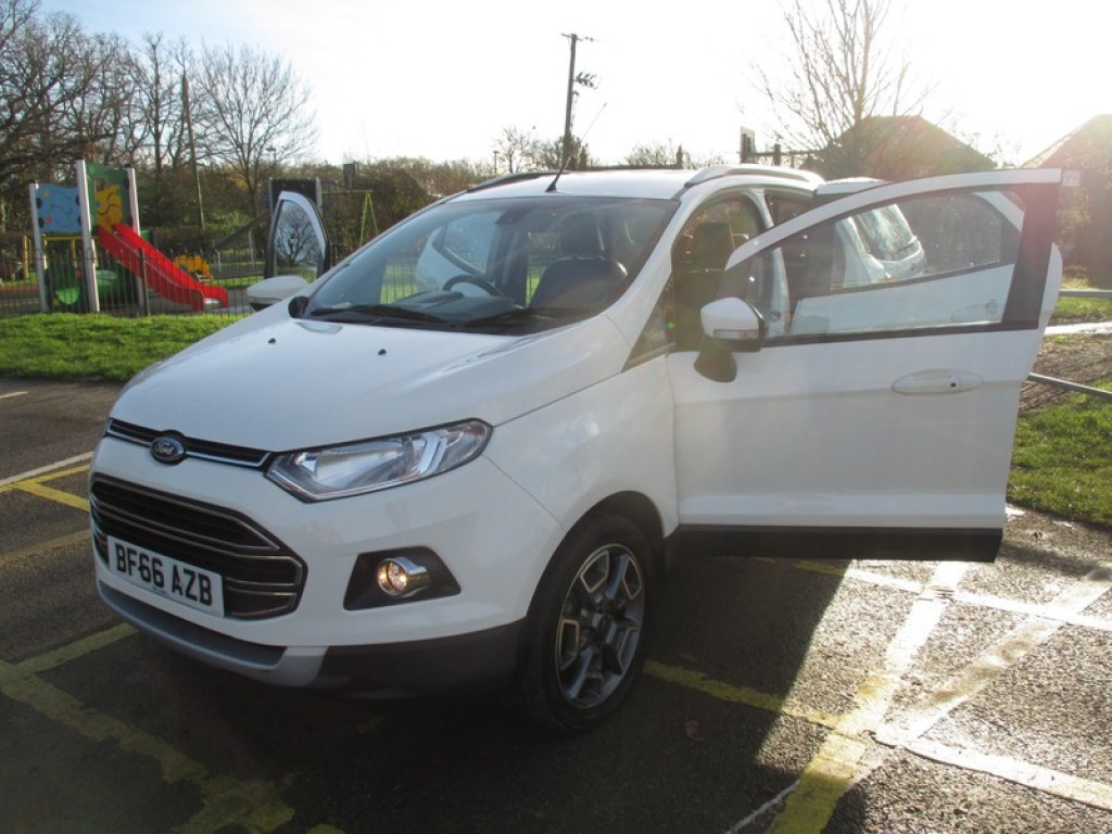 *** FINANCE AVAILABLE ***FREE FINANCE CHECKER WITHOUT IMPACTING YOUR CREDIT SCORE AVAILABLE ON OUR WEBSITE AT www.inspirecarsalessouthampton.co.uk***This 2016 Ford EcoSport TDCi Titanium presents a remarkable opportunity with its exceptionally low mileage of just 54,969 miles for its age. This well maintained example boasts a 1.5 litre diesel engine and is presented in the desirable Titanium trim. It features a KeyFree System for effortless entry and starting, alongside EATC Electronic Automatic Temperature Control for perfect cabin comfort. The headlights automatically adjust to light conditions, ensuring optimal visibility at all times. This Euro 6 compliant EcoSport offers impressive running costs, highlighted by an outstanding fuel economy of 64 miles per gallon. Its low CO2 emissions and placement in a low insurance group further indicate that this vehicle is a more economical choice compared to many others in its class. These factors combine to make this Ford EcoSport TDCi Titanium a sensible and cost effective option for everyday driving. 16in Alloy Wheels, ABS, Adjustable Steering, Air Conditioning, Alarm, Alloy Wheels, Bluetooth, Body Coloured Bumpers, CD Player, Central Locking, Climate Control, Cruise Control, ESP, Electric Mirrors, Electric Windows, Engine Immobiliser, Folding Rear Seats, Front Airbags, Front Fog Lights, Full Service History, Parking Sensors, Power Assisted Steering, Radio, Traction Control