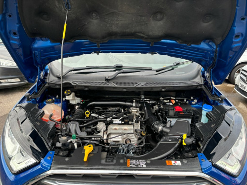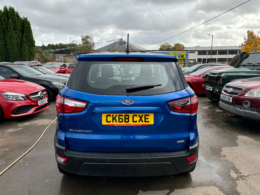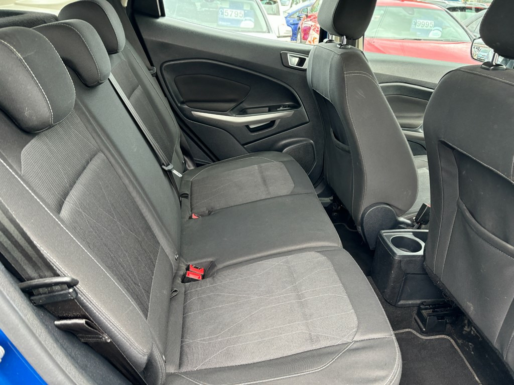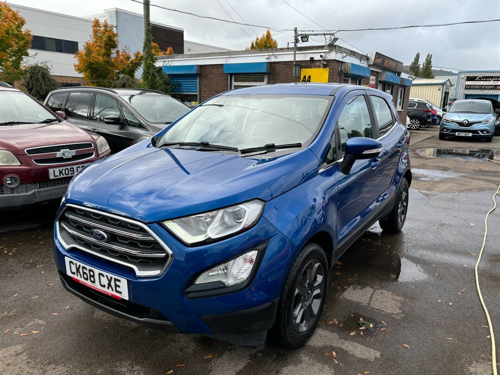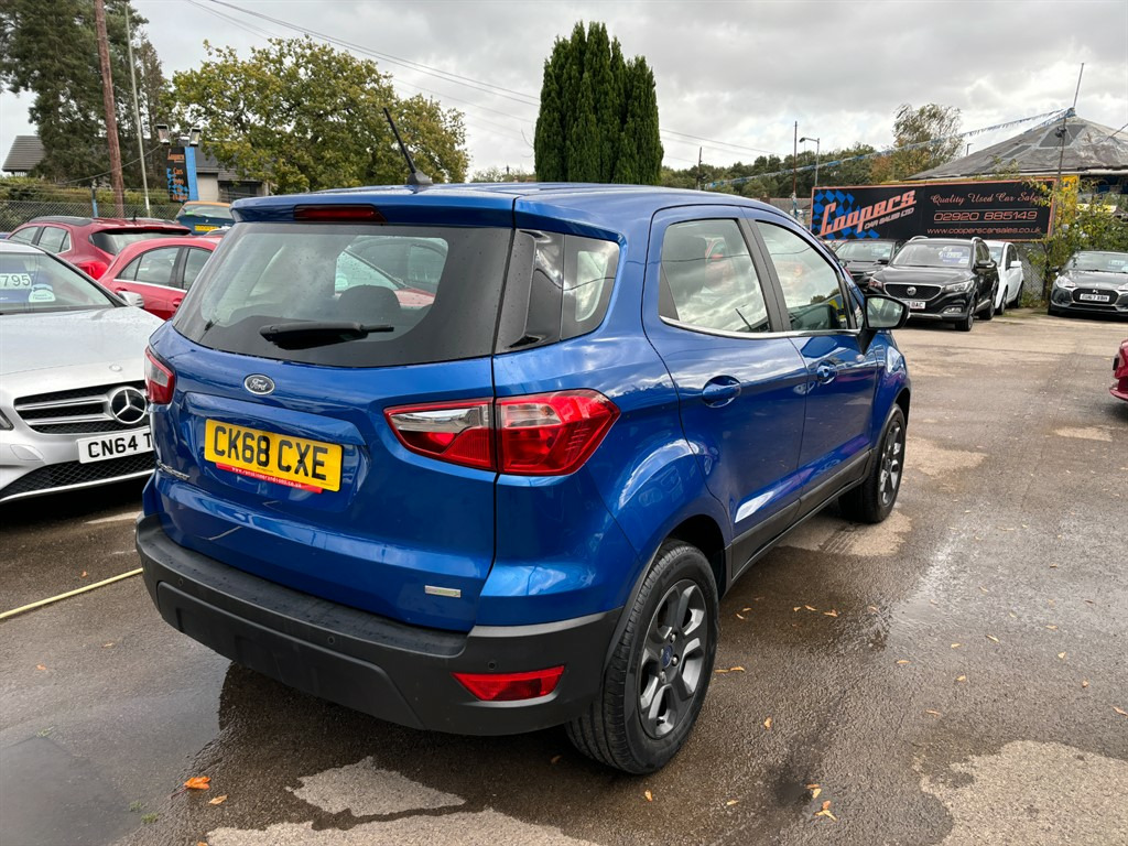Ford EcoSport 1.0 Zetec in blue. A fantastic low mileage example here just 34k miles from brand new. As you can imagine it's in stunning condition and drives as good as it looks too.    This 2018 model combines efficient performance with a range of premium features designed to enhance your driving experience.  Great spec too including Apple Car Play/Android Auto, Bluetooth Hands Free, Bluetooth Audio Streaming, Sat-Nav, USB, Heated Windscreen, Parking Sensors, A/C, Alloy Wheels etc.   With just 34,000 miles on the clock and a host of premium features, the Ford EcoSport is the perfect blend of style, functionality, and technology. Don't miss out on this fantastic opportunity. Contact Coopers Car Sales at 02920885149 today to arrange a test drive and experience this remarkable vehicle for yourself! 12v Socket,Adjustable Steering Wheel,Air Conditioning,Alarm,Alloy Wheels,Anti Lock Brakes,Apple Car Play,Aux Input,Bluetooth Audio Streaming,Bluetooth Telephone Hands Free,CD Radio,Central Locking,Android Auto,Cloth Upholstery,Cupholders,DAB Radio,Driver Airbag,Electric & Heated Door Mirrors,Electric Windows,Front Fog Lights,Fuel Computer,Heated Front Windscreen,Height Adjustable Drivers Seat,Immobiliser,ISOFIX,Multiple Airbags,Passenger Airbag,Power Assisted Steering,Rear Parking Sensor,Remote Central Locking,Satellite Navigation,Split Folding Rear Seats,Traction Control,Trip Computer,Tyre Pressure Monitor,USB