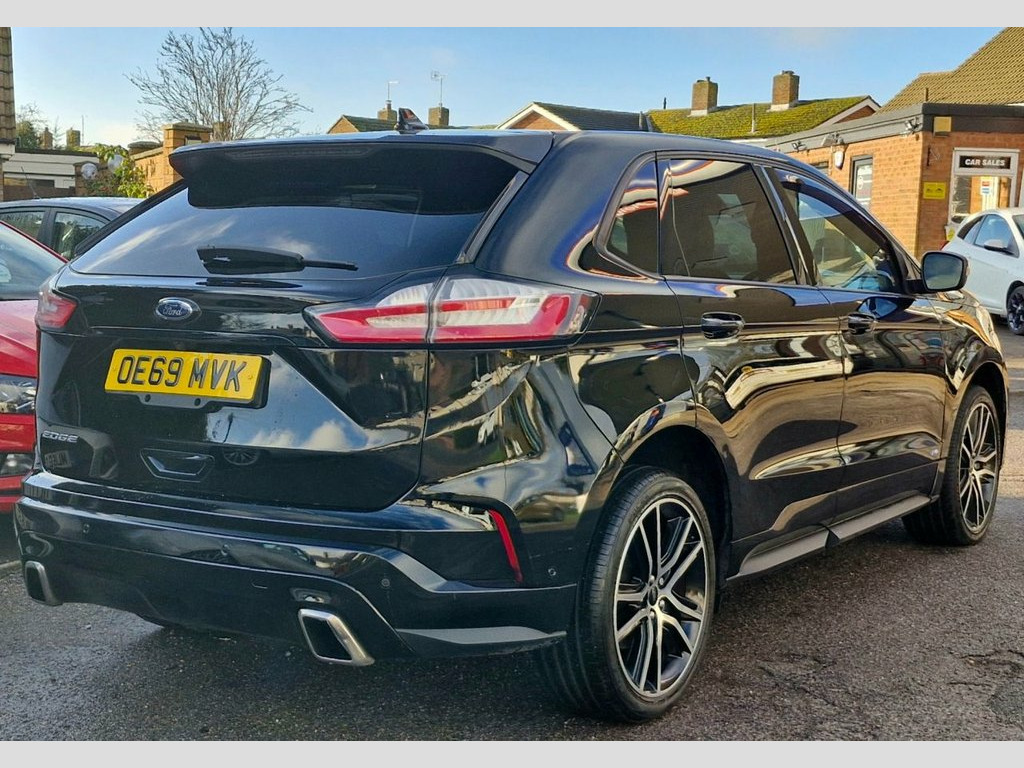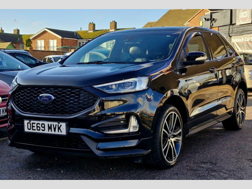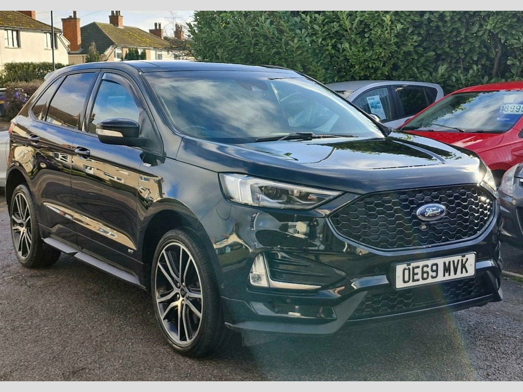 Lovely 2019 69 Ford Edge 2.0 EcoBlue ST-Line AWD in Shadow Black - Specification includes: Privacy Glass, LED Adaptive Headlights, Keyless Entry and Start, Front and Rear Parking Sensors, Front and Rear Parking Camera, Park Assist, Electric Opening Panoramic Sunroof, Interior Ambient Lighting, Electrically Adjustable Front Seats and Driver Memory, Heated Front and Outer Rear Seats, Heated Steering Wheel, Ford Sync 3 Infotainment System with Bluetooth DAB Radio, USB Input, Apple Car Play and Android Auto, B&O Surround Sound System, Half Leather Interior, Digital Instrument Cluster, 20in Alloy Wheels, Electrically Opening Tailgate, Full Service History, 2 Keys Supplied - CAMBELT REPLACED - EXCELLENT CONDITION MOT DECEMBER 2026 - Panorama Roof, Shadow Black, 12.3in Digital Cluster, 18in Alloy Wheels - Steel Mini, 20in Alloy Wheels - ST-Line, 220 V Power Outlet in Centre Console, Acoustic Side Glass, Active City Stop with Pedestrian Detecti, Active Noise Control, Airbags - Driver and Front Passenger, Airbags - Drivers Knee Bolster, Airbags - Front Side Impact, Airbags - Front and Rear Side Curtain, Airbags - Passenger Airbag Deactivation , Alloy Pedals, Ambient Lighting, Anti-Lock Braking System - ABS with Elec, Auto Dimming Rear View Mirror, Automatic Headlights with Auto High-Low , B&O Sound System, Bi-LED Headlights, Black Finish on Lower Door Line, Black Finish on Upper Door Line, Black Roof Rails, Bodyside Cl