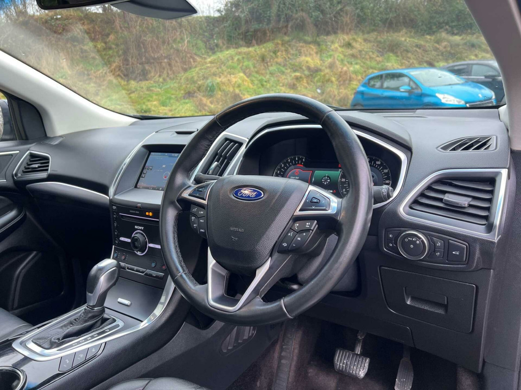 Introducing the Ford Edge 2.0 Edge Titanium TDCi Auto 4WD 5dr – where sophistication meets performance. With just 59,888 miles on the clock and having been lovingly cared for by only two previous owners, this stunning vehicle is ready to embark on its next adventure with you.Dressed in a striking Blue finish, the Ford Edge exudes a sense of elegance and style that is sure to turn heads wherever you go. The Blue Jeans hue perfectly complements the sleek lines of this SUV, making it a standout choice for those who appreciate both form and function.Step inside to discover a world of comfort and luxury with the Ebony cloth interior, designed to provide a plush and inviting atmosphere for both driver and passengers. The spacious cabin ensures that every journey is a pleasure, whether you're navigating city streets or exploring the great British countryside.Equipped with advanced 4WD capabilities, the Ford Edge is built to handle any terrain with ease, offering you the confidence to tackle all of life's adventures. The Titanium TDCi engine delivers a perfect blend of power and efficiency, ensuring a smooth and responsive drive every time you get behind the wheel.Don't miss the opportunity to own this exceptional Ford Edge, a vehicle that combines practicality with premium features. Experience the ultimate in driving pleasure and make this remarkable SUV yours today. Visit us for a test drive and see why the Ford Edge is the perfect choice for discerning drivers.. Tyre Pressure Monitoring System, Thatcham Category 1 Alarm, TSR - Traffic Sign Recognition, Spare Wheel - Steel, Scuff Plates - Illuminated, SYNC 3 with Bluetooth and Voice Control - 8in Colour Touchscreen and Emergency Assistance, Rear View Camera, Rear Spoiler - Body Colour, Ambient Lighting, Fold Flat Rear Seats - Second Row Seats with Easy Fold Seat Function and Recline, Floor Mats - Front and Rear - Velour, Electric Parking Brake, DEATC - Dual-Zone Electronic Automatic Temperature Control, Cruise Control, Chrome Roof Rails, Centre Console with Fixed Armrest - Stowage and Cup Holders, Bright Finish on Upper Door Line, Auto Dimming Rear View Mirror, Anti-Lock Braking System - ABS with Electronic Stability Control - ESC, Ford DAB Audio with Navigation System with 9 Speakers, Airbags - Passenger Deactivation, Airbags - Front Side, Airbags - Driver and Front Passenger, Airbags - Curtain, Active Noise Control, Active City Stop with Pedestrian Detection, Acoustic Side Glass, 220 V Power Outlet in Centre Console, 19in Alloy Wheels - Luster Nickel, LED Second Row Reading Lights, Rear Privacy Glass - Dark Glass to Rear Windows, Rear Lights - LED, Quickclear Heated Front Windscreen with Heated Washer Jets, Power Front and Rear Windows with Key Fob Operated Global Opening and Closing, Power Folding Door Mirrors with Puddle Lights, Power Assisted Steering, MyKey, Leather Trimmed Steering Wheel and Gearshift Knob, Lane Keeping Aid with Auto Headlights and Rain Sensing Front Wipers, 10in Colour TFT Instrument Cluster Display, Keyless Start Button, ISOFIX - Child Seat Attachments, Heated Front Sports Seats, Handsfree Power Tailgate with Keyless Entry System, Front and Rear Parking Sensors, Front Seat - Driver 4-Way Manual Adjust, Front Lower Grille - Chrome Surround, Front Fog Lights, Ford Easy Fuel - Capless Refuelling with Misfuel Inhibitor, Blue Jeans, Cloth - Ebony.