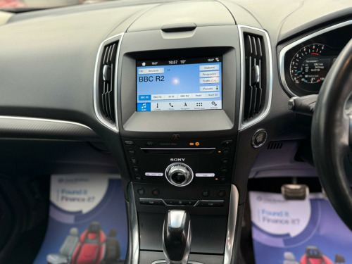 This 2017 Ford Edge TDCi Sport is presented with a clear vehicle history check, offering peace of mind for its next owner. Powered by a robust 2.0 litre diesel engine and featuring Four Wheel Drive, this Euro 6 compliant model ensures efficient and capable performance. The Sport trim level enhances its appeal, and you'll find a wealth of technology and convenience features, including a premium Sony DAB audio system with navigation and 12 speakers, SYNC 2 with Bluetooth and voice control, and an 8 inch colour touchscreen. Keyless entry is provided by the Ford Key Free System, which also includes a hands free power tailgate for effortless access.Further enhancing your driving experience, this Ford Edge boasts a rear view camera and front and rear parking sensors, making manoeuvring simple and stress free. The generous boot space is a significant advantage, providing ample room for luggage, shopping, or sports equipment. These carefully selected features and the practical design indicate how this particular vehicle offers a superior experience compared to other similar models on the market. in alloy wheels - dark, 220 v power outlet in centre console, abs - anti-lock braking system, active city stop with pedestrian detection, active noise control, adaptive steering system, air conditioning - dual zone electronic automatic temperature control, airbags - driver, airbags - front passenger, airbags - front side, ambient lighting, automatic dimming rear view mirror, automatic headlights with auto high beam and rain sensing front windscreen wipers, black roof rails, body colour lower door - wing and bodyside mouldings, centre console with fixed armrest - stowage and cup holders, cruise control with adjustable speed limiter, daytime running lamps, door mirrors - power-foldable with puddle lights, esp - electronic stability programme, electric parking brake, floor mats - front and rear - velour, fold flat rear seats - second row seats with easy fold seat function and recline, foot pedals - alloy, ford easy fuel - capless refuelling with misfuel inhibitor, ford key free system with hands-free power tailgate, ford power engine start-stop button, front fog lights, front upper grille with unique finish bars and surround, front and rear parking sensors, keyless start button, led second row reading lights, lane keeping aid with traffic sign recognition, leather trimmed steering wheel and gear knob, mykey, paddle activation, power front and rear windows with key fob operated global opening and closing, premium instrument cluster, privacy glass - dark tinted - rear, quickclear heated windscreen, rear lights - led, rear spoiler - body colour, rear view camera, sync 2 with bluetooth and voice control - 8in colour touchscreen and emergency assistance, scuff plates - illuminated, seats - drivers 4-way manual adjustment, seats - front - heated - sport, sony dab premium audio with navigation system with 12 speakers, sports suspension, thatcham category 1 alarm, tyre pressure monitoring system, unique sports bodystyling