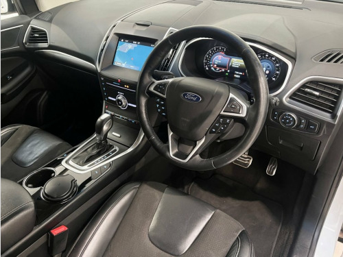 Ford Edge ST-Line Oxford White This stunning Ford Edge ST-Line, finished in the crisp and clean Oxford White, is a perfect blend of sporty design, premium comfort, and intelligent technology. With its striking road presence and dynamic styling, the ST-Line trim stands out from the crowd and delivers an exhilarating driving experience every time you get behind the wheel. The ST-Line's athletic character is unmistakable, thanks to its unique body styling that includes a sculpted front bumper, sports-inspired side skirts, blacked-out grille, rear spoiler and exclusive badging. The 20" alloy wheels perfectly complement the confident stance of the Edge, giving it a powerful, purposeful look that turns heads wherever it goes. Step inside and you're welcomed by a refined interior trimmed in Partial Ebony Leather with Dinamica inserts. The front seats are heated and offer 10-way power adjustment, allowing you to find your perfect driving position with ease. A heated steering wheel adds a touch of luxury, particularly on colder days, and the spacious cabin offers comfort for all passengers. The Ford Edge ST-Line is as intelligent as it is stylish. The Intelligent All-Wheel Drive system ensures optimal grip and performance across all conditions, while the sport-tuned suspension provides a more responsive, dynamic drive. Whether you're tackling twisty country roads or cruising down the motorway, the Edge delivers a composed and confident ride. Technology is at the he 20in Alloy Wheels - Platinum Grey, 220 V Power Outlet in Centre Console, Acoustic Side Glass, Active City Stop with Pedestrian Detecti, Active Noise Control, Adaptive Steering System, Airbags - Driver and Front Passenger, Airbags - Drivers Knee Bolster, Airbags - Front Side Impact, Airbags - Front and Rear Side Curtain, Airbags - Passenger Airbag Deactivation , Alloy Pedals, Ambient Lighting, Anti-Lock Braking System - ABS with Elec, Auto Dimming Rear View Mirror, Black Finish on Lower Door Line, Black Roof Rails, Centre Console with Fixed Armrest - Stow, Childproof Rear Door Locks, Cruise Control, Curve Control, DEATC - Dual-Zone Electronic Automatic T, Door Handles - Body Colour, Door Mirr