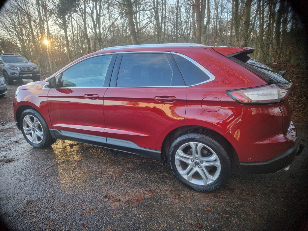 FORD EDGE 2.0 TDCI TITANIUM AWD FINOISHED IN RUBY RED METALLIC PAINT WORK WITH BLACK CLOTH INTERIOR HEATED FRONT SEATS FULL CLIMATE CONTROL PRIVACY GLASS FACTORY FIT OVER MATS RADIO MULTI MEDIA SYSTEM FRONT AND REAR PARKING SENSORS 18 ALLOYS ELECTRIC MIRRORS REMOTE CENTRAL LOCKING WITH TWO KEYS CRUISE CONTROL ELECTRIC WINDOWS X4 ON BOARD SATELLITE NAVIGATION REVERSE CAMERA TOW BAR WITH ELECTRICS FULL SERVICE HISTORY RECENT SERVICE AND TIMING BELT TOWS 2.00 TON ALLWHEEL DRIVE VERY CLEAN EXAMPLE.
