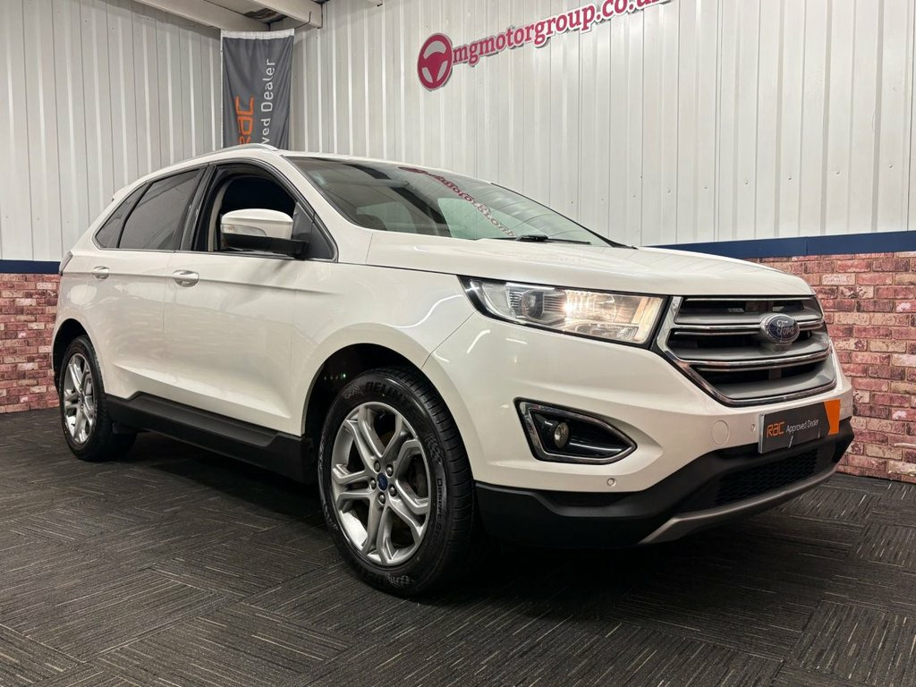 MG Motor Group are pleased to offer this stunning Ford Edge 2.0 TDCi Titanium finished in White Platinum with Black Cloth interior. 2 keys with service history, this includes a recent service carried out in house. Excellent condition throughout and a true credit to its previous owners. Great spec that includes 19 inch Alloy Wheels, Front Heated Seats, Sat Nav, DAB Radio, Bluetooth Connectivity, Dual Zone Climate Control, Electric Tailgate, Automatic Headlights and much more. White Platinum, Cloth - Ebony, 19in Alloy Wheels - Luster Nickel, 220 V Power Outlet in Centre Console, Acoustic Side Glass, Active City Stop with Pedestrian Detecti, Active Noise Control, Airbags - Driver and Front Passenger, Airbags - Drivers Knee Bolster, Airbags - Front Side Impact, Airbags - Front and Rear Side Curtain, Airbags - Passenger Airbag Deactivation , Ambient Lighting, Anti-Lock Braking System - ABS with Elec, Auto Dimming Rear View Mirror, Bright Finish on Upper Door Line, Centre Console with Fixed Armrest - Stow, Childproof Rear Door Locks, Chrome Roof Rails, Cruise Control, Curve Control, DEATC - Dual-Zone Electronic Automatic T, Door Handles - Body Colour, Door Mirrors - E