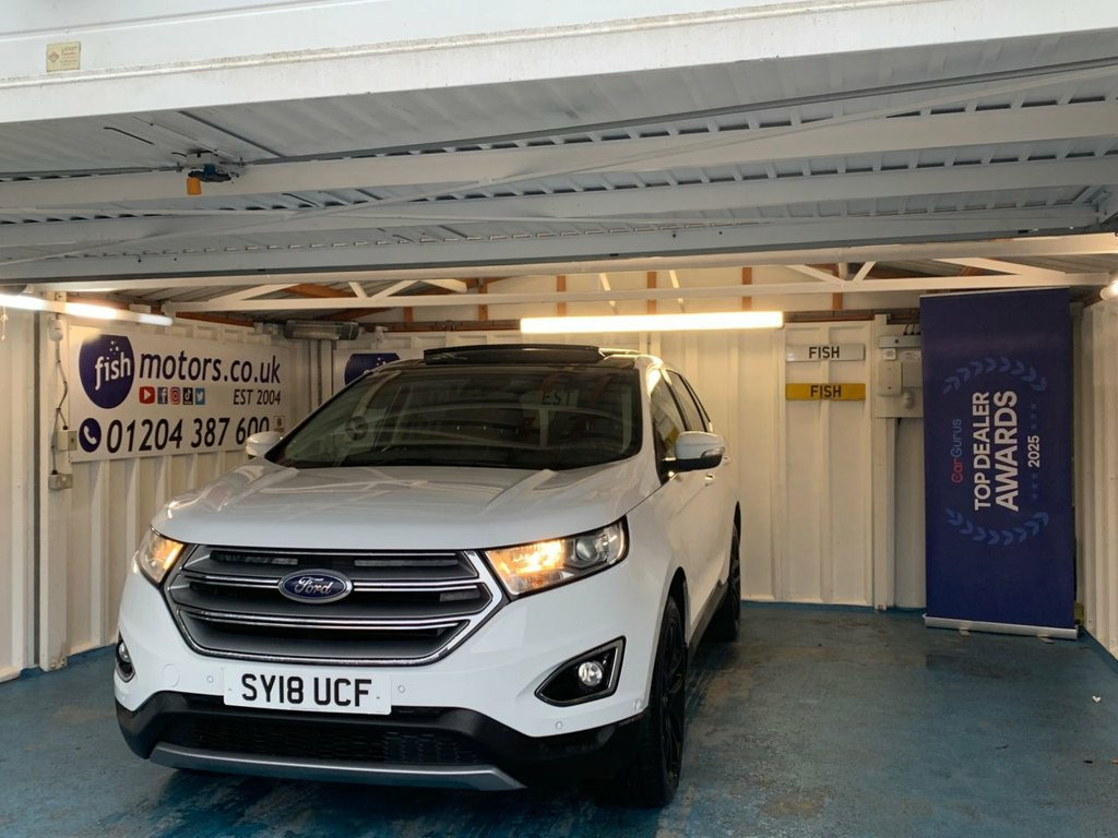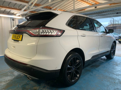 2 KEYS+2 FORMER KEEPERS+NAV+HISTORY+FULL LEATHER SEATS+PARK CONTROL+DAB+MEDIA+PANORAMIC SUNROOF+20" BLACK ALLOYS+BLUETOOTH+USB+AUX+CLIMATE+CRUISE+HEATED FRONT SEATS+HPI CLEAR+VOSA MOT HISTORY,+SH+FULL DEALER FACILITIES+GOOD MPG+The car is in very good condition in and out . Bodywork and interior clean for age and mileage . Interior is clean and tyres good ,Engine and gearbox in good order. This 2018 Ford Edge TDCi Titanium offers a sophisticated driving experience with its powerful 2.0L diesel engine and Four Wheel Drive system, ensuring confident handling in various conditions. As a Euro 6 compliant vehicle, it meets modern emissions standards. The Titanium trim level brings a host of desirable features, including a Handsfree Power Tailgate with Keyless Entry, making loading and unloading effortless. Inside, you'll find the advanced SYNC 3 system, complete with Bluetooth connectivity and voice control, all managed through an 8 inch colour touchscreen. For added convenience and safety, it is equipped with Front and Rear Parking Sensors, a Rear View Camera, and a Ford DAB Audio system that includes a Navigation system and 9 speakers. The Ford Edge TDCi Titanium stands out with its impressive fuel economy, achieving a remarkable 49 mpg, which indicates its efficiency compared to other vehicles in its class. The inclusion of Keyless Entry further enhances its user friendly design, while the integrated Bluetooth and Voice Control on the SYNC 3 system allow for seamles 19in Alloy Wheels - Luster Nickel, 20in Alloy Wheels, 220 V Power Outlet in Centre Console, Acoustic Side Glass, Active City Stop with Pedestrian Detecti, Active Noise Control, Airbags - Driver and Front Passenger, Airbags - Drivers Knee Bolster, Airbags - Front and Rear Side Curtain, Airbags - Front Side Impact, Airbags - Passenger Airbag Deactivation , Ambient Lighting, Anti-Lock Braking System - ABS with Elec, Auto Dimming Rear View Mirror, Bright Finish on Upper Door Line, Centre Console with Fixed Armrest - Stow, Childproof Rear Door Locks, Chrome Roof Rails, Cruise Control, Curve Control, DEATC - Dual-Zone Electronic Automatic T, Door Handles - Body Colour, Door Mirrors - Electrically-