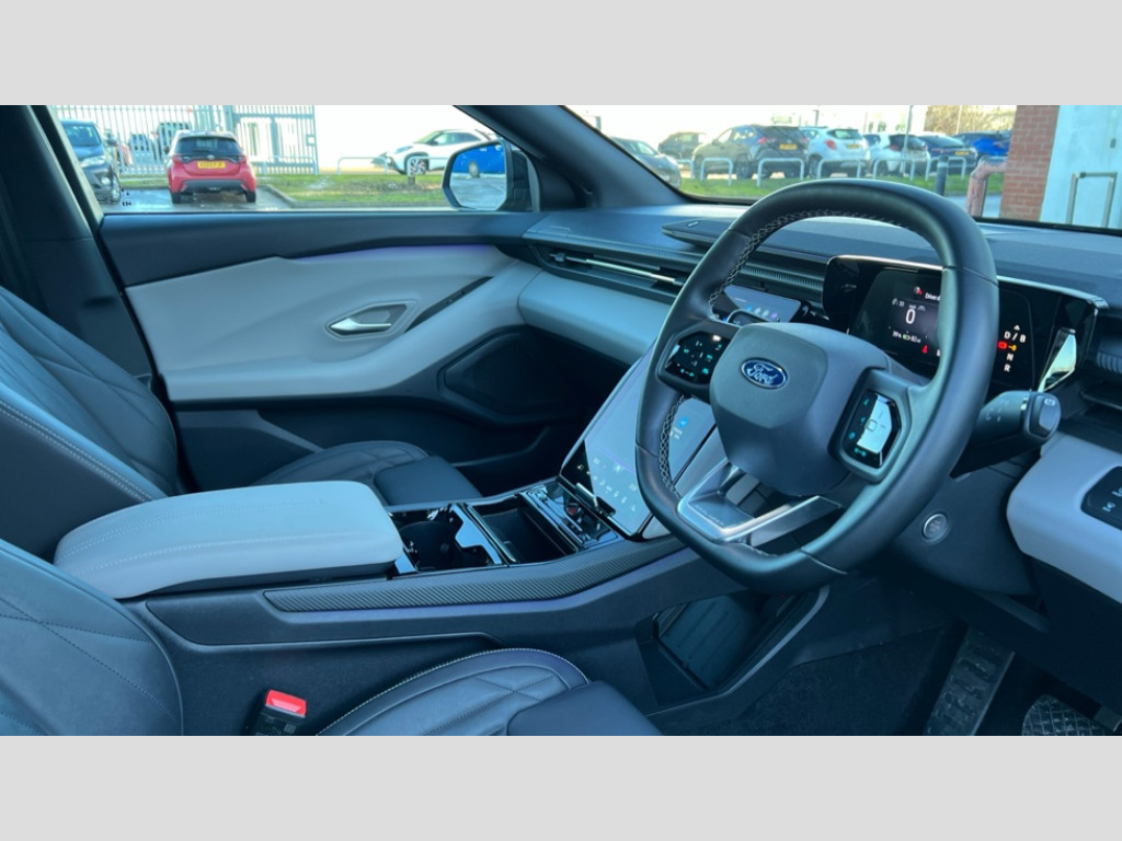 Ford Explorer 210kW Premium 77kWh 5dr Auto 5.3" full digital cluster screen, Cross traffic alert, Electric power steering, Emergency services call system, Front and rear parking sensors, Hands free power liftgate, Inductive wireless phone charging, Intelligent adaptive cruise control with stop and go, Lane departure warning with lane keeping aid, Navigation system, Rear view camera, Selectable drive modes, Traffic sign recognition, Wrong way alert, Blue oval charge network - Lifetime access, 14.6" SYNC Move Touchscreen, Premium 10 speaker B&O sound system, Automatic high/low beam, Black coloured exterior mirror with Logo Puddle Lamps, Daytime running lights, Door mirrors with memory function, Fixed panoramic glass sunroof, Glare-free matrix LED headlamps, LED 3rd brake light, LED rear lights, Power folding and heated door mirrors, Rear privacy glass, Rear side wing doors, Rear wiper, 12 way power driver seat with memory, 3 seat bench in 2nd row, 6 way manual passenger seat adjustments, Driver seat massage function, Dual zone electronic automatic temperature control, Front door scuff plates, Front headrests, Full sensico upholstery, Heated driver and front passenger seats, LED ambient lighting, Pre Conditioning battery and cabin, Rear head restraints, Single front passenger seat, 3 point rear seatbelts, ABS, Active braking assist, Child locks on rear doors, ESP, Exit warning, Pre collision assist inc Collision mitigation, Forward collision warning, Dynamic brake support, Automated emergency braking, Keyless entry and start, Thatcham alarm, Tyre repair kit