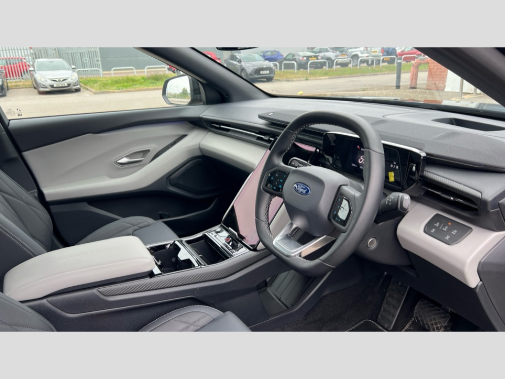 Ford Explorer 210kW Premium 77kWh 5dr Auto 5.3" full digital cluster screen, Cross traffic alert, Electric power steering, Emergency services call system, Hands free power liftgate, Inductive wireless phone charging, Intelligent adaptive cruise control with stop and go, Lane departure warning with lane keeping aid, Navigation system, Selectable drive modes, Traffic sign recognition, Wrong way alert, Blue oval charge network - Lifetime access, 14.6" SYNC Move Touchscreen, Premium 10 speaker B&O sound system, Automatic high/low beam, Black coloured exterior mirror with Logo Puddle Lamps, Daytime running lights, Door mirrors with memory function, Fixed panoramic glass sunroof, Glare-free matrix LED headlamps, LED 3rd brake light, LED rear lights, Power folding and heated door mirrors, Rear privacy glass, Rear side wing doors, Rear wiper, 12 way power driver seat with memory, 3 seat bench in 2nd row, 6 way manual passenger seat adjustments, Driver seat massage function, Dual zone electronic automatic temperature control, Front door scuff plates, Front headrests, Full sensico upholstery, Heated driver and front passenger seats, LED ambient lighting, Pre Conditioning battery and cabin, Rear head restraints, Single front passenger seat, Driver assistance pack - Explorer, 3 point rear seatbelts, ABS, Active braking assist, Child locks on rear doors, ESP, Exit warning, Pre collision assist inc Collision mitigation, Forward collision warning, Dynamic brake support, Automated emergency braking, Keyless entry and start, Thatcham alarm, Tyre repair kit
