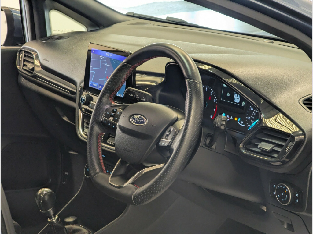 24 MONTHS PARTS & LABOUR WARRANTY. Hampden Park Motoring Centre are pleased to ,be offering this ULEZ compliant 2020 Ford Fiesta 1.0 EcoBoost 95 ST-Line Edition 5dr Hatchback, for sale with ONLY ONE OWNER FROM NEW and 48,800 miles. This car comes with FULL SERVICE-HISTORY. The car will leave with an interim service, a new MOT and a PDI. Finished in Metallic Chrome Blue, with Charcoal sports trim.**WHY BUY FROM US****Established In 1980****24 Month Warranty On All Cars & vans Over £4500, & Those Not Covered By A Manufactures Warranty** ** All Our Cars Are Hpi Clear So You Can Buy With Confidence****Competitive Finance Rates Subject To Status****Multi Branches****Open 7 Days a Week Inc Bank Holidays****Monday - Friday - 8.30am to 6pm****Saturday - 9.00am to 5pm****Sunday - 10am to 4pm****Bank holidays 10am to 4pm**For more pictures and a walk around videoplease go to https://www.hailshammotoringcentre.co.uk/Please call to arrange viewing and a test drive on 01323507307.Here at Hampden Park Motoring Centre, we have up to 50 cars on show, also at our Hailsham branch we have up to 50 further cars available for viewing, please call 01323 449900 for more info.For more information on our Fiesta please see the benefits below as stated, uetooth system, electric power steering, ford easy fuel, ford sync 3 navigation system incl 8'' touchscreen, 7 speakers, fordpass connect, apple carplay, android auto, voice control and emergency assistance, rear parking distance sensors, trip computer, sports suspension, 2 usb ports, auxiliary input socket, dab digital radio, steering wheel mounted controls, body colour bumpers, body colour door handles, body colour large rear spoiler, body coloured electrically operated and heated door mirrors with side indicators, cornering front fog lights, electric front windows/one touch facility, electric rear windows, led night signature to rear lights, power foldable door mirrors with puddle lights, quickclear heated windscreen, rain sensing wipers and auto dimming rear view mirror, rear privacy glass, rear wiper, unique st-line upper grille & full bodystyling kit with st-line wing badges, 12v accessory socket in centre console, 3 spoke flat bottomed leather steering wheel, 60/40 split folding rear seat, adjustable head restraints, black headlining, boot carpet, centre console with armrest and illuminated cupholders, chrome inner door handles, cloth upholstery, footwell illumination, front floor mats, front map reading lights, front seat and rear pockets, height adjustable driver, illuminated glovebox, leather wrapped handbrake and gearknob, led ambient lighting, load area light, manual air conditioning, overhead console with sunglasses holder, pollen filter, rake/reach adjustable steering wheel, sports front seats, sports pedals, ncap pack - fiesta, 3 point seatbelts on all rear seats, abs+eba, curtain airbags, driver and passenger airbags, drivers knee airbag, electronic stability control with hill start assist, front passenger airbag deactivation, front side airbags, seatbelt warning, two tone horn, tyre pressure monitoring system, keyless start with , mykey system, remote central locking & engine immobiliser, thatcham cat.1 alarm, 17'' 5 spoke alloy wheels with rock metallic finish, 24 months warranty free, 17'' Alloys