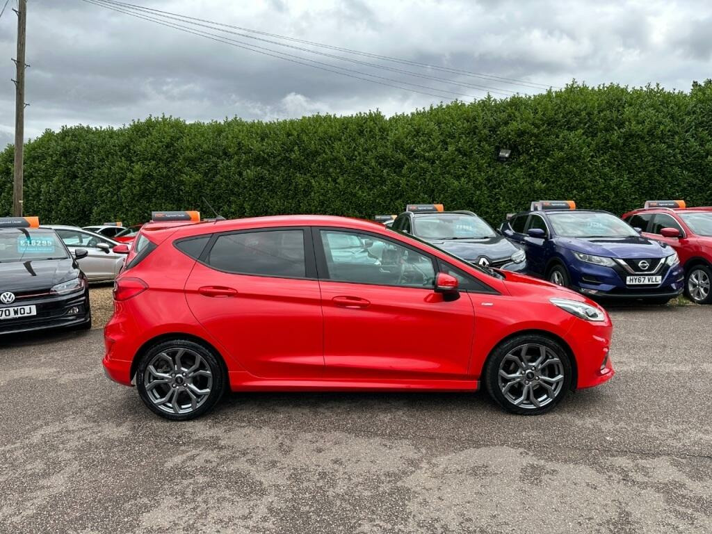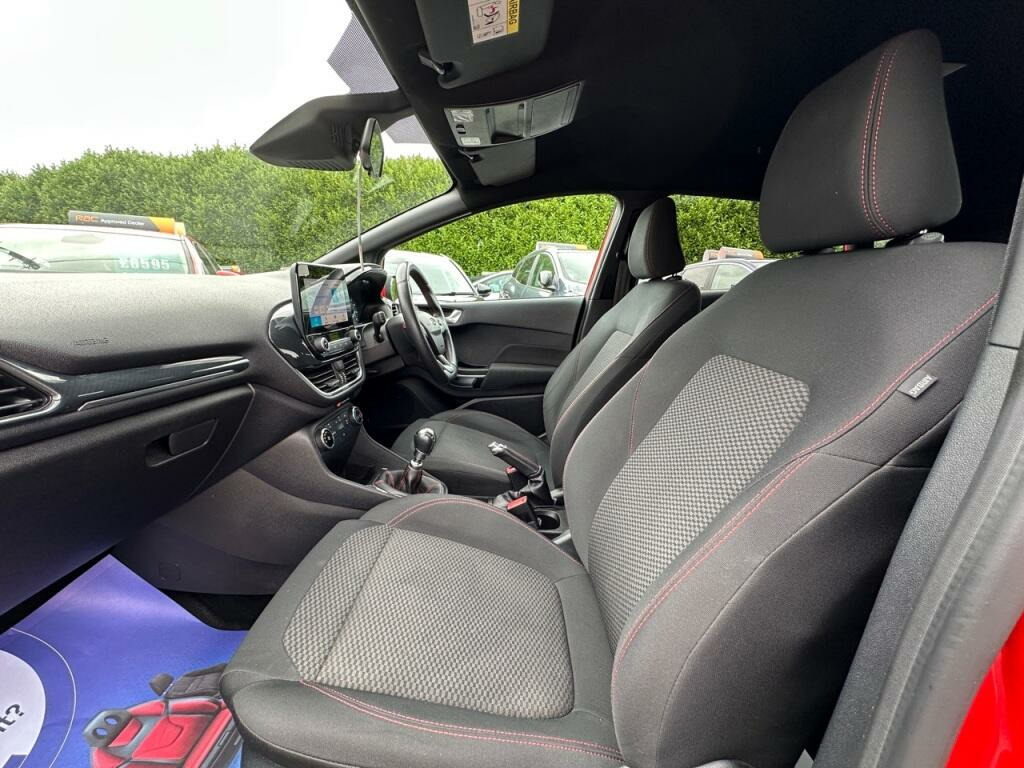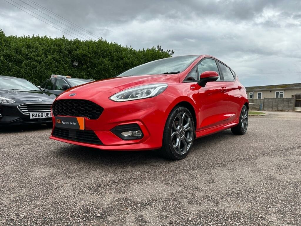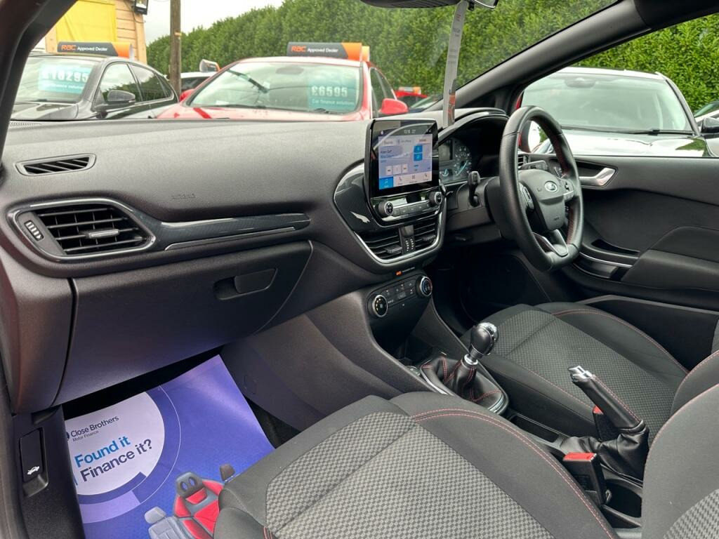 This 2019 Ford Fiesta ST Line offers a compelling blend of sporty styling and efficient performance. Powered by a 1.0 litre petrol engine, this Euro 6 compliant model is registered in 2019 and features the desirable ST Line trim. For added convenience on longer journeys, it comes equipped with cruise control, allowing for a more relaxed driving experience.The Ford Fiesta ST Line stands out with its impressive acceleration, reaching 0 to 62 miles per hour in just 10.6 seconds, demonstrating its responsive nature. Furthermore, its low CO2 emissions highlight its efficiency, making it a more environmentally conscious choice compared to many other vehicles in its class. This combination of engaging performance and economical running costs makes it a practical and enjoyable option.. 82 point RAC check, Service History, Air Conditioning, Alloy Wheels, ABS, Electric Windows, Central Locking - Remote, Remote Key Locking, Rear Wash Wipe, Driver Airbag, Passenger Airbag, Front Fog Lamps, Tinted Glass, Alarm, Immobiliser, Computer, Central Locking, Full Airbags, Heated Front Screen, Rear Head Rests, Radio, Low tax / Insurance, Ideal First Car, Warranty, Click Website for all stock, High level brake light, SIPS, Bluetooth, 6 Speed Manual Gearbox, Power Assisted Steering, Electric Mirrors, Colour Coded Bumpers, Colour Coded Mirrors, Spoiler, Privacy Glass, Cruise Control, Park Distance Control, Smart Windscreen Wipers, Sports Seats, Sports Model, 17'' Alloys, Soft Close Doors, Rear Parking Camera, Leather Steering Wheel, DAB Radio, ULEZ Compliant!, Push Button Start, Euro 6, Part Exchange Welcome!, Isofix Points, TPMS, Automatic Lights, Leather Handbrake, LED Running Lights, Registration: AE69KCU, Remote Audio Controls, AUX and USB, Lane Keep Assist, Speed Limiter, Bluetooth Audio Streaming, Keyless Start, Start-Stop, Apple Car Play, Automatic Wipers, Rain Sensing Wipers, Android Auto, Dusk Sensing Lights, FINANCE AVAILABLE. HPI CHECKED. 6 months RAC warranty FREE; 24 mts available. P/X WELCOME, RAC and Trading Standards APPROVED.