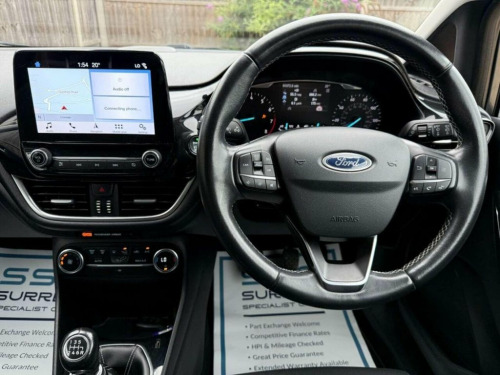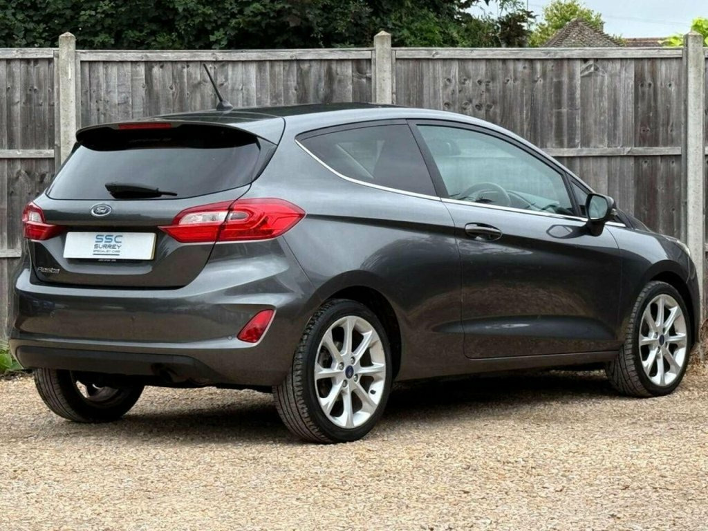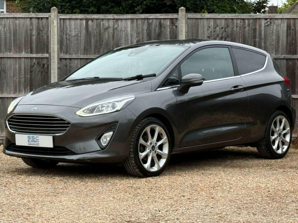 Introducing the Ford Fiesta 1.0 Fiesta Titanium T 3dr, a stylish and sleek vehicle that is sure to turn heads wherever you go. With only 1 previous owner, this Ford Fiesta has been well-maintained and is in excellent condition. Finished in a sophisticated Grey colour, this Fiesta Titanium T model exudes class and elegance. The sleek design and modern features make it the perfect choice for those who appreciate both style and performance. Whether you're navigating city streets or cruising on the open road, the Ford Fiesta delivers a smooth and enjoyable driving experience. With its 1.0 litre engine, you'll enjoy a perfect balance of power and fuel efficiency. Don't miss out on the opportunity to own this fantastic Ford Fiesta. Visit our showroom today and experience the quality and performance that only a Ford can offer. We are open 7 days a week, and prepare all of our cars to the highest standards. We have a Click & Collect option available, and can also arrange delivery on request. All cars are HPI clear and a full history report is provided with every car. We welcome any inspection and viewing is highly recommended. All cars are available with our AA warranty. Debit and credit card facilities are available and we offer competitive finance packages. If you have any questions or would like to view any of our cars give us a call or drop us a message on whatsapp 01483 363 144 to arrange an appointment with one of our team. We also offer full bespoke walkaround videos on re 16in Alloy Wheels - 10 Spoke, 3-Spoke Leather Trimmed Steering Wheel w, 4.2in TFT Instrument Cluster Screen, ABS - Anti-lock Braking System, Air Conditioning - Electronic Automatic , Airbags - Driver, Airbags - Front Passenger, Airbags - Front and Rear Side Curtain, Airbags - Side Curtain, Airbags - Side Impact, Automatic Rain Sensing Wipers and Auto-D, Centre Console with Armrest and Illumina, Chrome Belt Line Finisher, Chrome Upper Grille, Courtesy Light - Ambient LED Courtesy Li, Courtesy Light - Front Map Light and Rea, Cruise Control, Door Handles - Body Colour, Door Lever - Chrome Finish, Driver Alert, Drivers Seat Lumbar Support, EBD - Electronic Brakeforce Distribution, Electrically-
