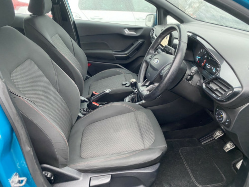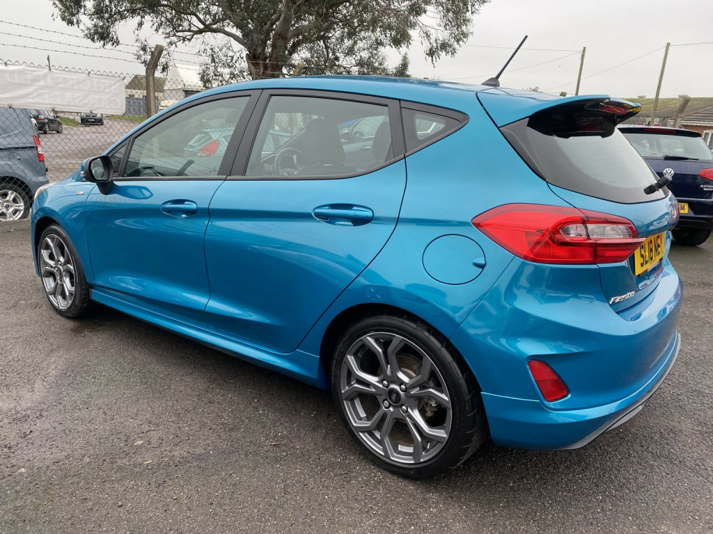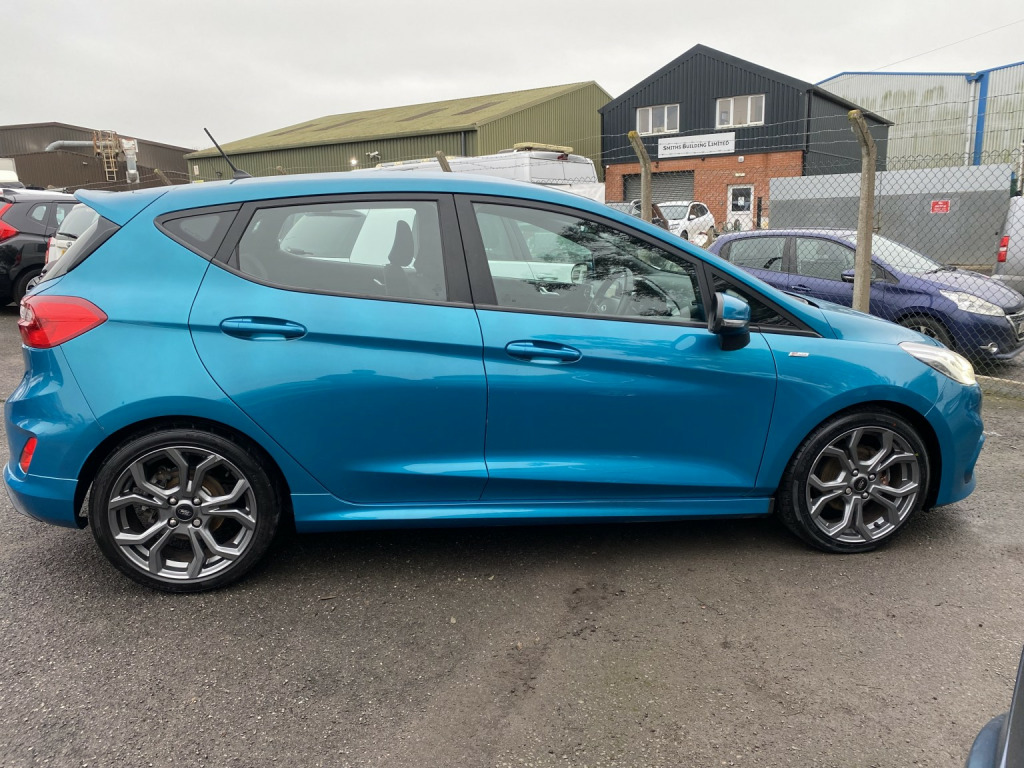 Ford Fiesta 1.0 140 ST-Line 5 door hatchback in Metallic Blue Wave, 66763 miles with a comprehensive service history and a new wet belt cam belt. The car has just been serviced with a new MoT, Specification includes Ford DAB Radio with Ford SYNC3 - Apple Car Play and Android Auto 17in Alloy Wheels - ST-Line 5-Spoke - Rock Metallic ST-Line Side Skirt Body Mouldings -Air conditioning Electric windows and mirrors Cruise control Trip computer Bluetooth phone connection Usb and auxiliary ports Heated windscreen and mirrors Remote central locking with 2 keys Automatic lights and windscreen wipers and a long list of driver assistance and safety features, £6995